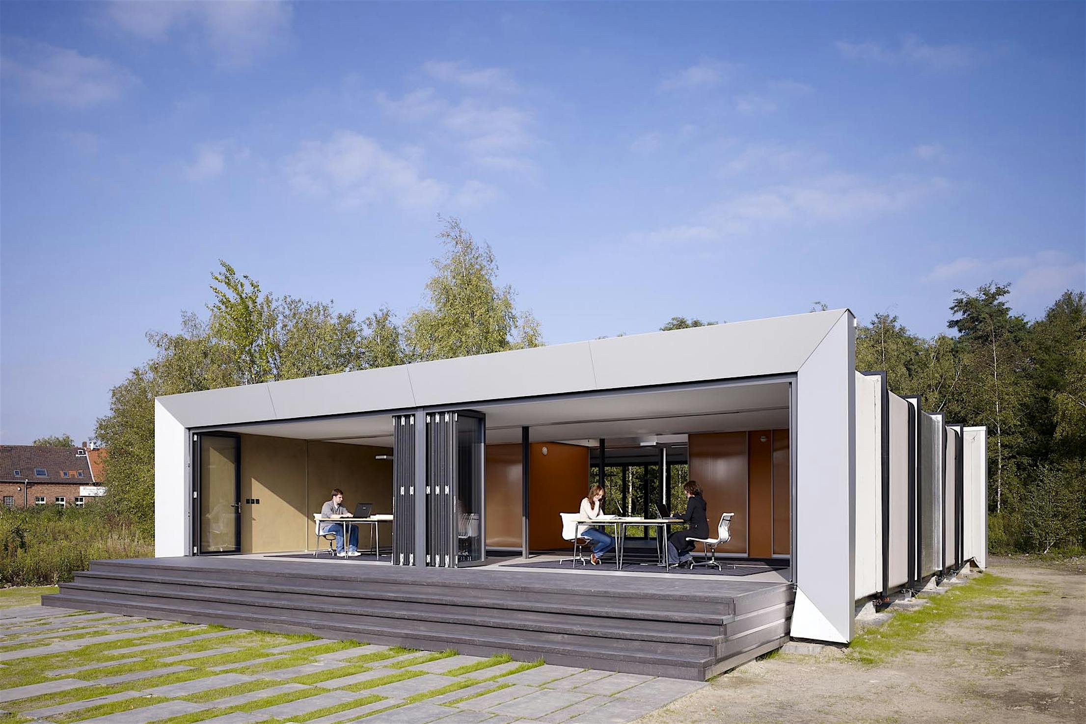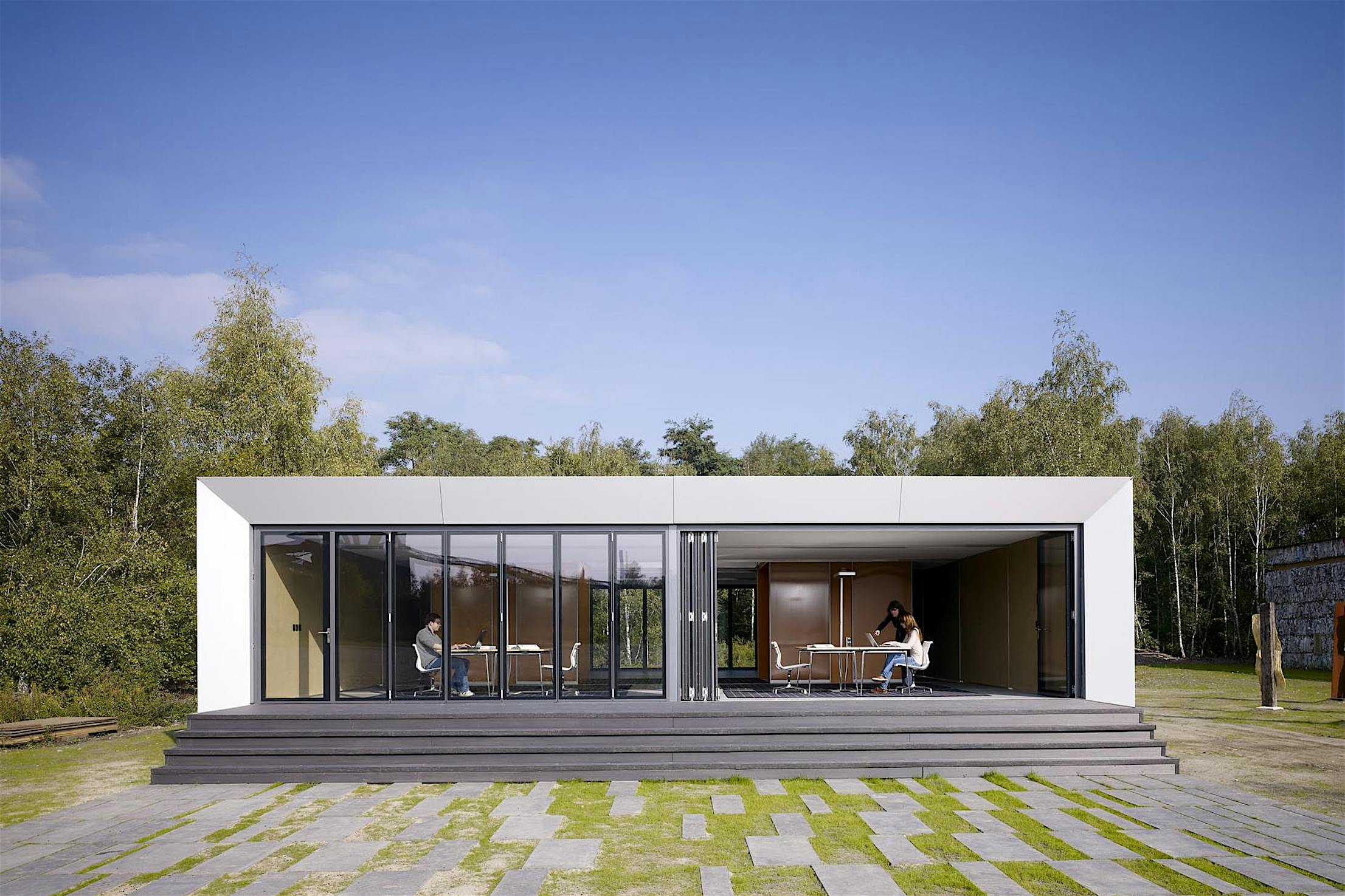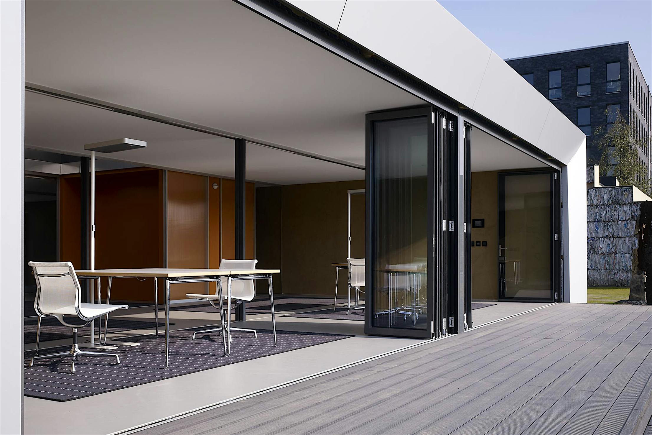 Provide a connection to the environment in office design with opening glass wall solutions to the exterior.
