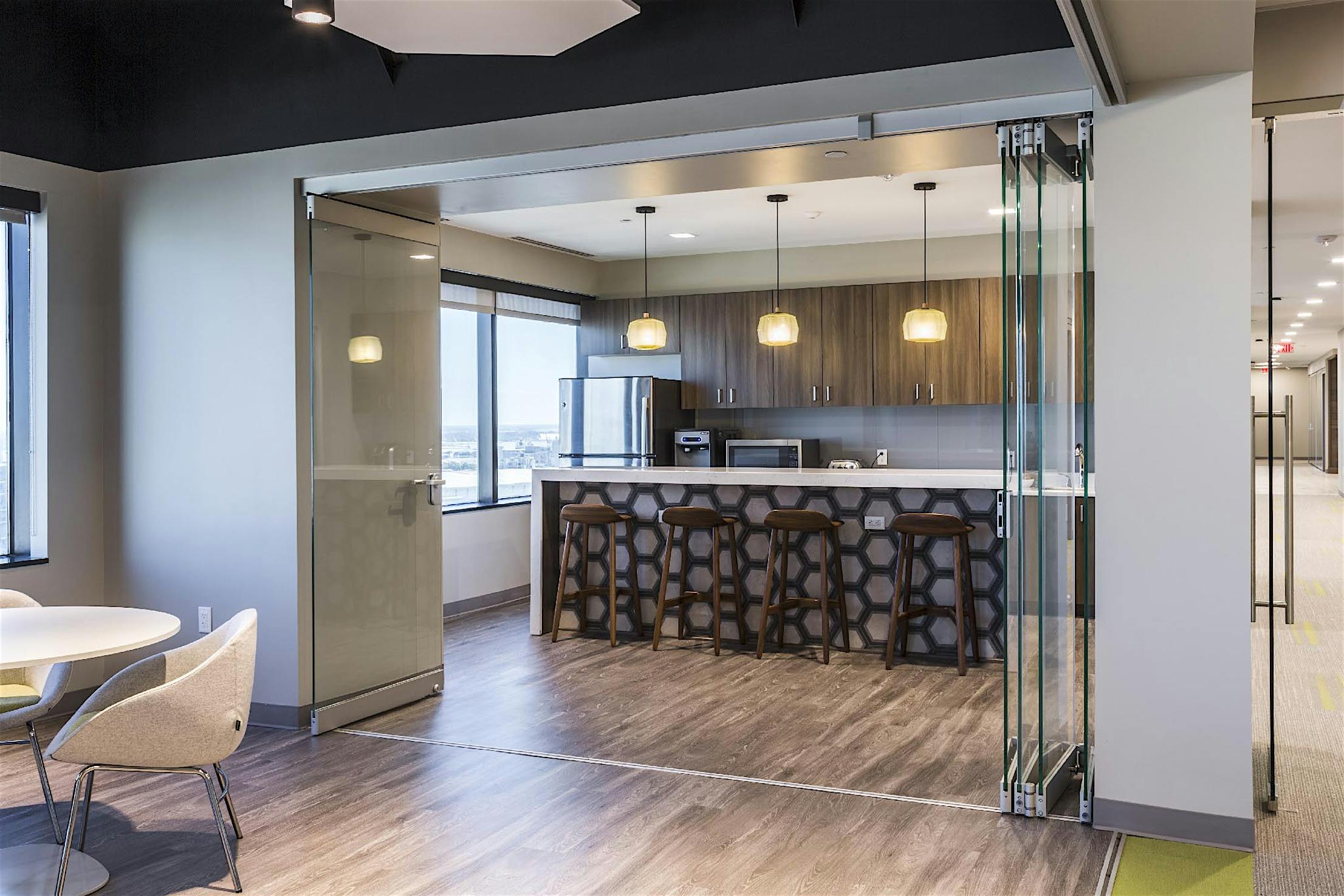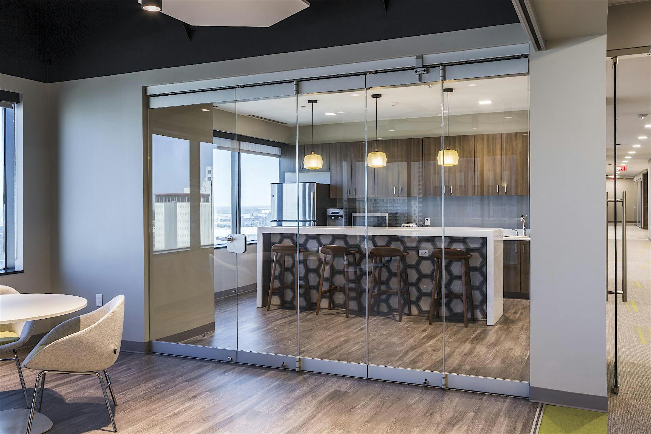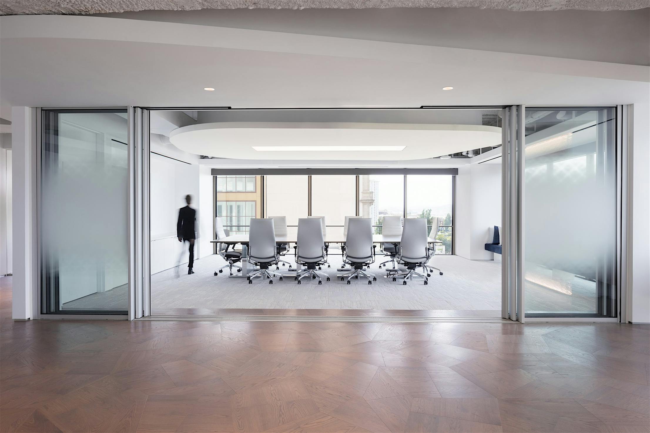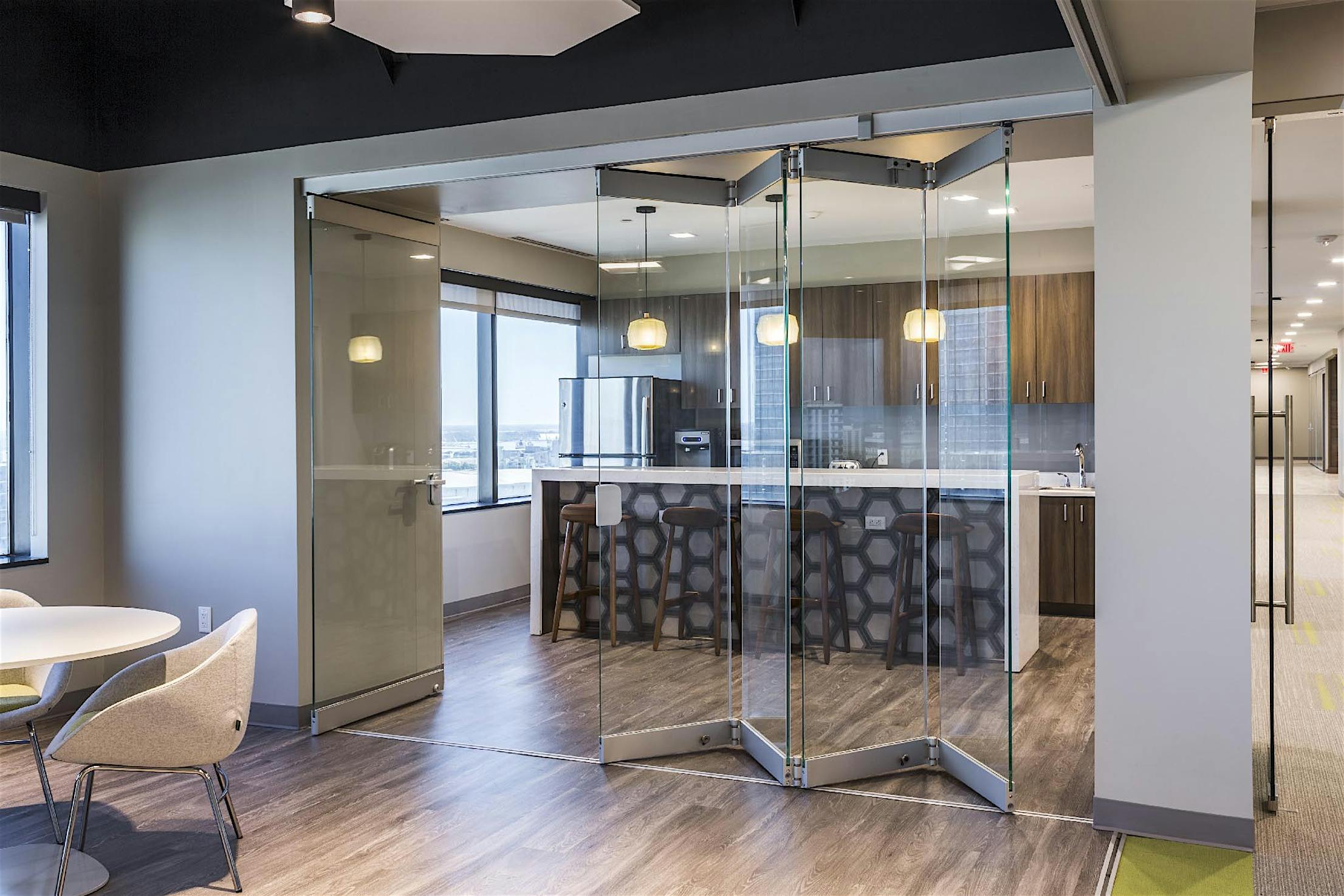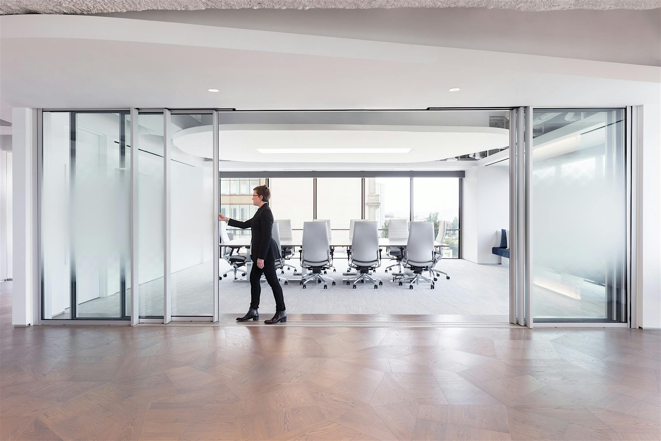 Opening glass walls provide ultimate flexibility within the law office while also providing a space to conduct confidential meetings.