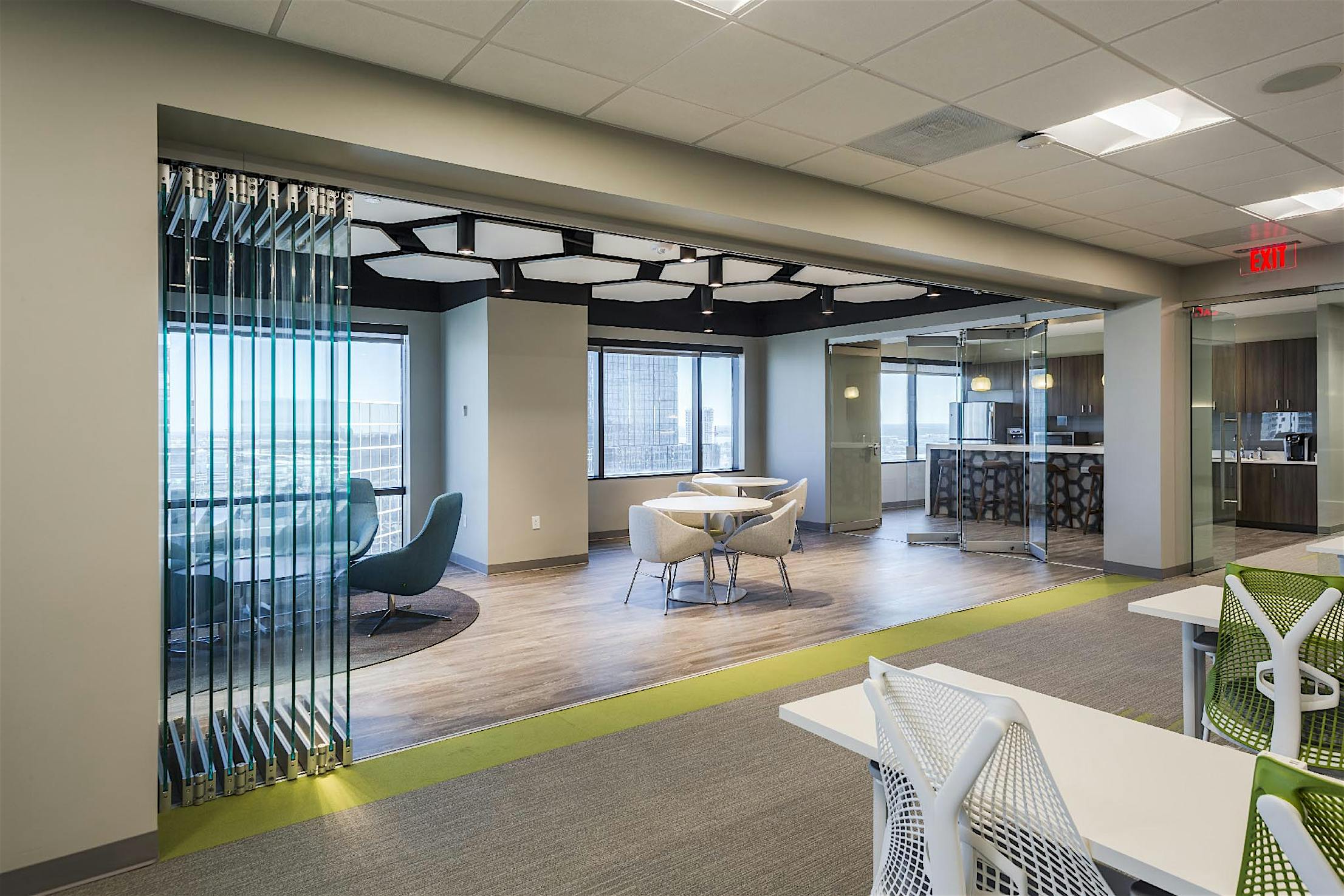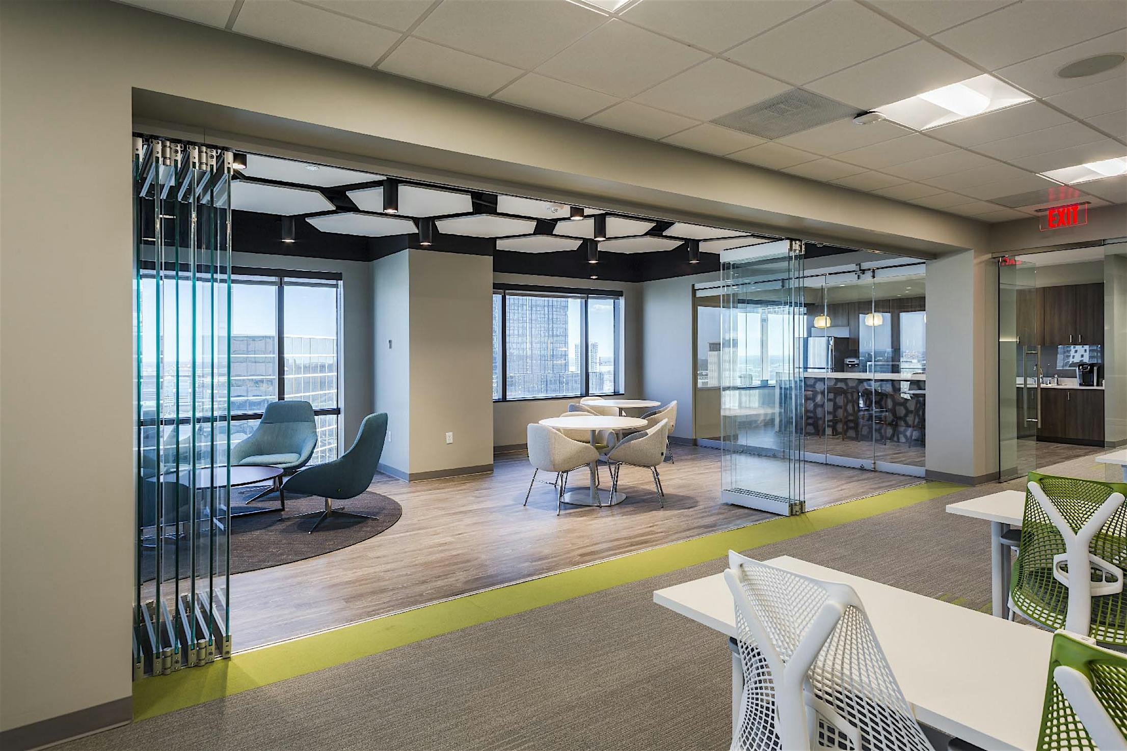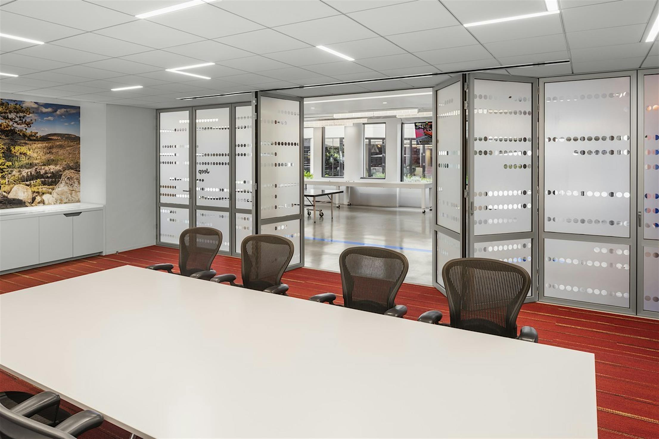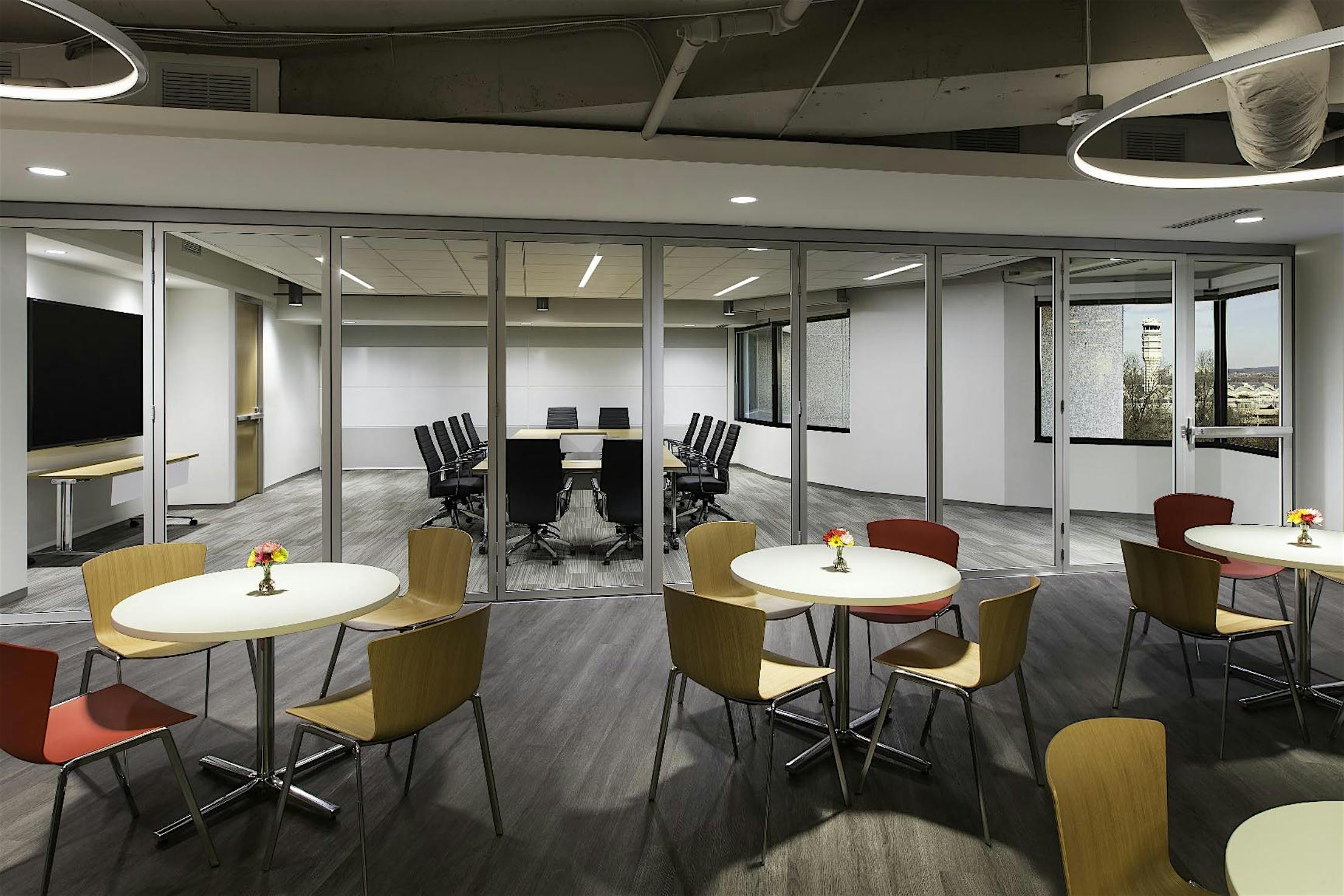 Opening glass walls provide ultimate flexibility within the law office while also providing a space to conduct confidential meetings.