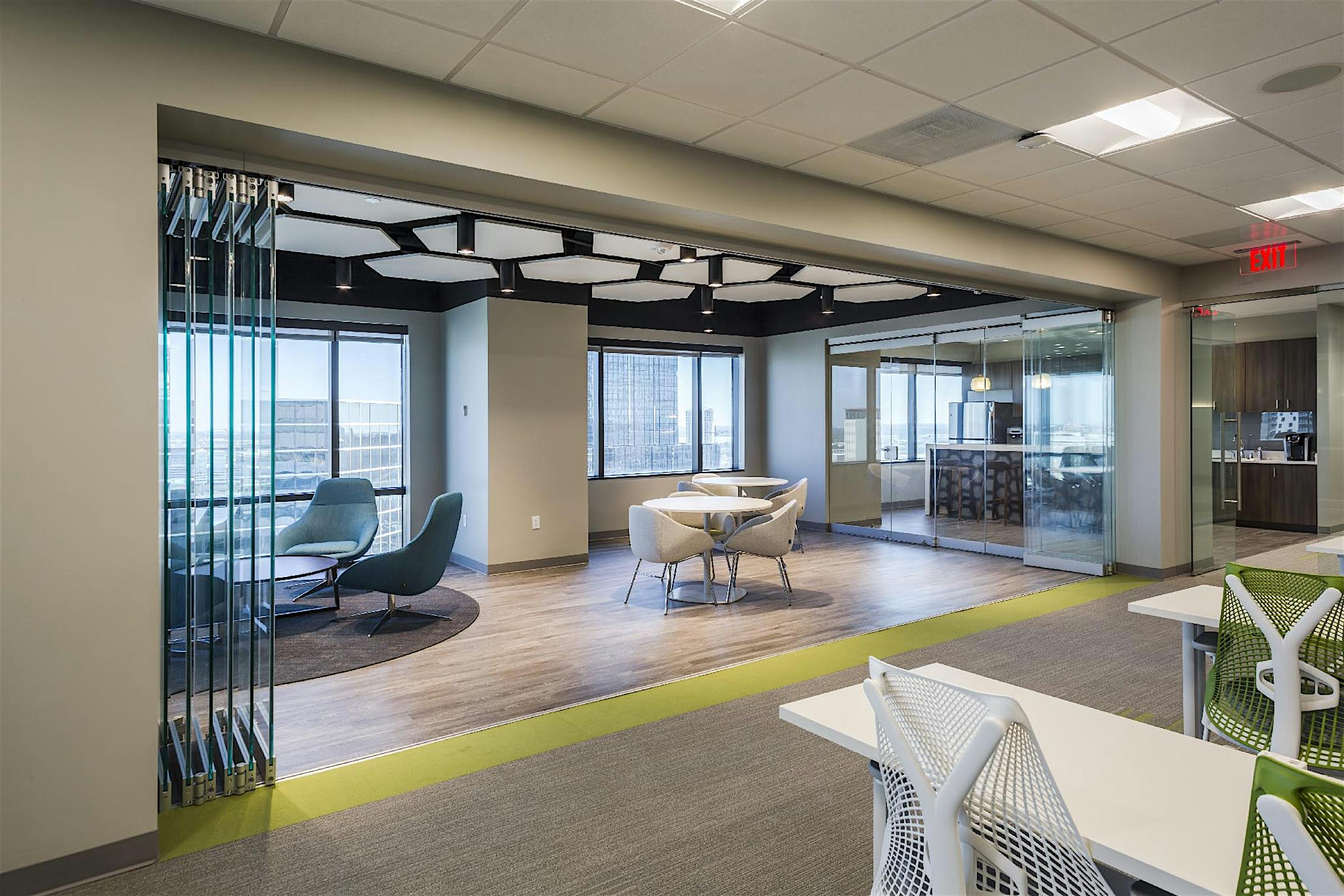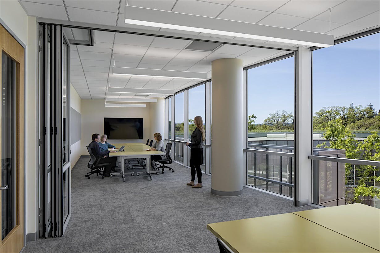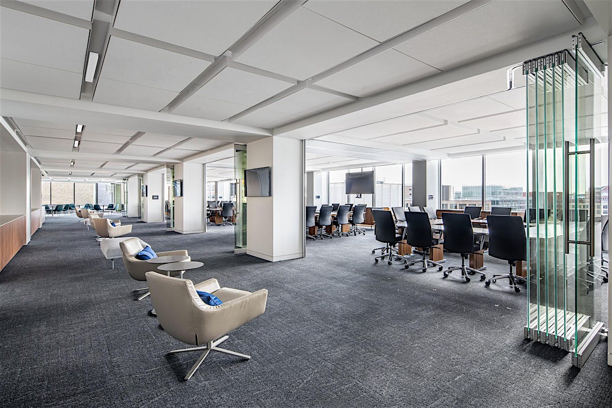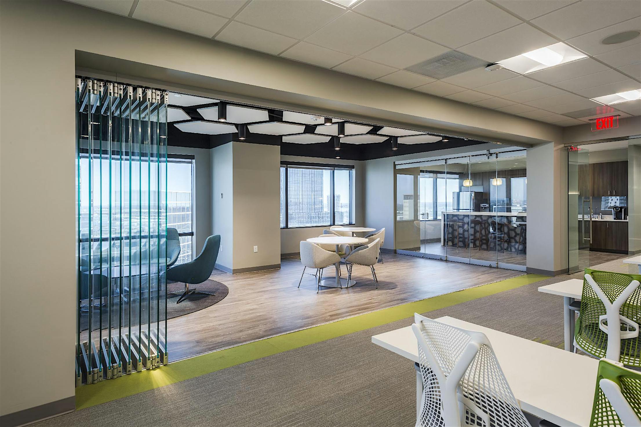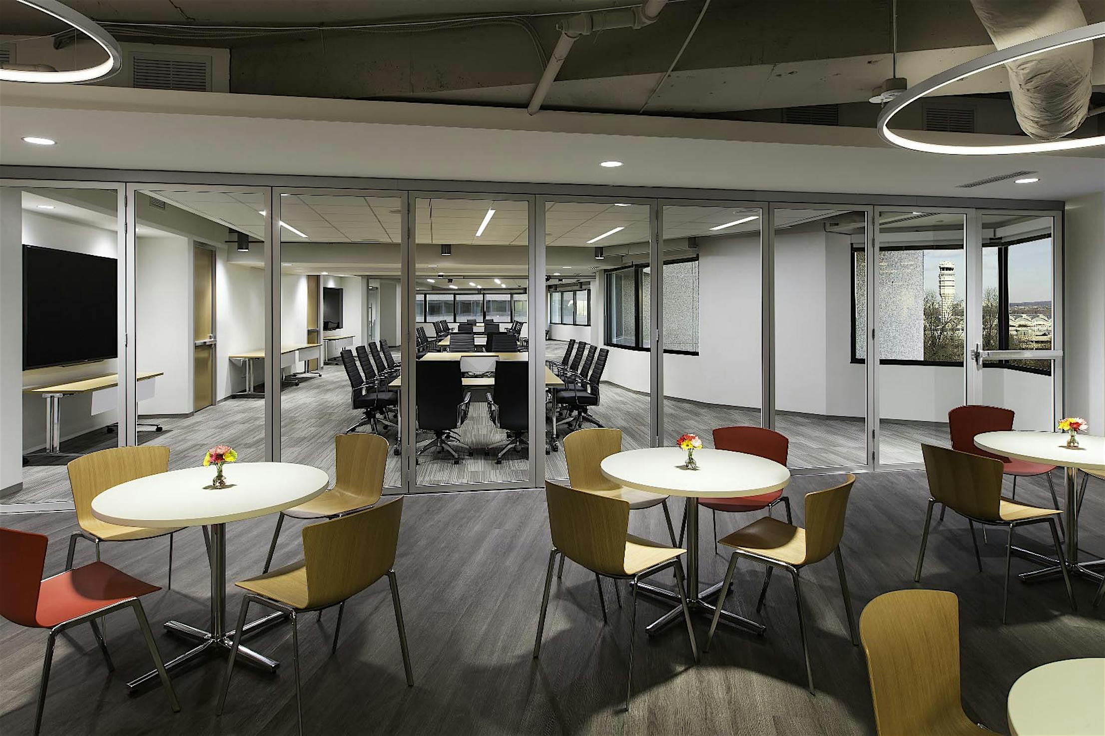 Opening glass walls provide ultimate flexibility within the law office while also providing a space to conduct confidential meetings.