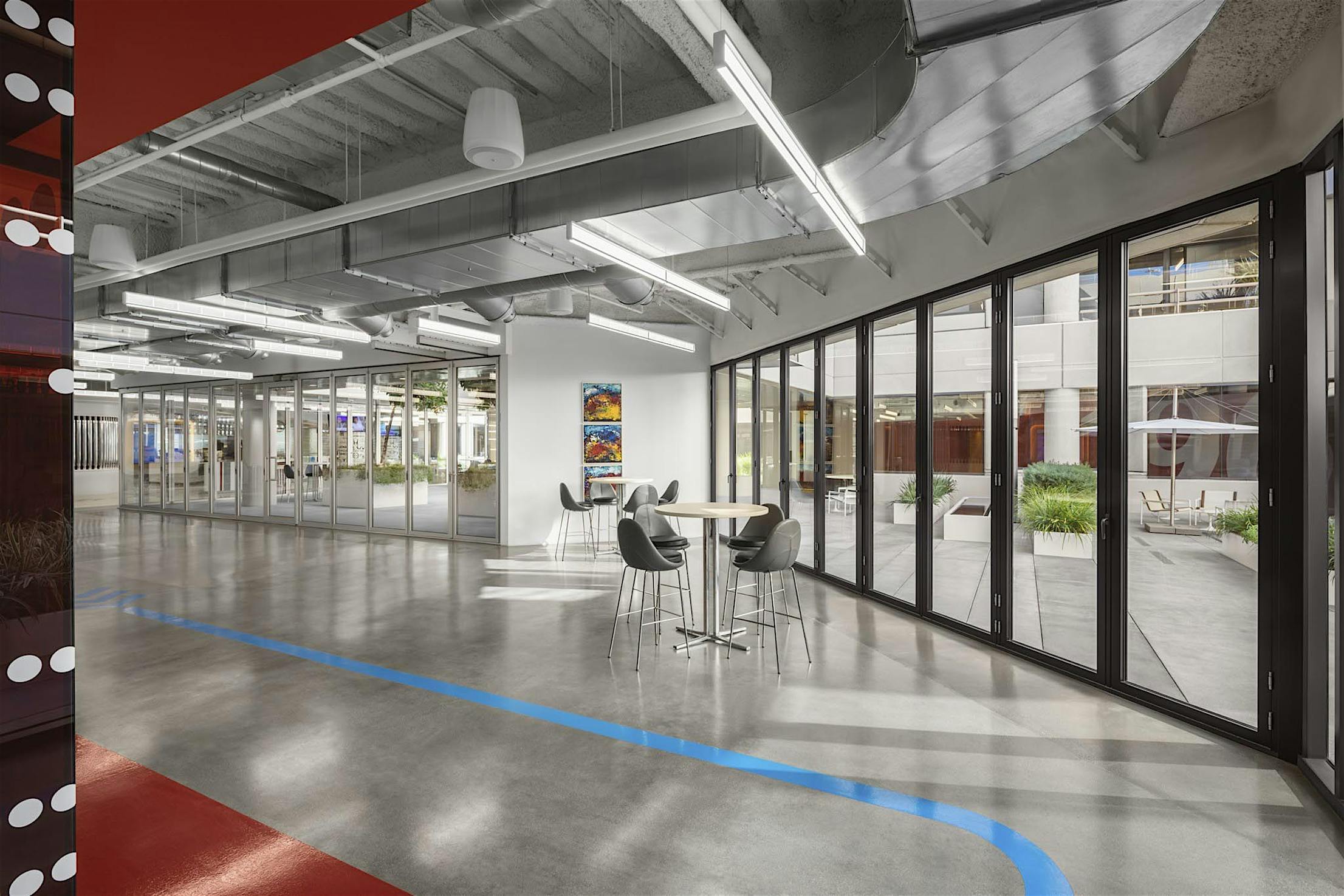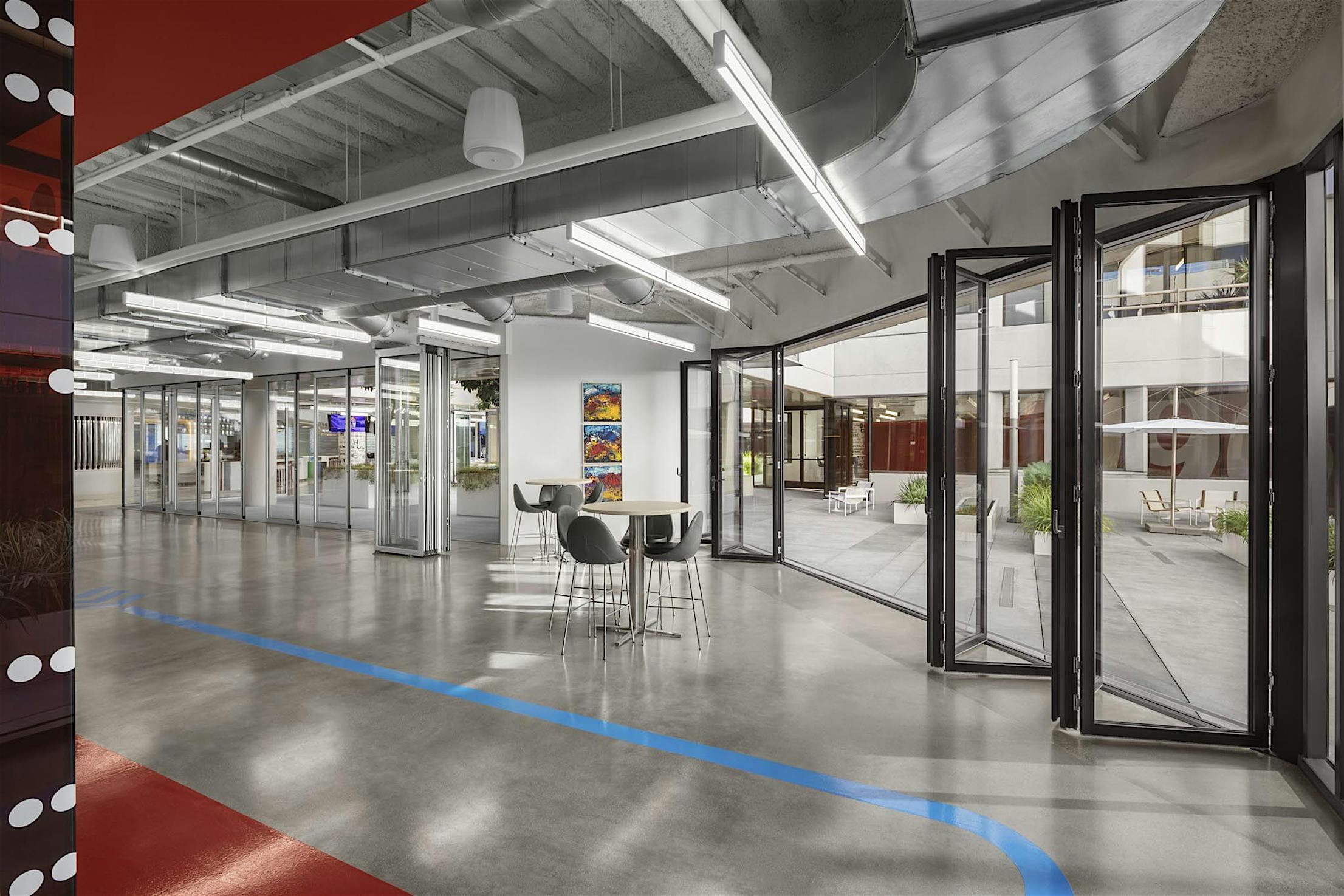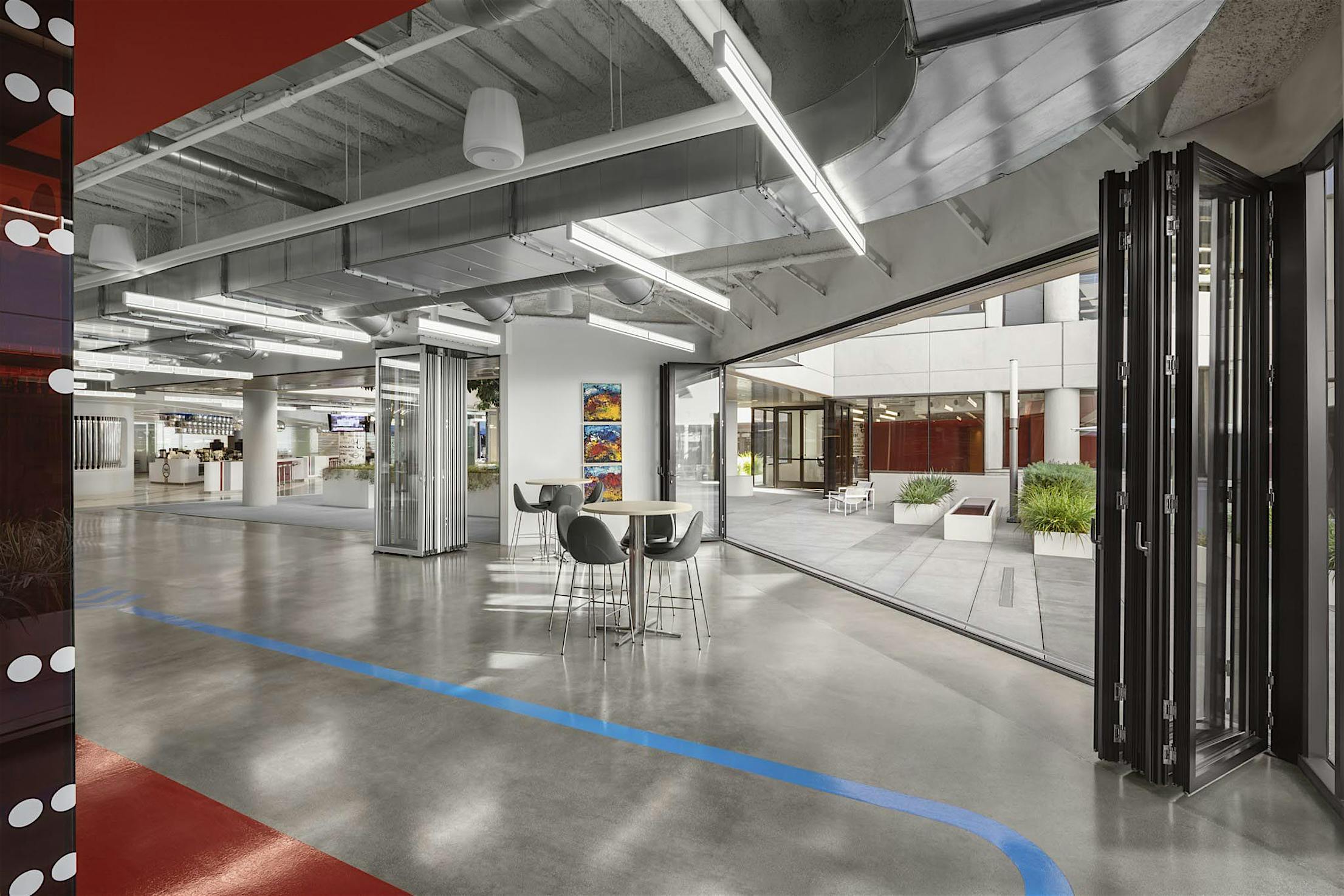 Create a seamless flow and integration between the indoor and outdoor workspaces and social areas.