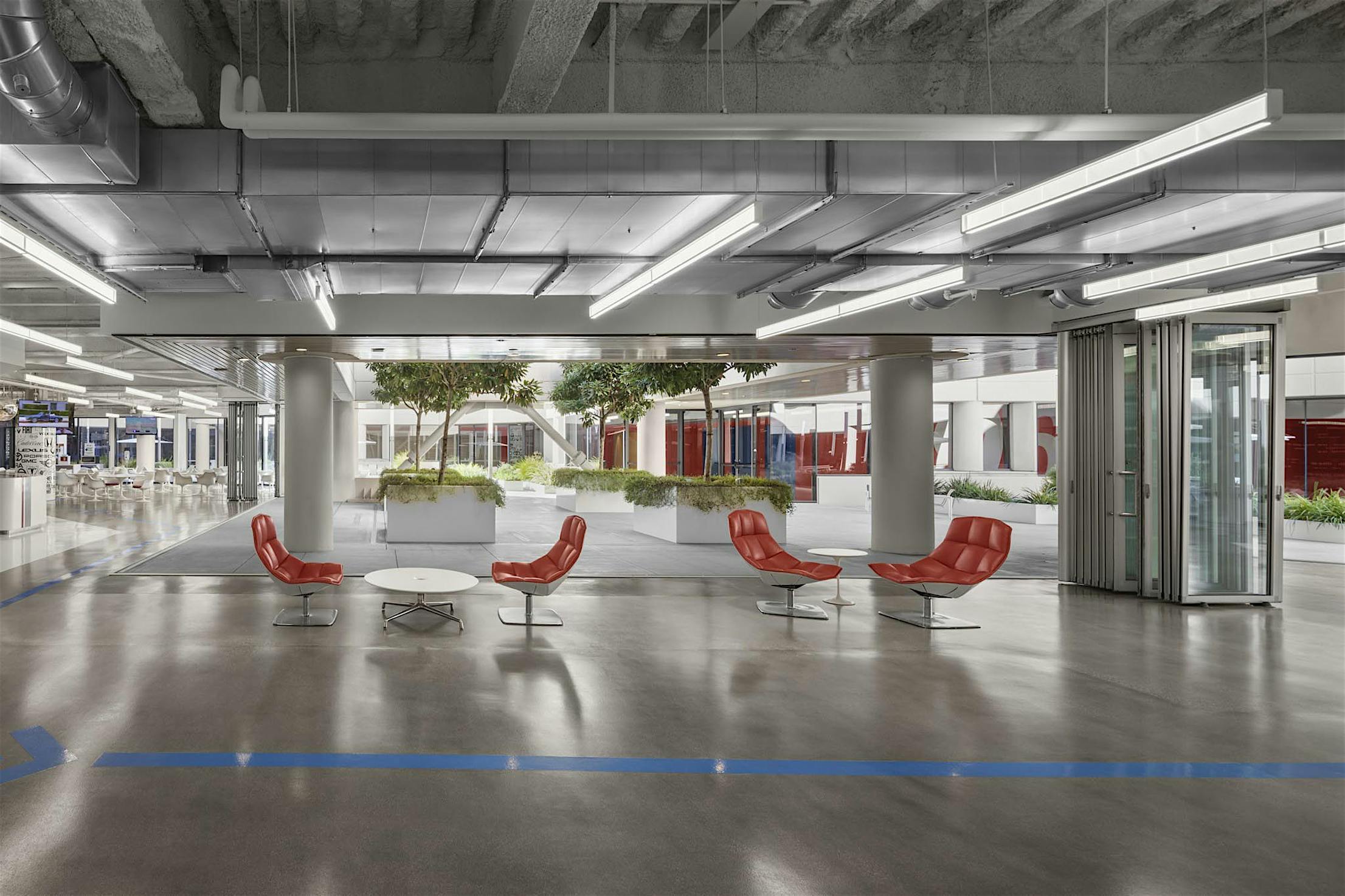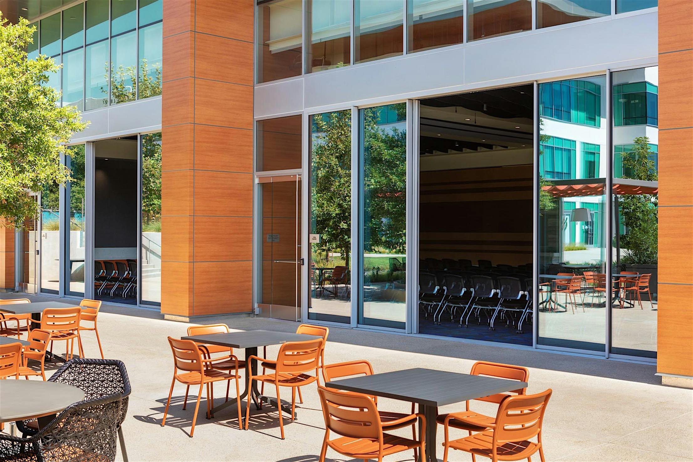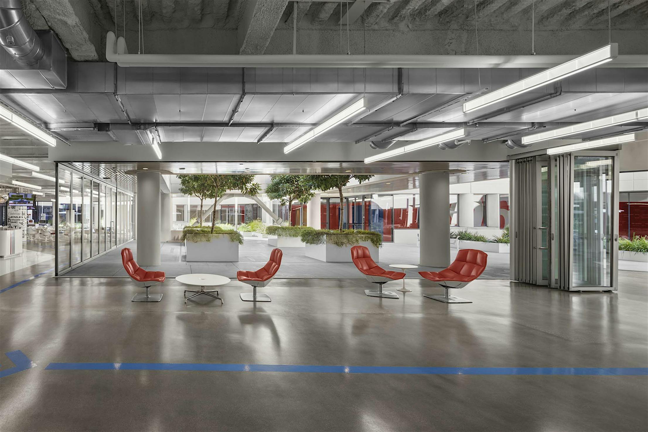 Create a seamless flow and integration between the indoor and outdoor workspaces and social areas.