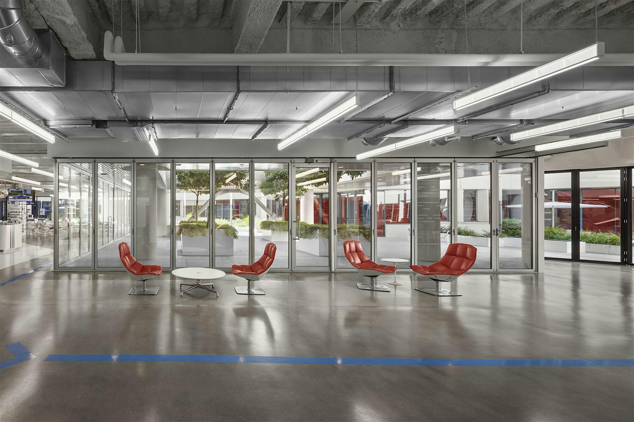 NanaWall commercial glass wall systems are thoroughly tested for high performance standards to perform in commercial offices.