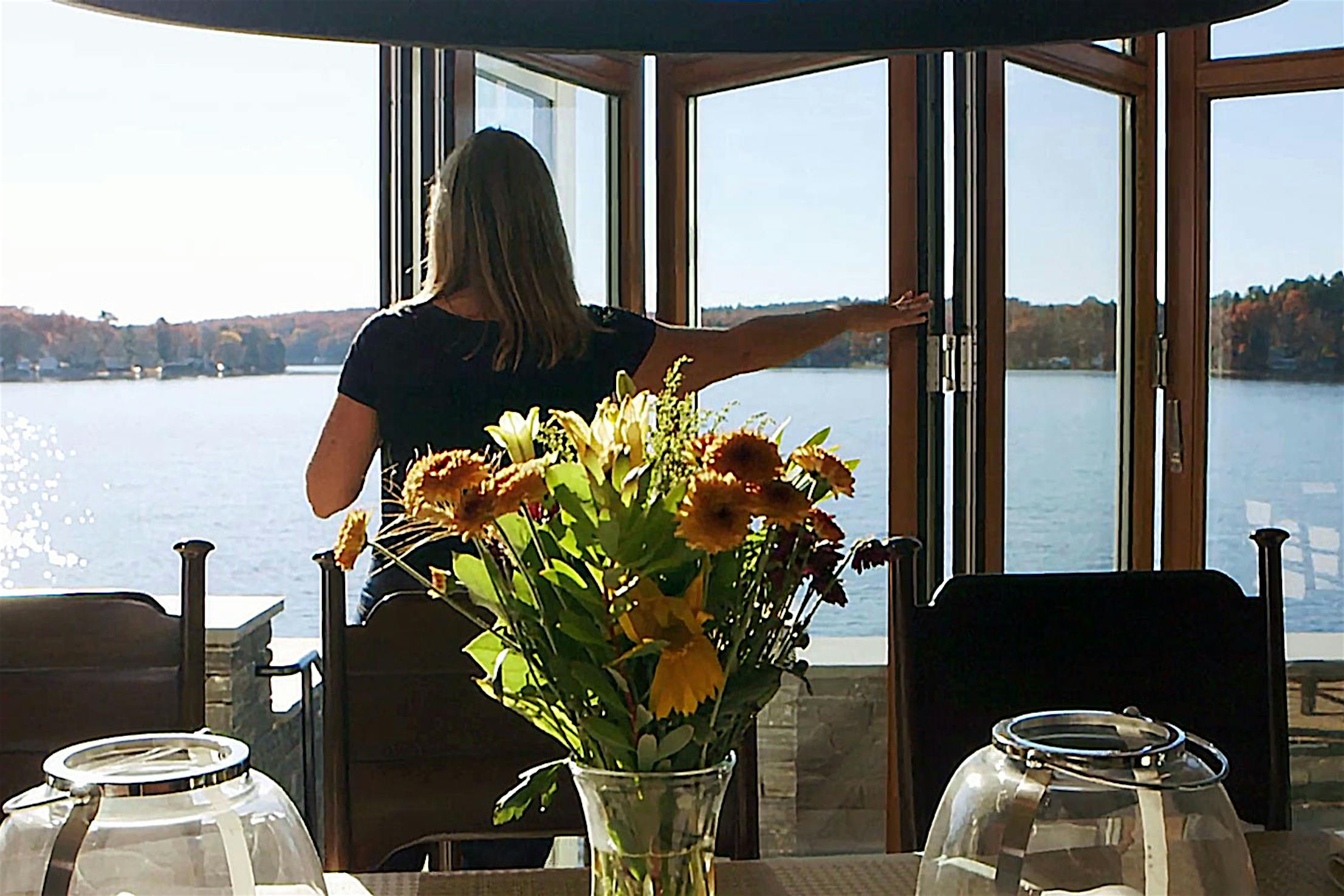 Homeowners in Sandisfield, Massachusetts, where temperatures reach 8 degrees, use their NanaWall throughout the year. In the winter, it’s a cozy escape just inches from billowing snowstorms. And in summer, the doors stack open to let in all the fresh air they could want.