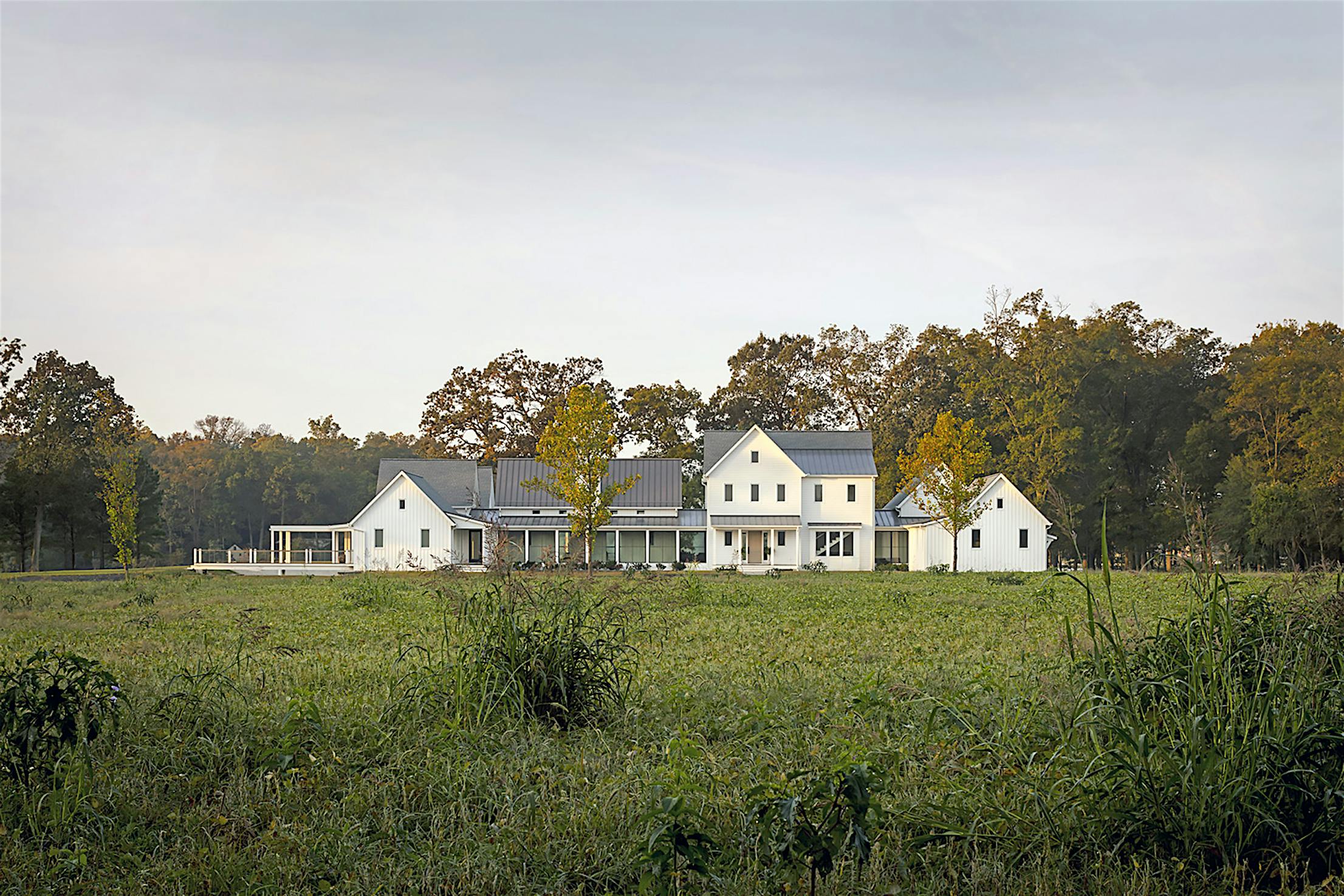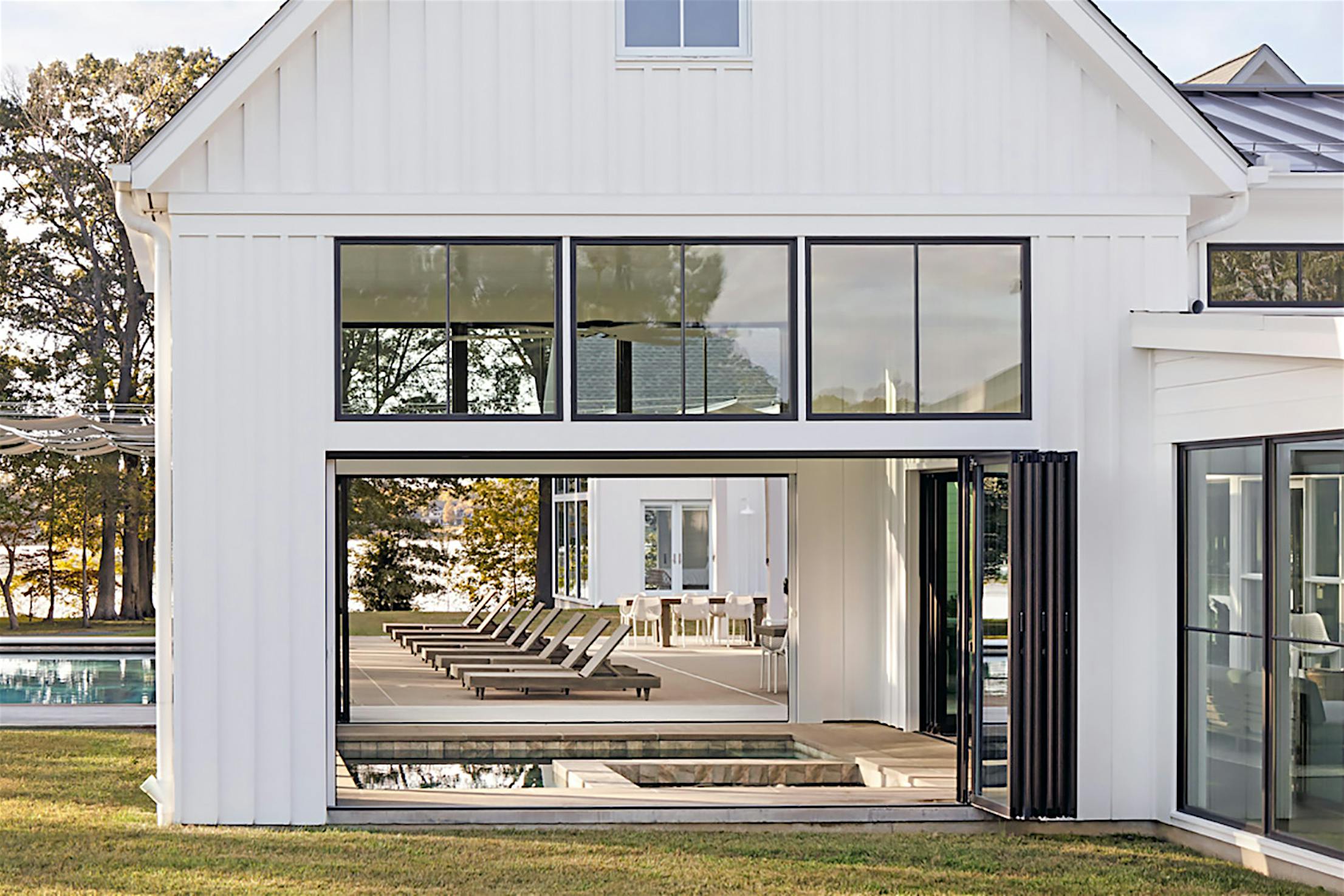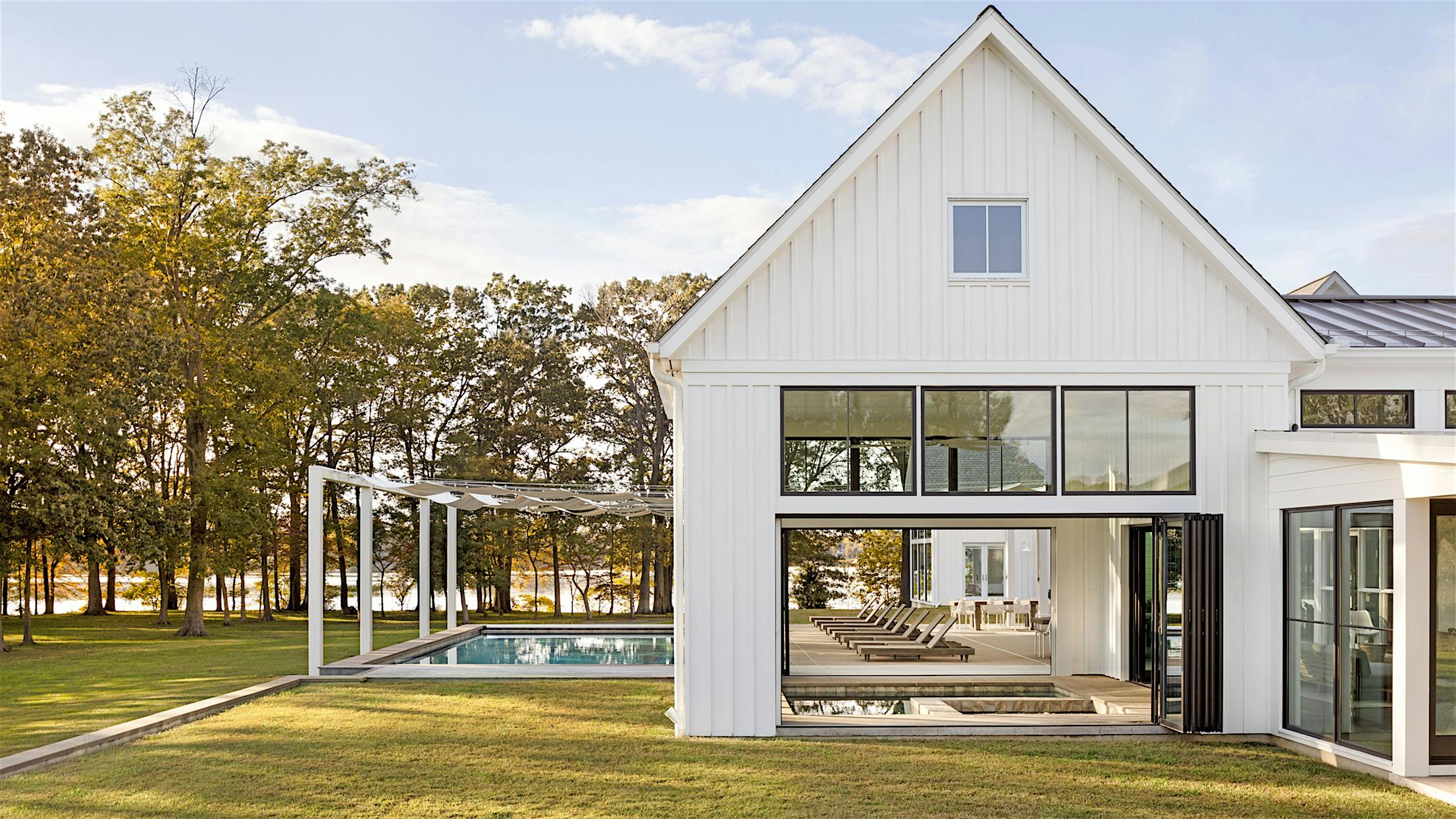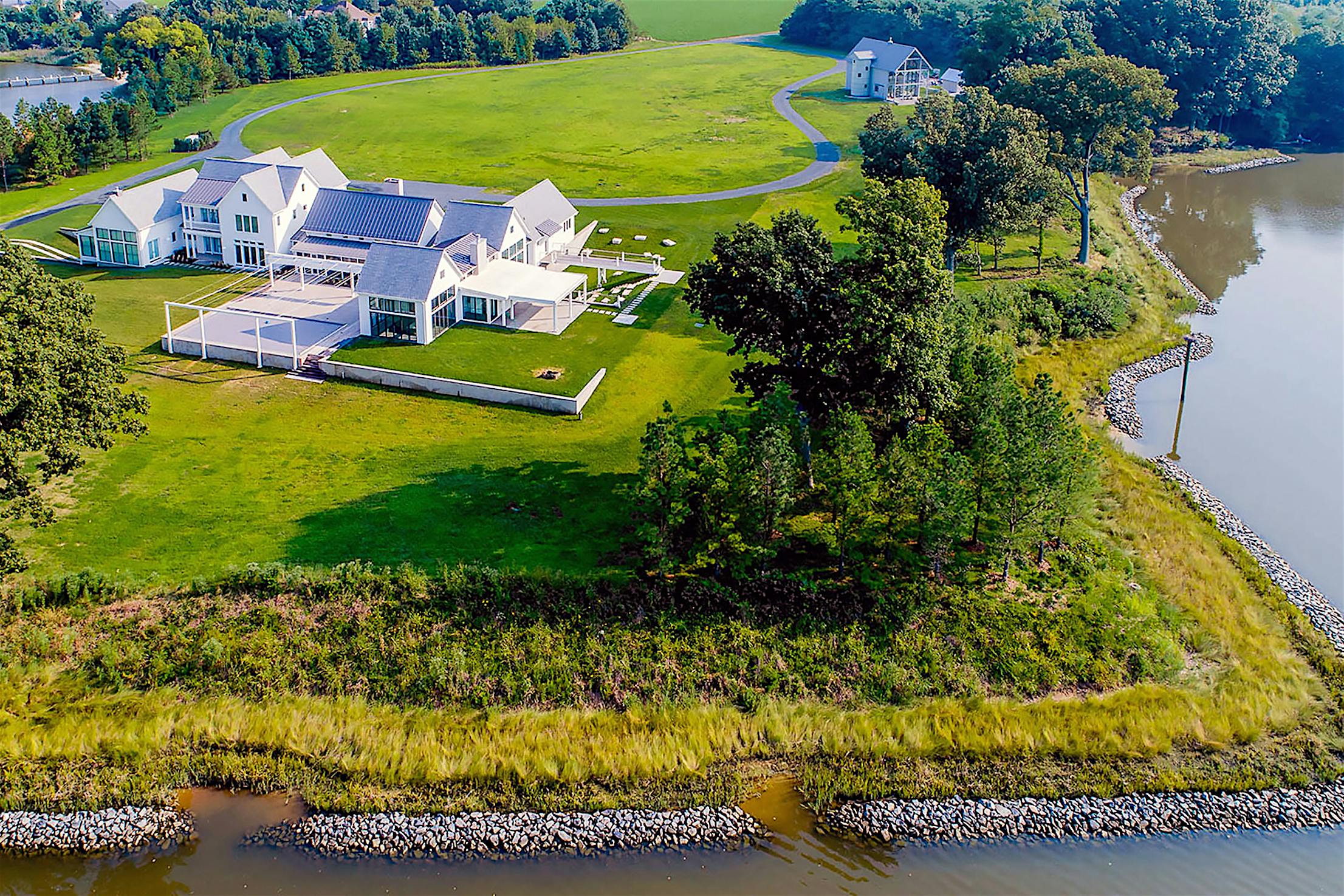 Nestled within a picturesque parcel of land in Queensland, Maryland a modern farmhouse gem stands out against its serene surroundings with minimal architectural features and folding glass doors that connect the indoors to the outdoors. Looking for the ideal year-round family getaway, the Baltimore family of four stumbled upon the 14-acre property and were immediately lured by the ethereal charm of vibrant green fields, surrounding woodland, and the sparkling waters of the Wye River. Despite the outdated building at its center, the homeowners decided to buy and make the property the ideal year-round getaway for family and friends. The renovation that came after would deliver a home that exceeded all expectations.