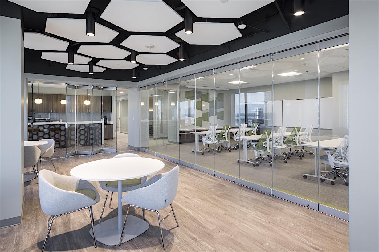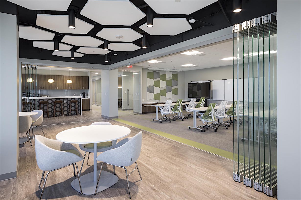 The new-found flexibility of the space is a significant enhancement to the SK&A office, giving the company the ability to better function in the ways that contemporary business practice demands. They have made considerable use of its versatility. The conference room is frequently used closed for meetings, but they open it up often for other functions. “At least once a week,” says Guy Razzi, SK&A Senior Principal, “we have professional development webinars, which can attract quite a crowd. We’ll open up the entire wall, so we can allow 18-20 people to view TV screen. We’ve used it for celebrations, too. NanaWall gives us a lot more flexibility in the way we use the conference room.”