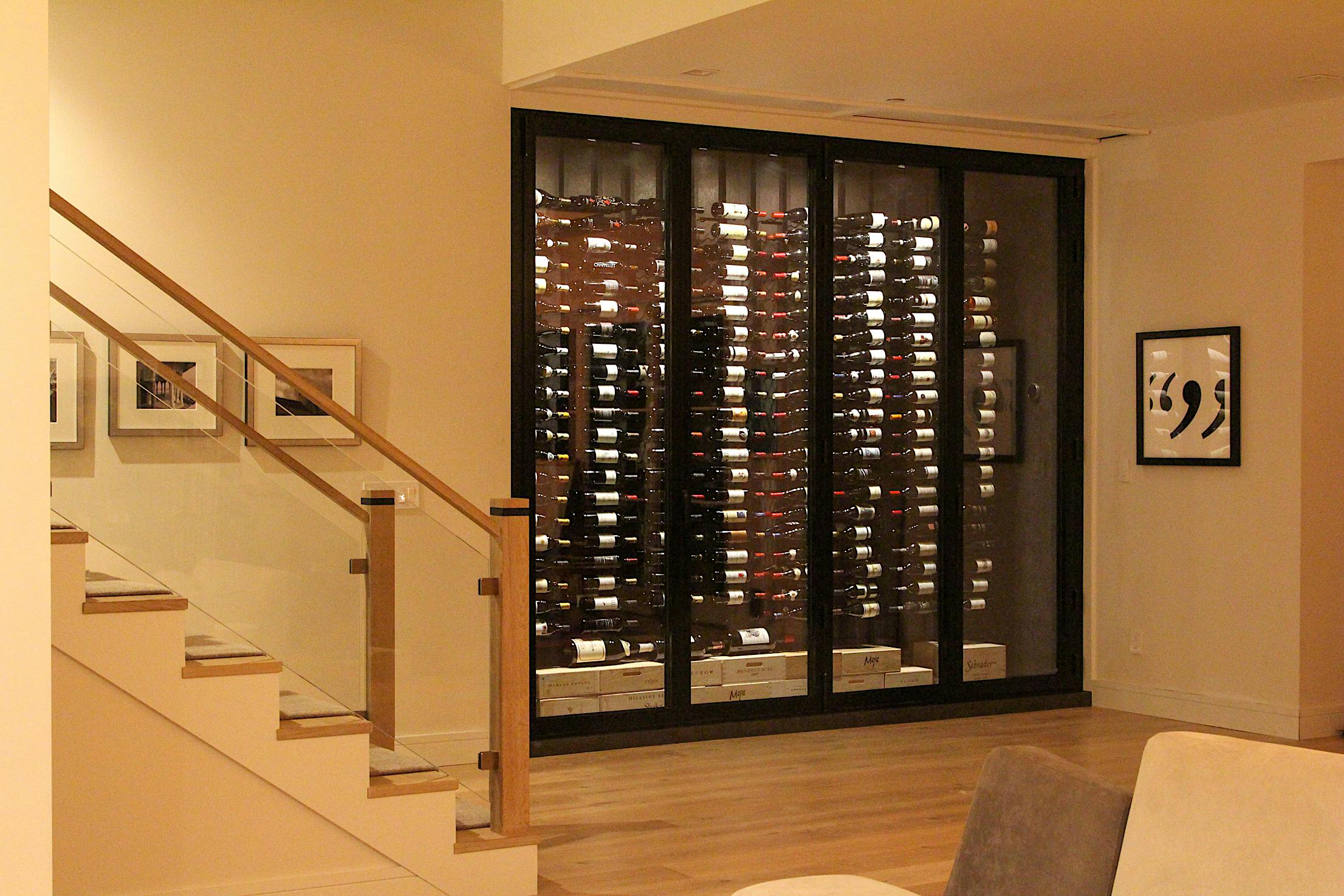 The homeowner summarizes the project’s success best when saying, “we were able to transform 36 square feet of floor space into a beautiful 500 bottle energy-efficient temperature controlled wine cellar that has become the focal point of our living space.”