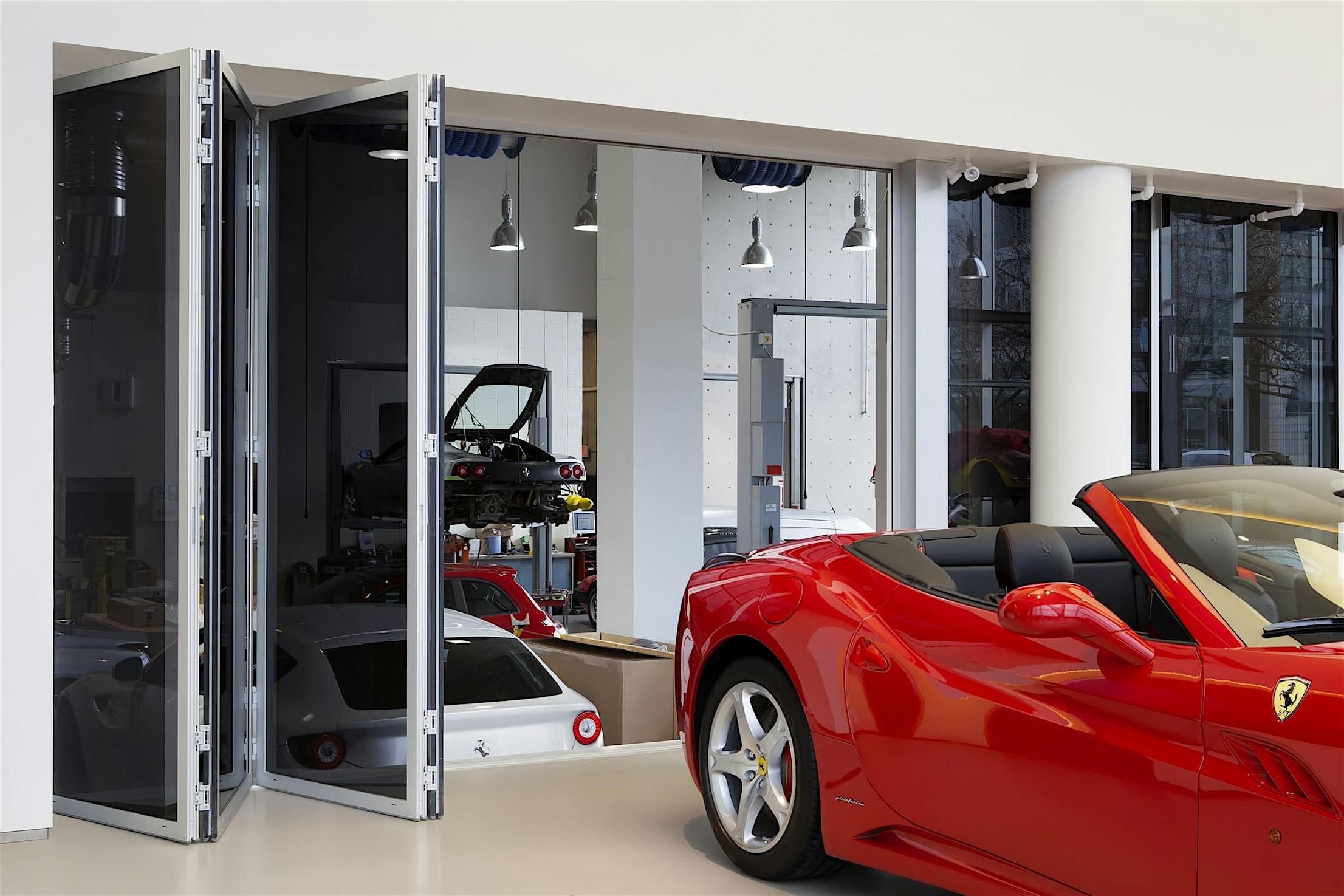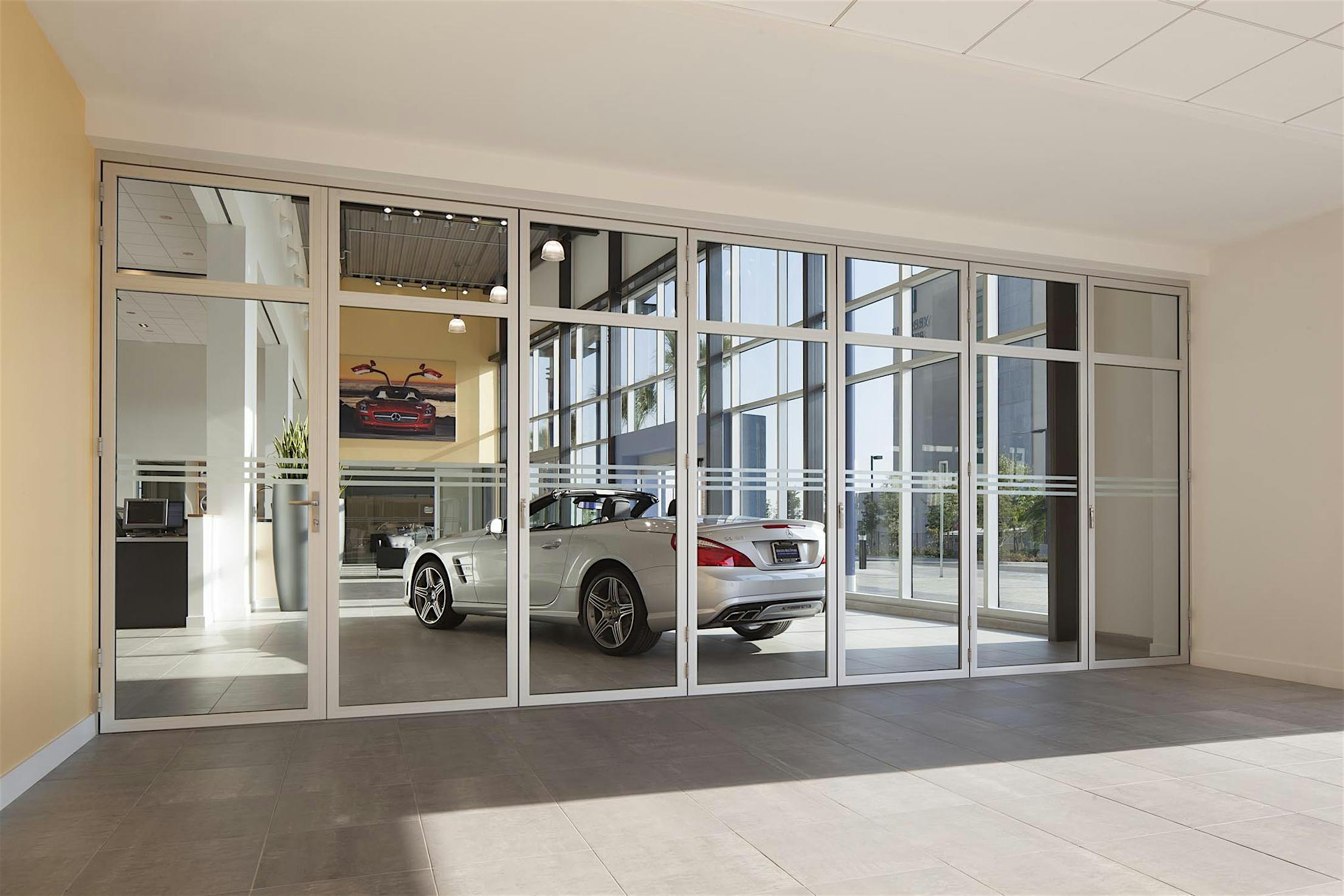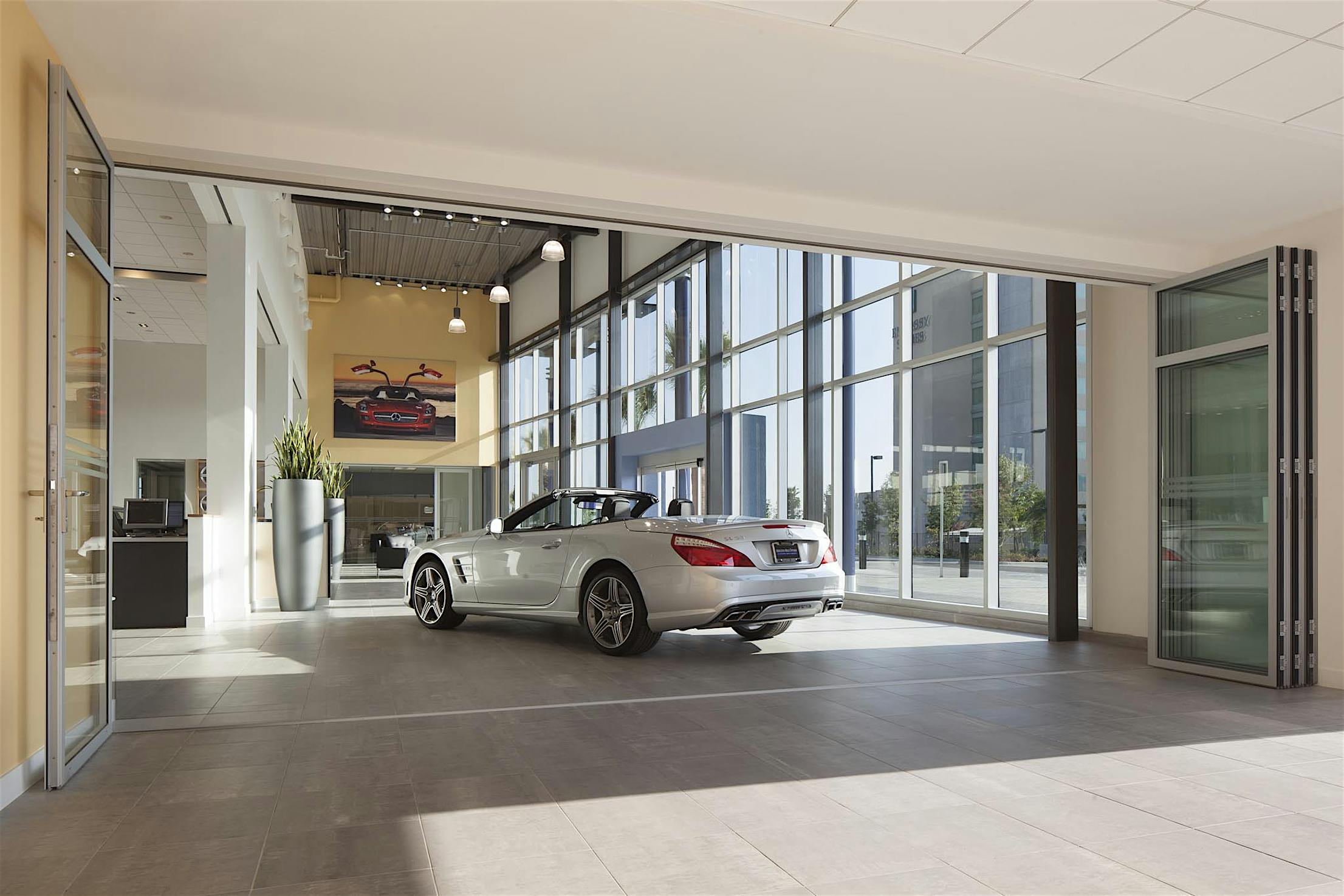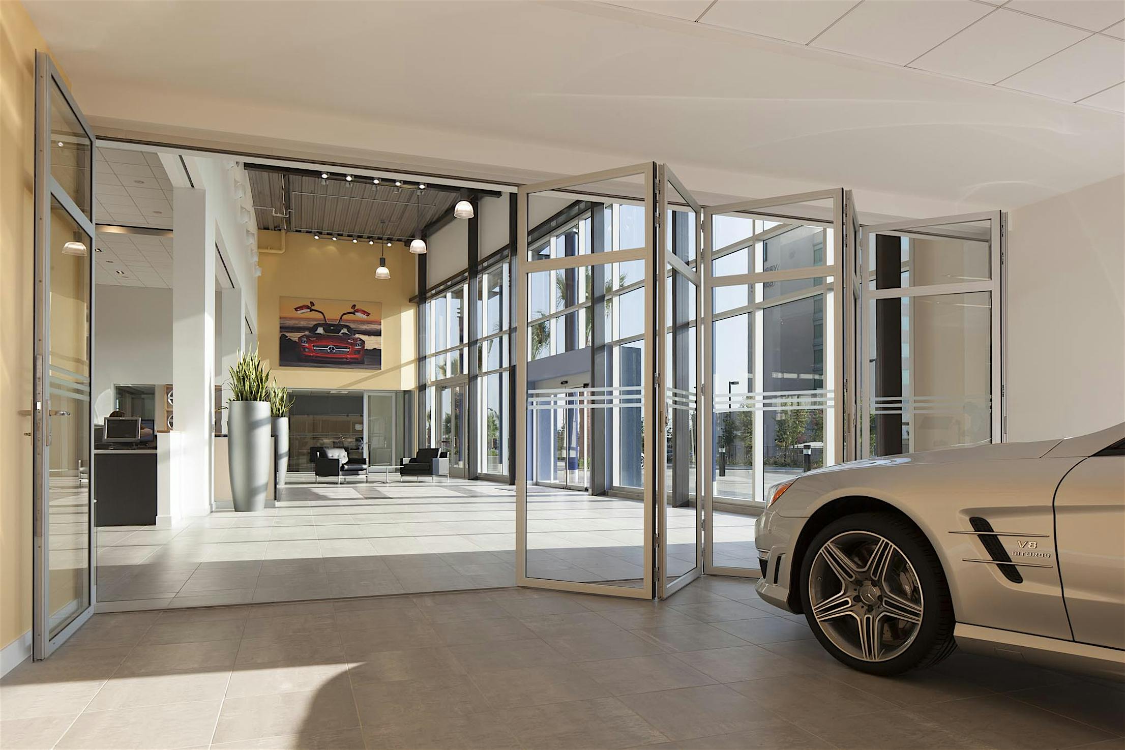 NanaWall commercial glass sliding door systems remove the physical and psychological barriers between clients and dream vehicles. Capture the expansive natural world beyond in one elegant and dramatic gesture.