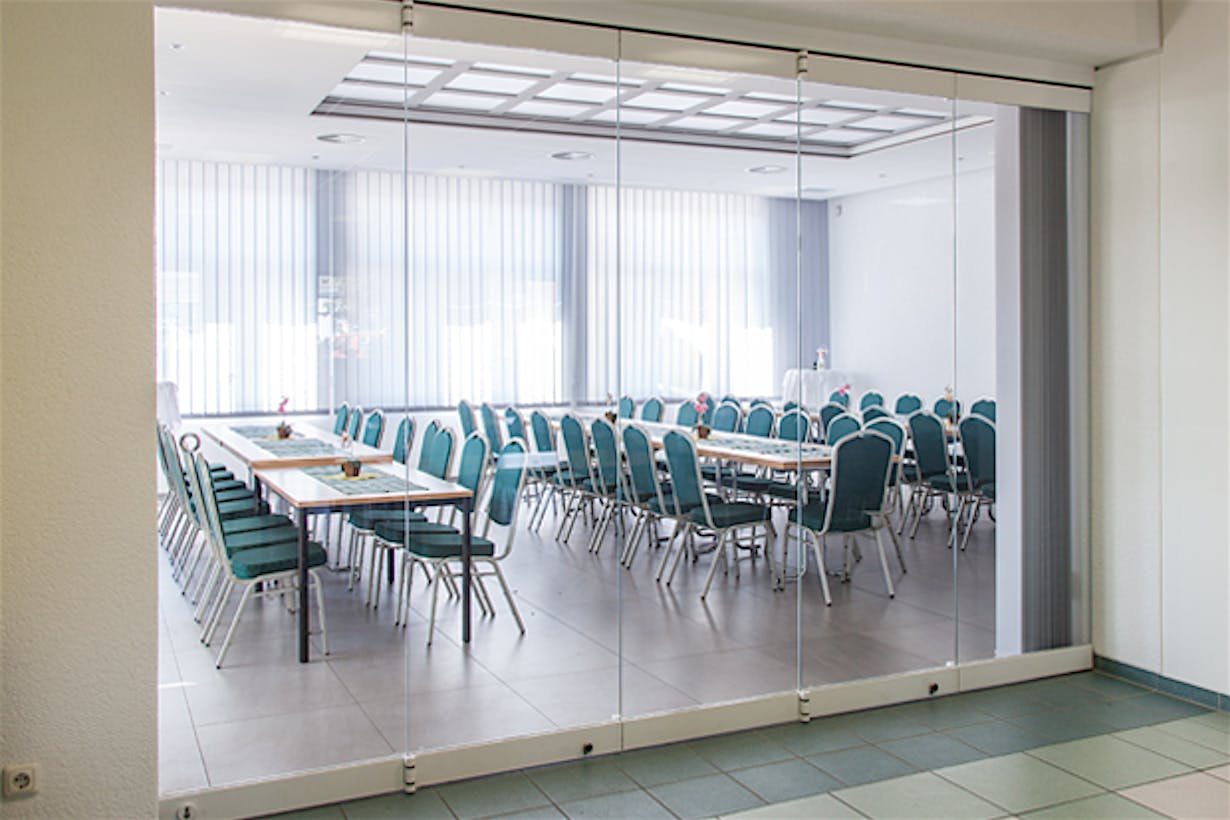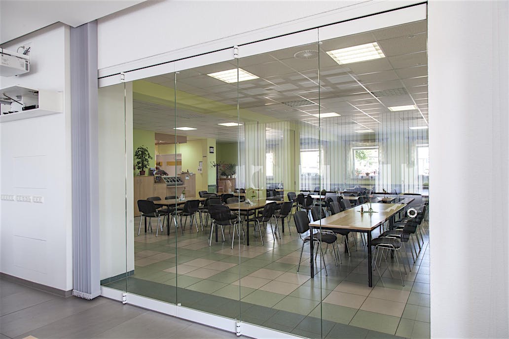An optional white interlayer can be added for the closed panels to be used similarly to a white board. Additional glazing options include low iron or decorative glass. All glazing is reduced iron. Please contact NanaWall Systems for more details.