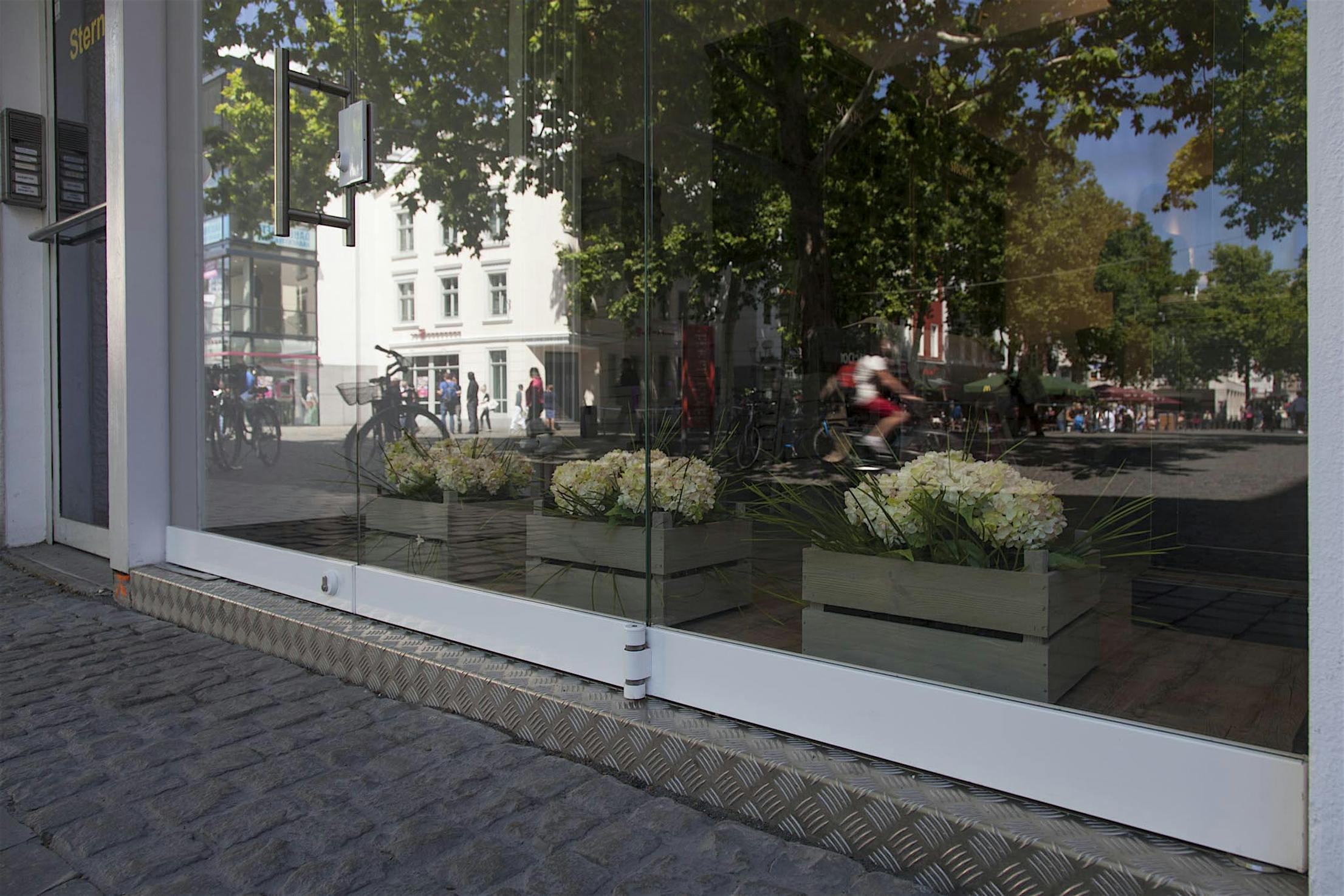 As a standard security measure, two hidden set screws per hinge are accessible only when the unit is in the open position. For projects requiring higher levels of security, or an increased acoustical barrier, NanaWall FSW75 can be configured with laminated glass.