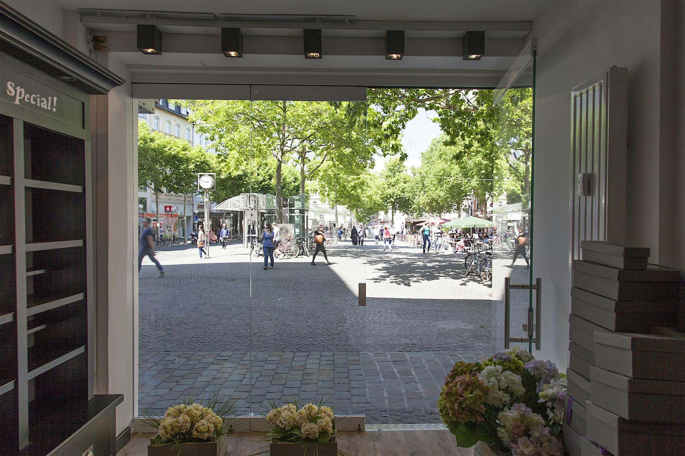 This office leveraged existing elevator lobby space to create a flexible, versatile public-facing conference room using a frameless opening glass door.
