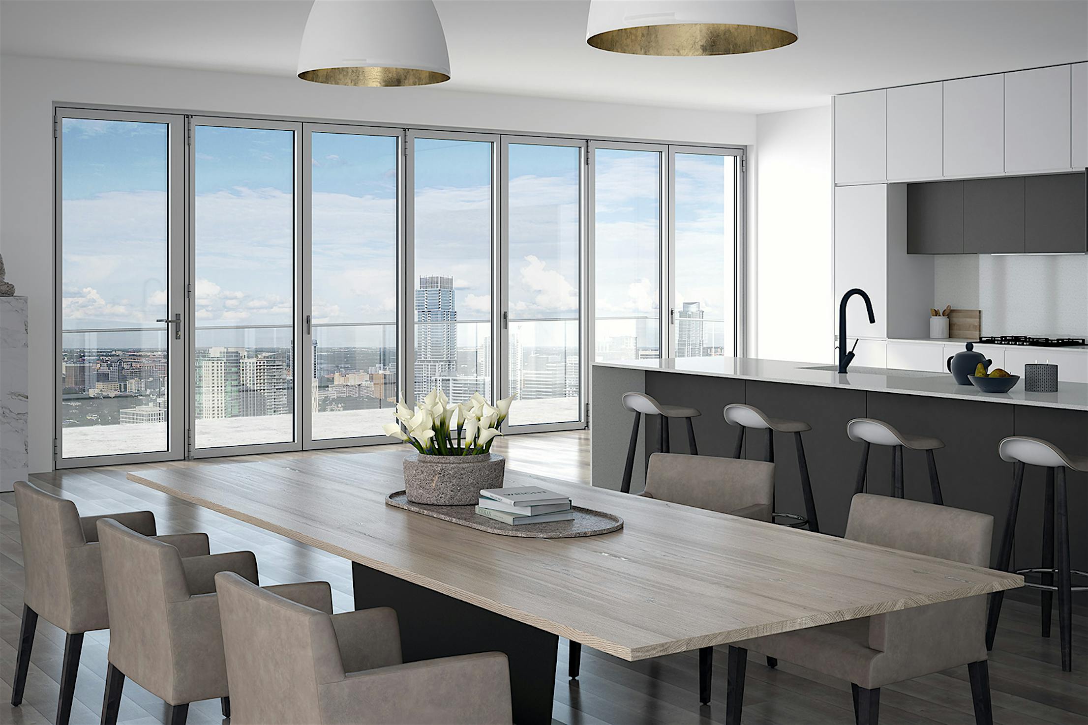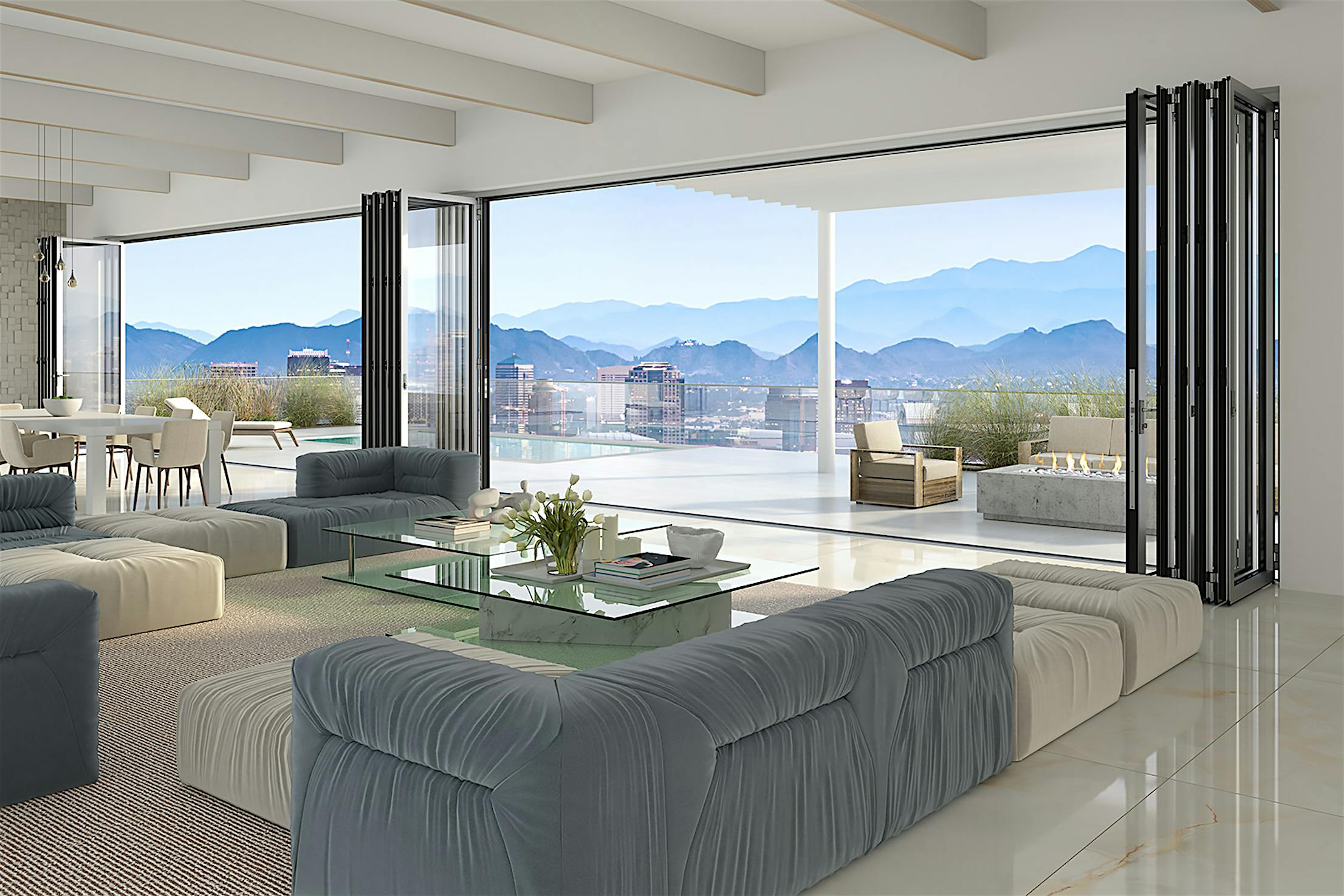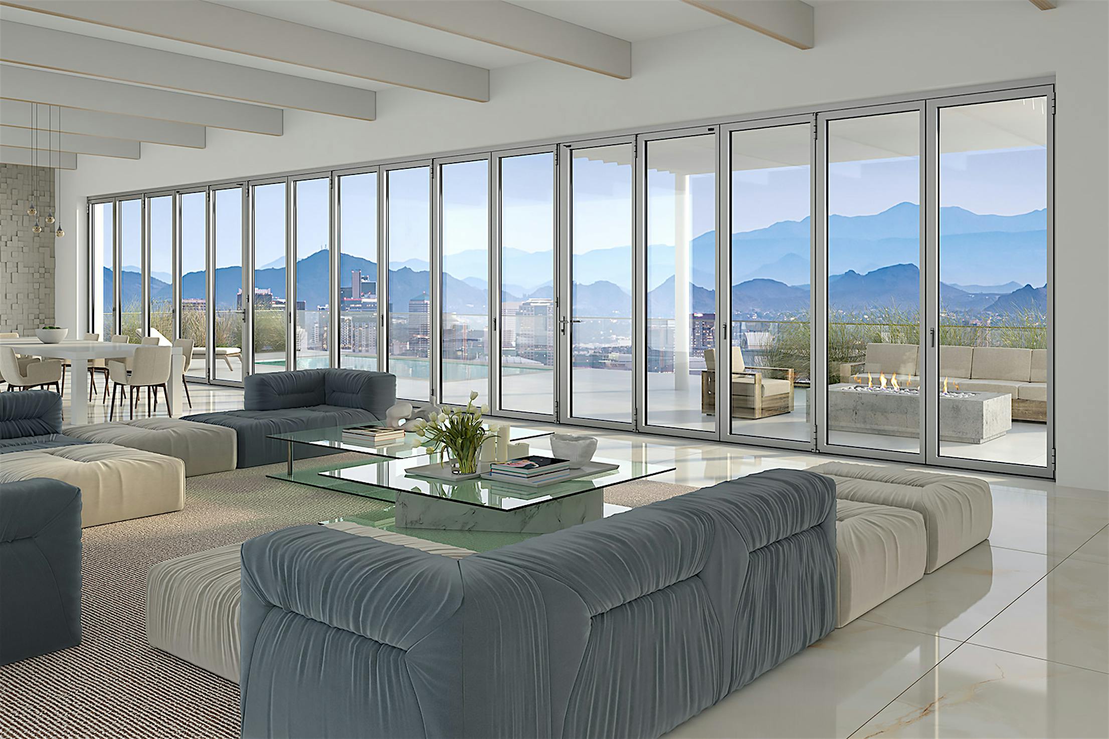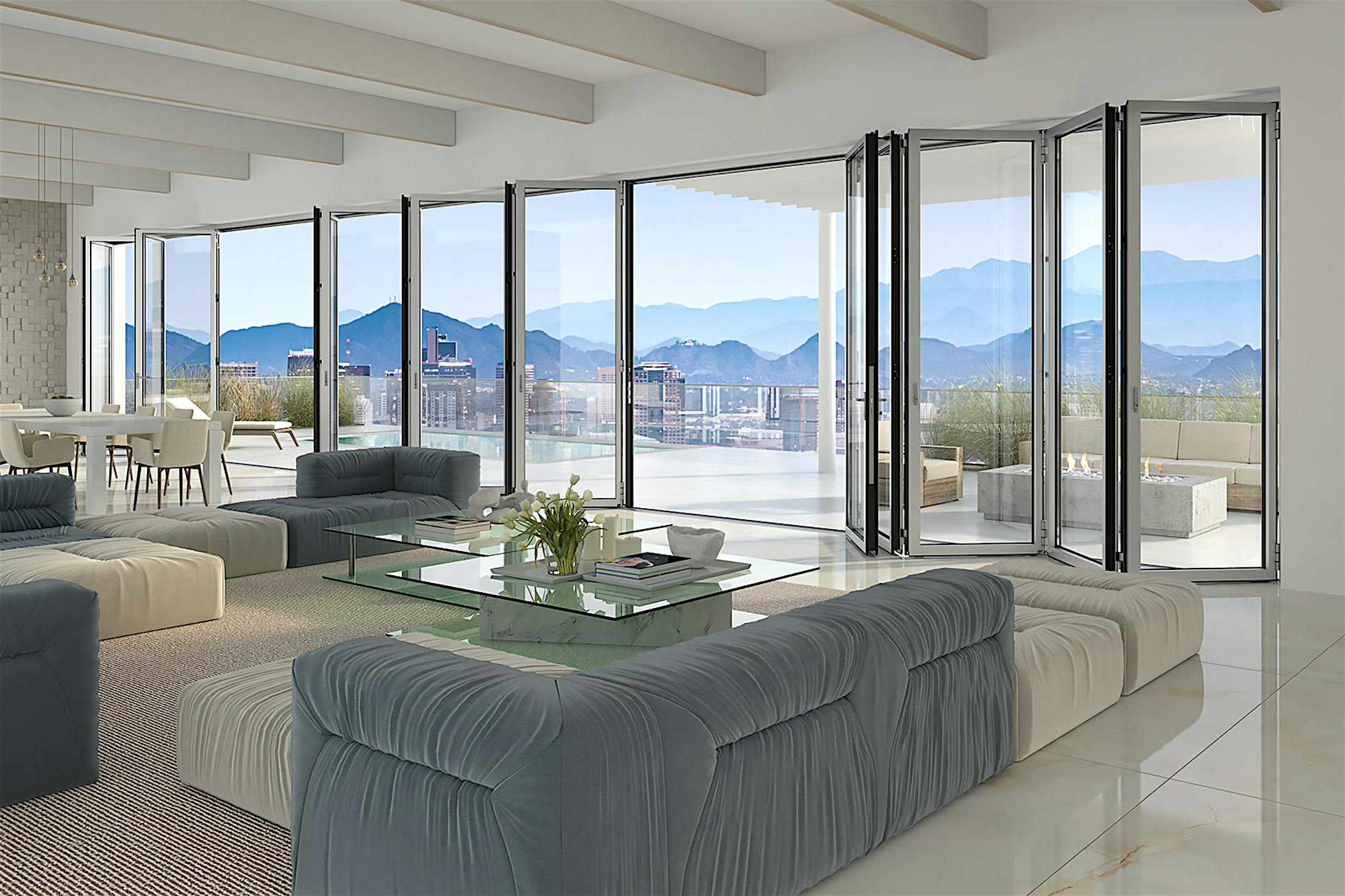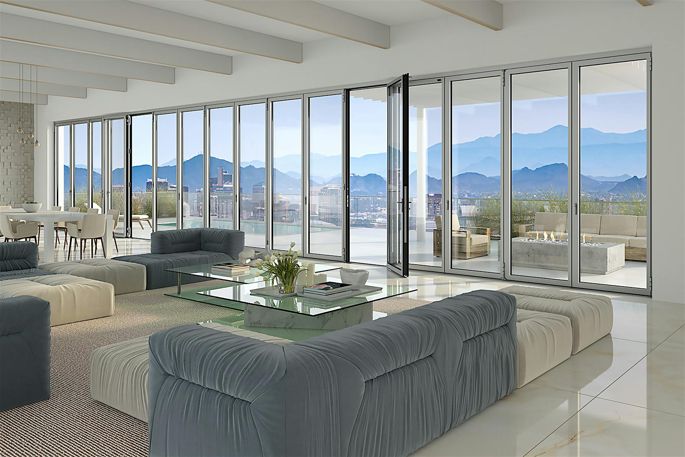 Designed for energy efficiency and strong weather performance, this thermally broken system provides exceptional protection from outside elements and delivers comfort and security when closed.