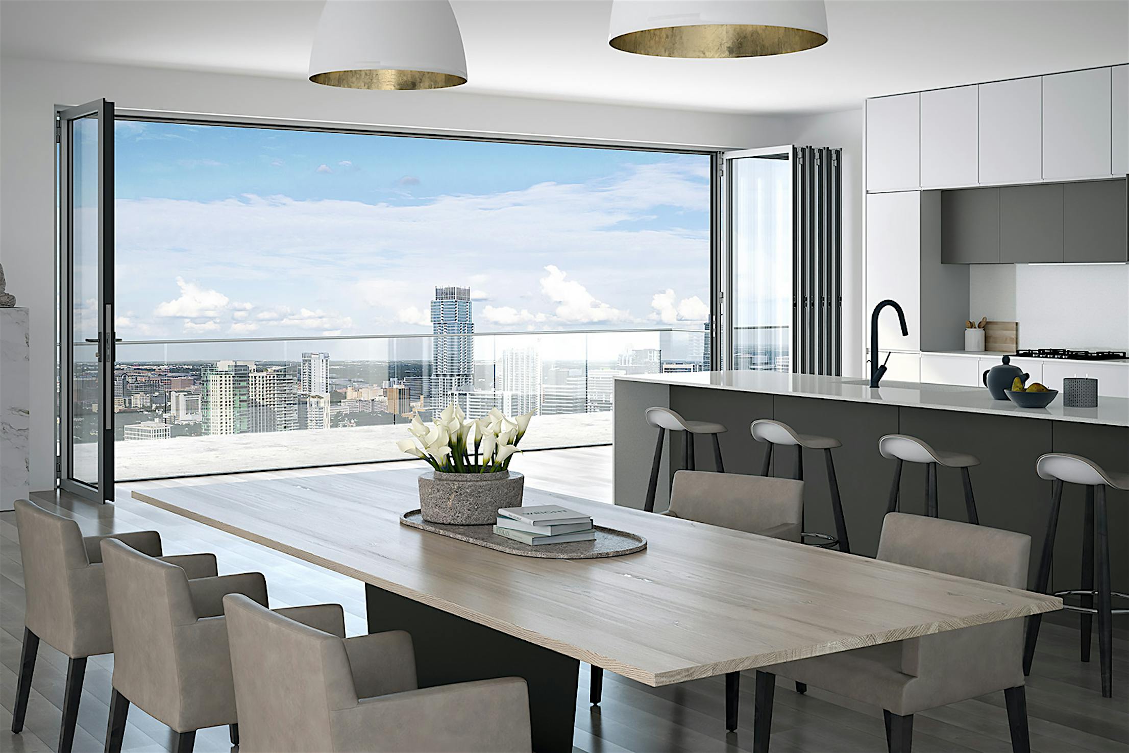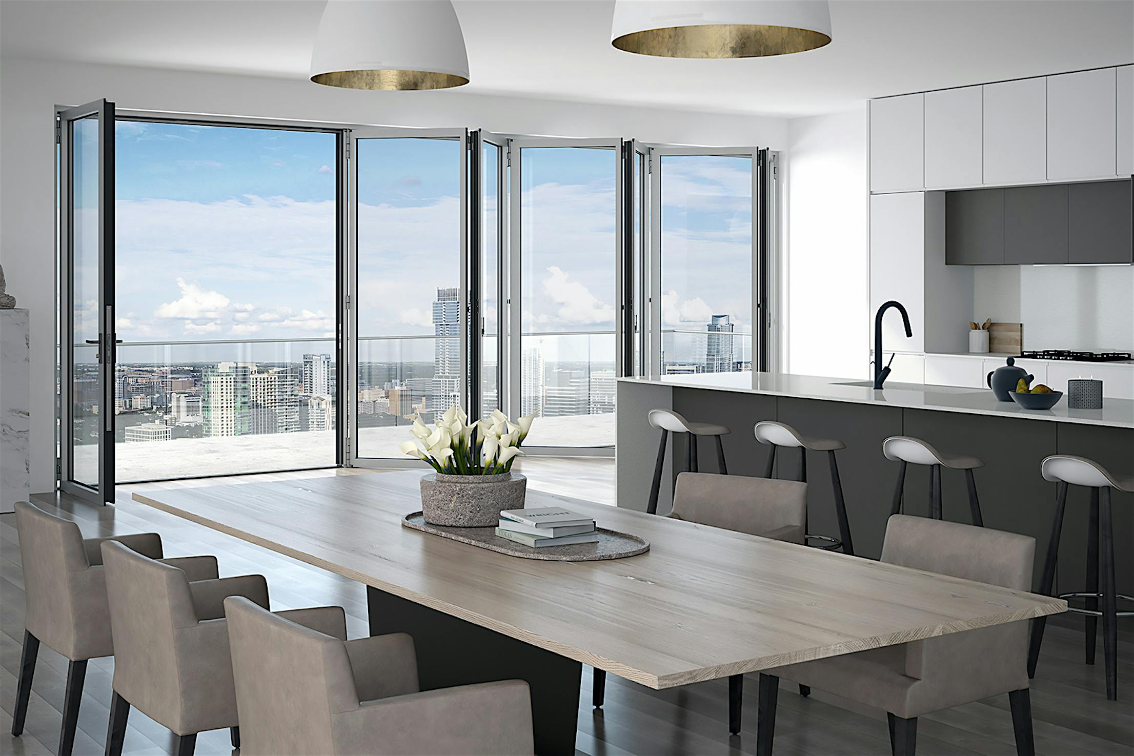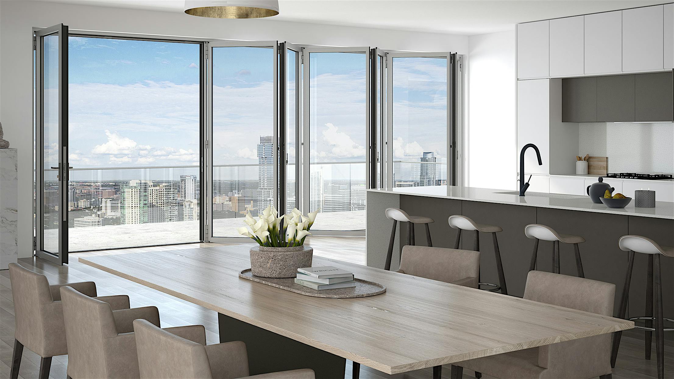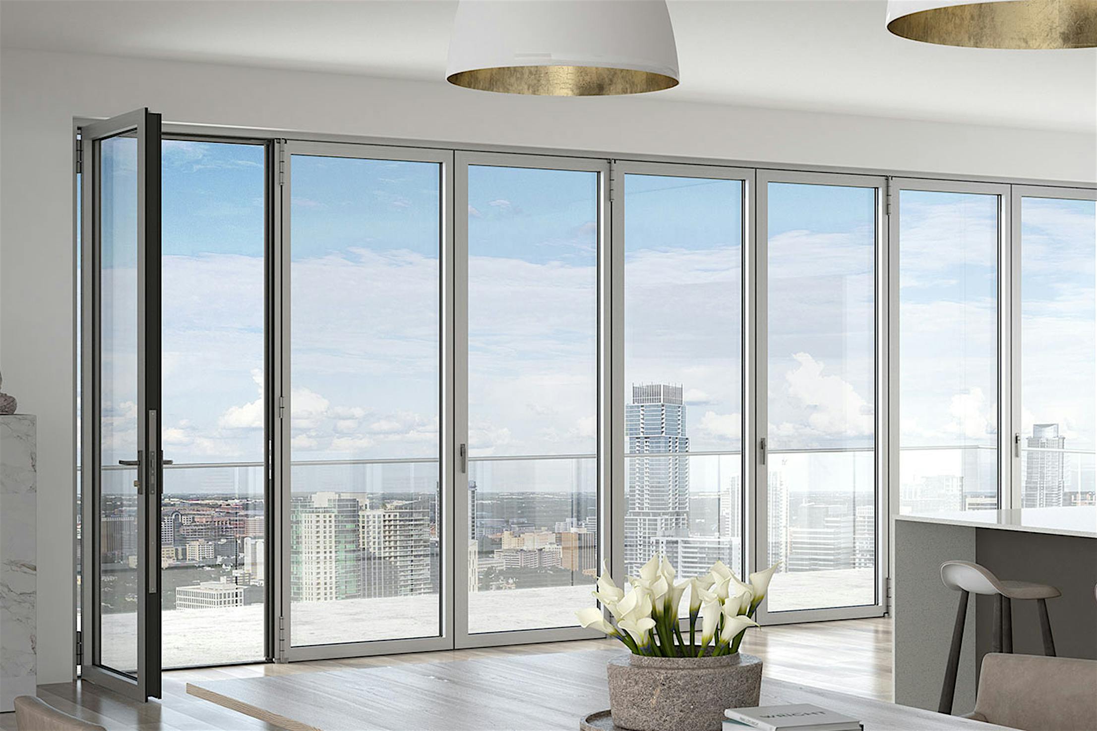 Slim Aluminum Framed Folding Glass Door for Mid to High-Rise Buildings at Taller Heights