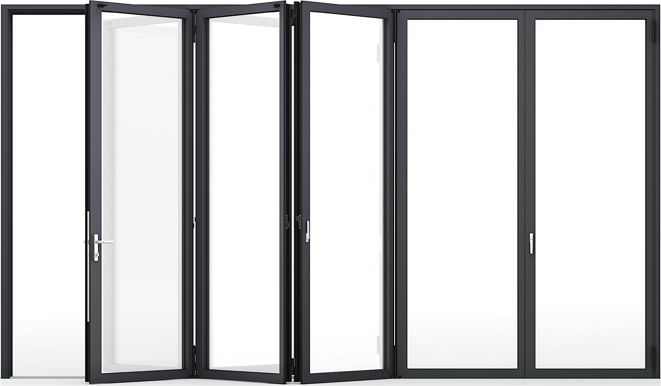 Standard to the system is concealed locking between folding panels that operates with a 180° turn of a flat handle.