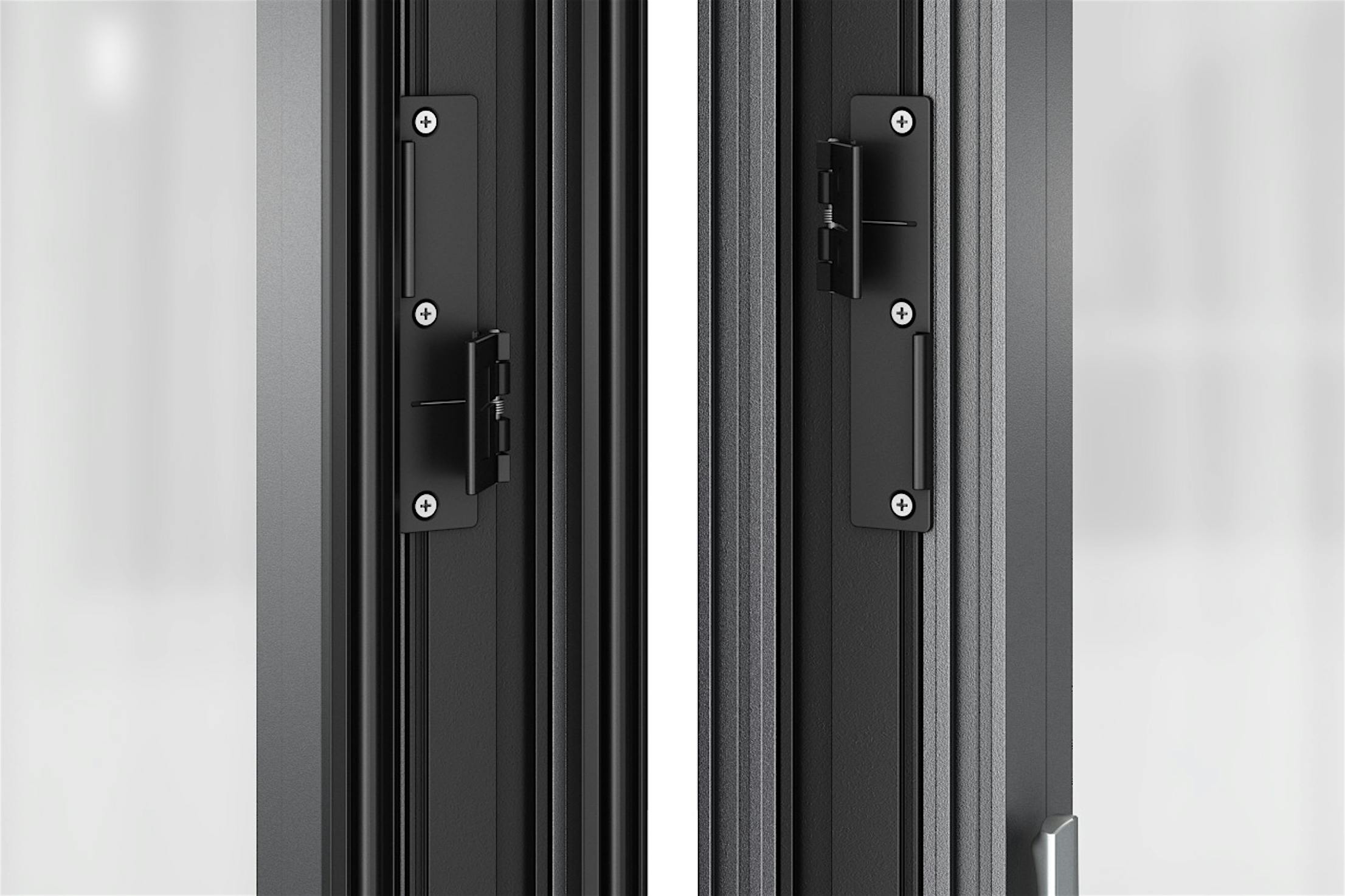 - Hidden spring-loaded TwinX mechanism aligns panels over 7′ (2150 mm)