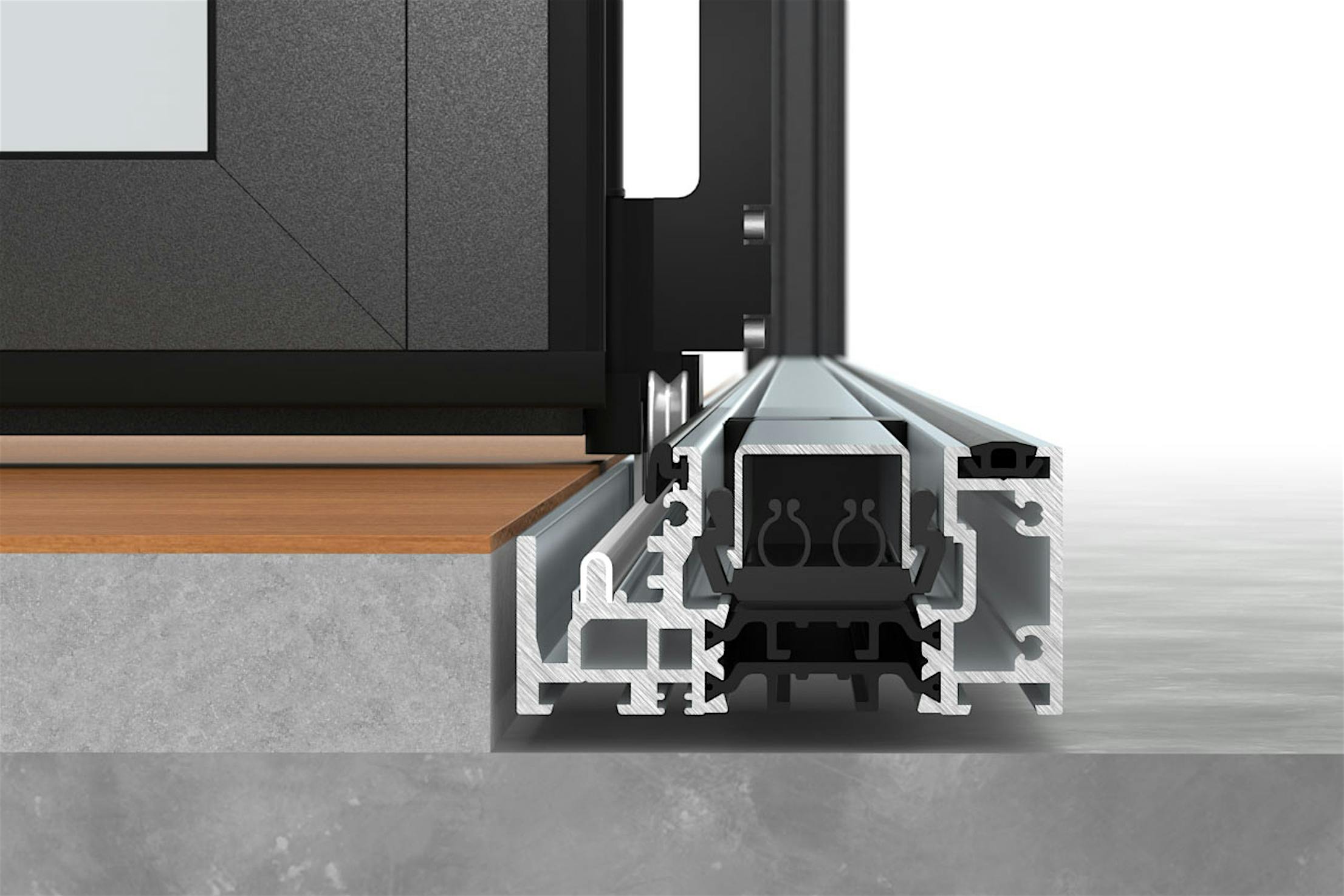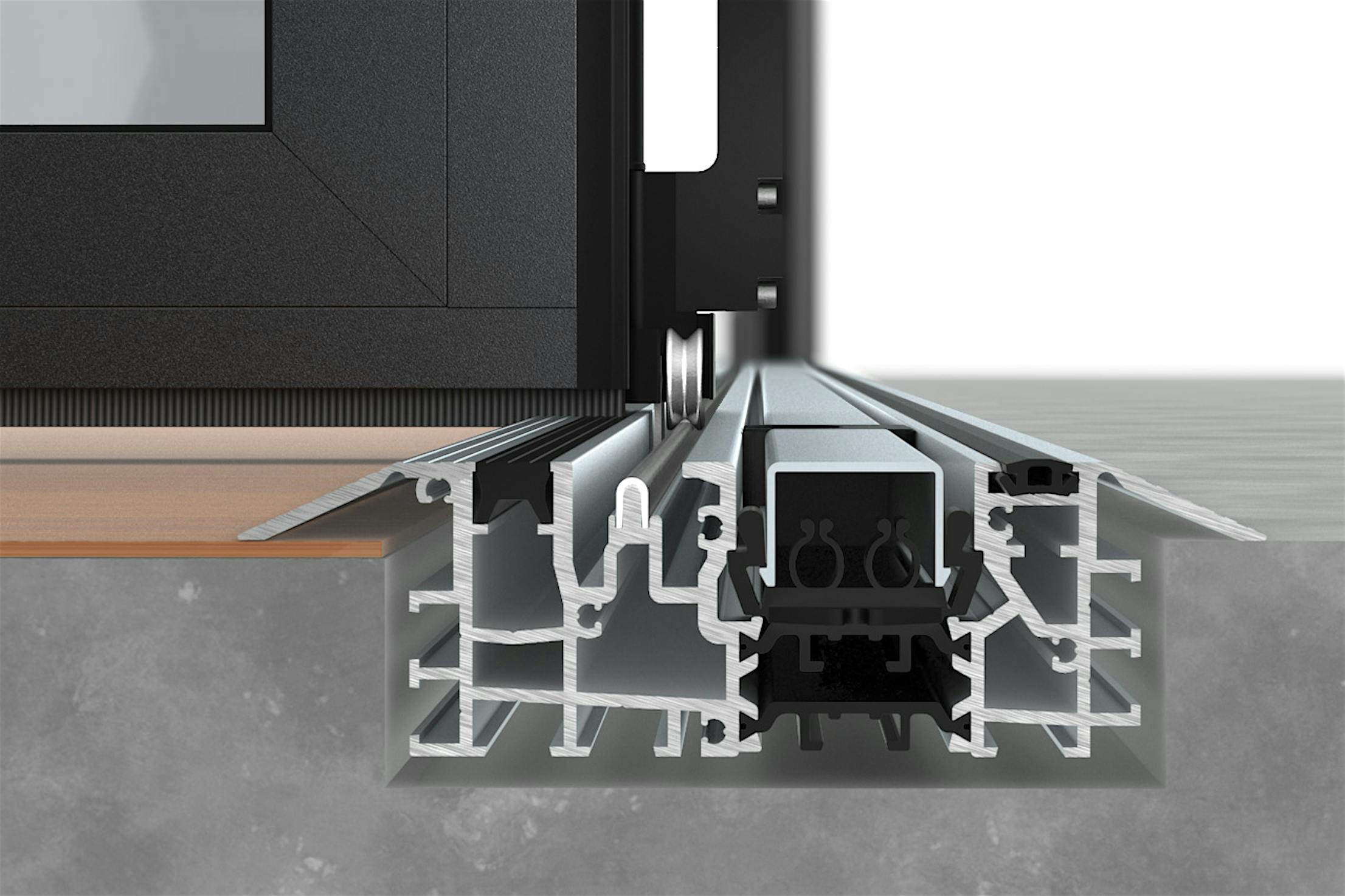 Standard to all sills is removable aluminum high heel resistant sill inserts. These inserts provide ADA compliance for the Low Profile Saddle sill and create a very barefoot-friendly transition. Furthermore, the inserts offer protection from dirt and debris collecting in the bottom track.