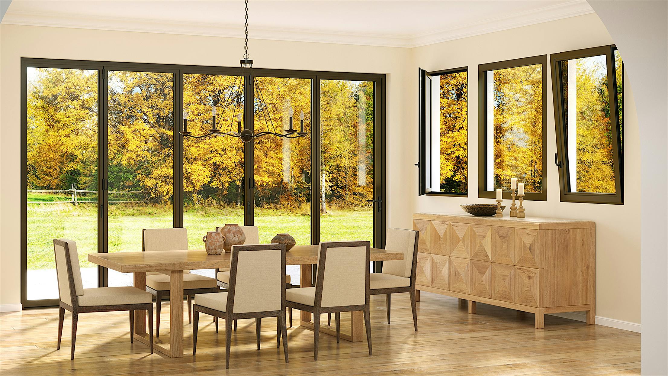 With concealed hinge hardware, these windows offer the same clean aesthetics as Generation 4 folding glass walls. The windows are designed with a consistent frame line and clean aesthetic and are offered in the same powder coat colors and wood finish options.