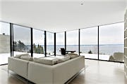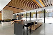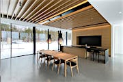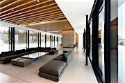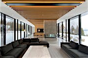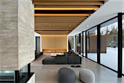 Multiple units of NanaWall SL60 were selected for the project because of its minimal sightlines and its ability to thrive in a tough Northeast climate. Folding door connect the mountain terrain with the inside of the home, even when the doors are closed.