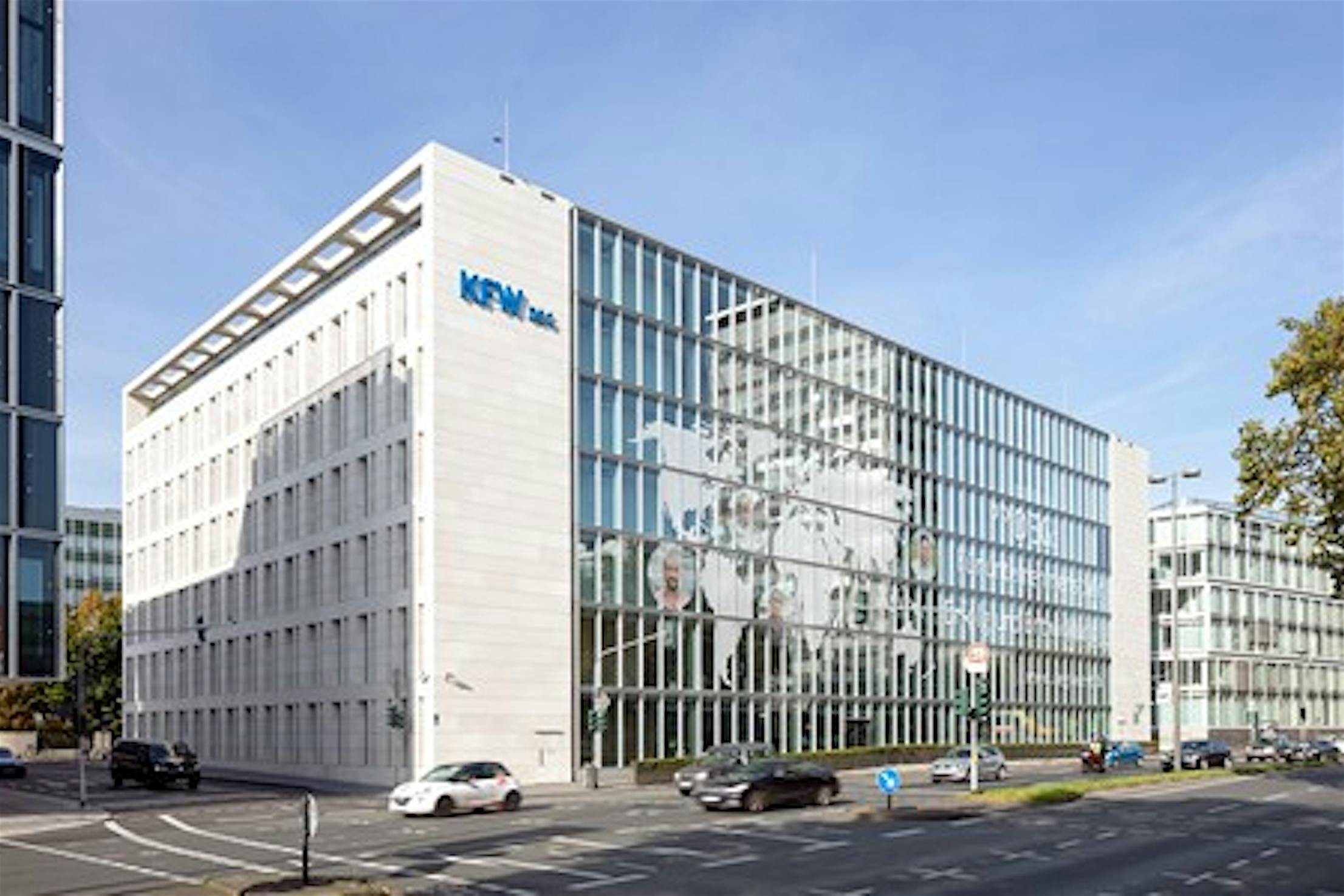 In 2011, DEG determined a need to enlarge their offices into a campus and brought forth a competition to design an annex building adjacent to the 2008 headquarters. Furthermore, they had a goal to expand the useable square footage within the original building. Düsseldorf firm, sop (slapa oberholz pszczulny) architectscreated the winning design. This firm artfully designed an all glass façade modern building that bridges to the original sandstone and glass building. Now these adjoined buildings house some 500 employees.