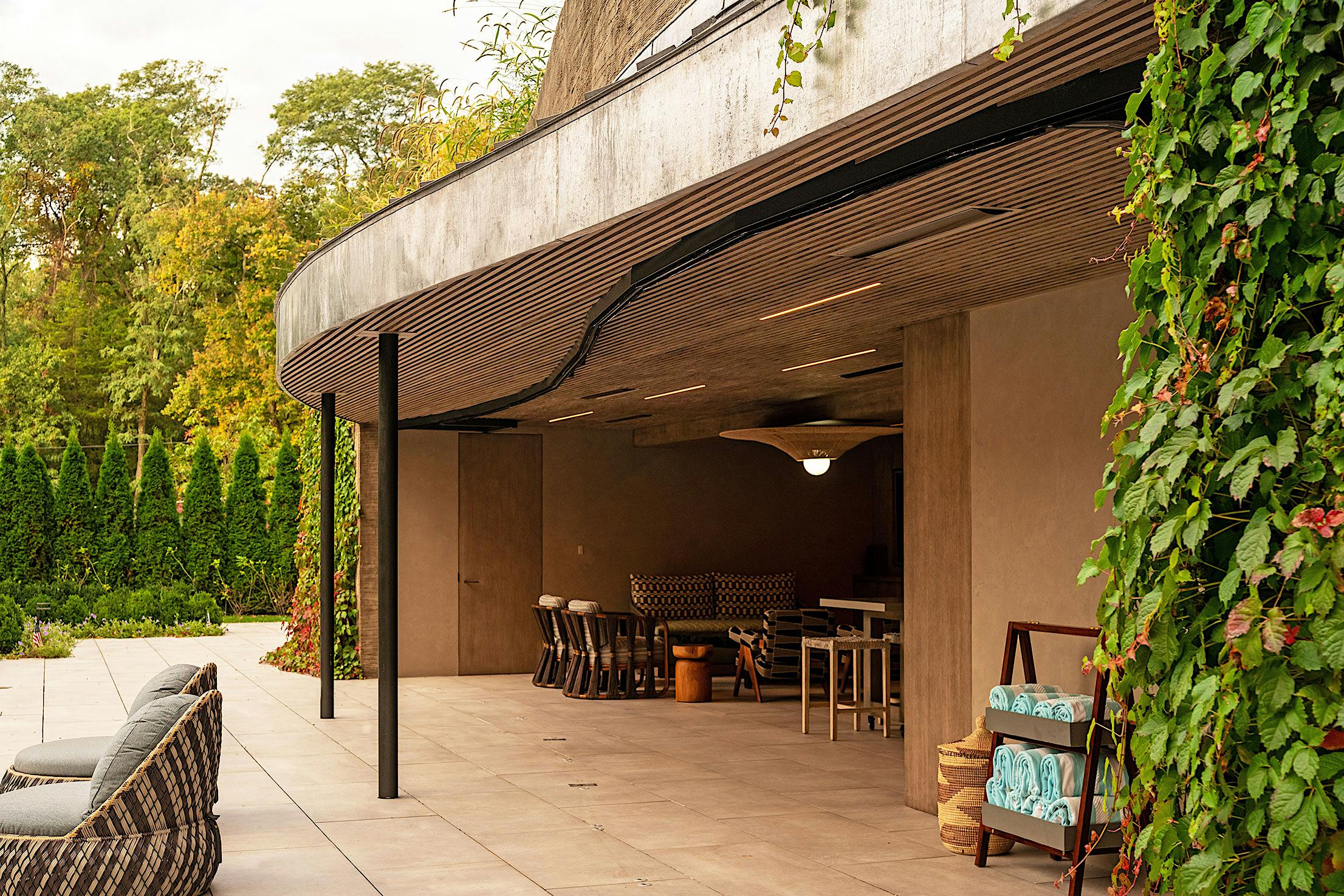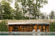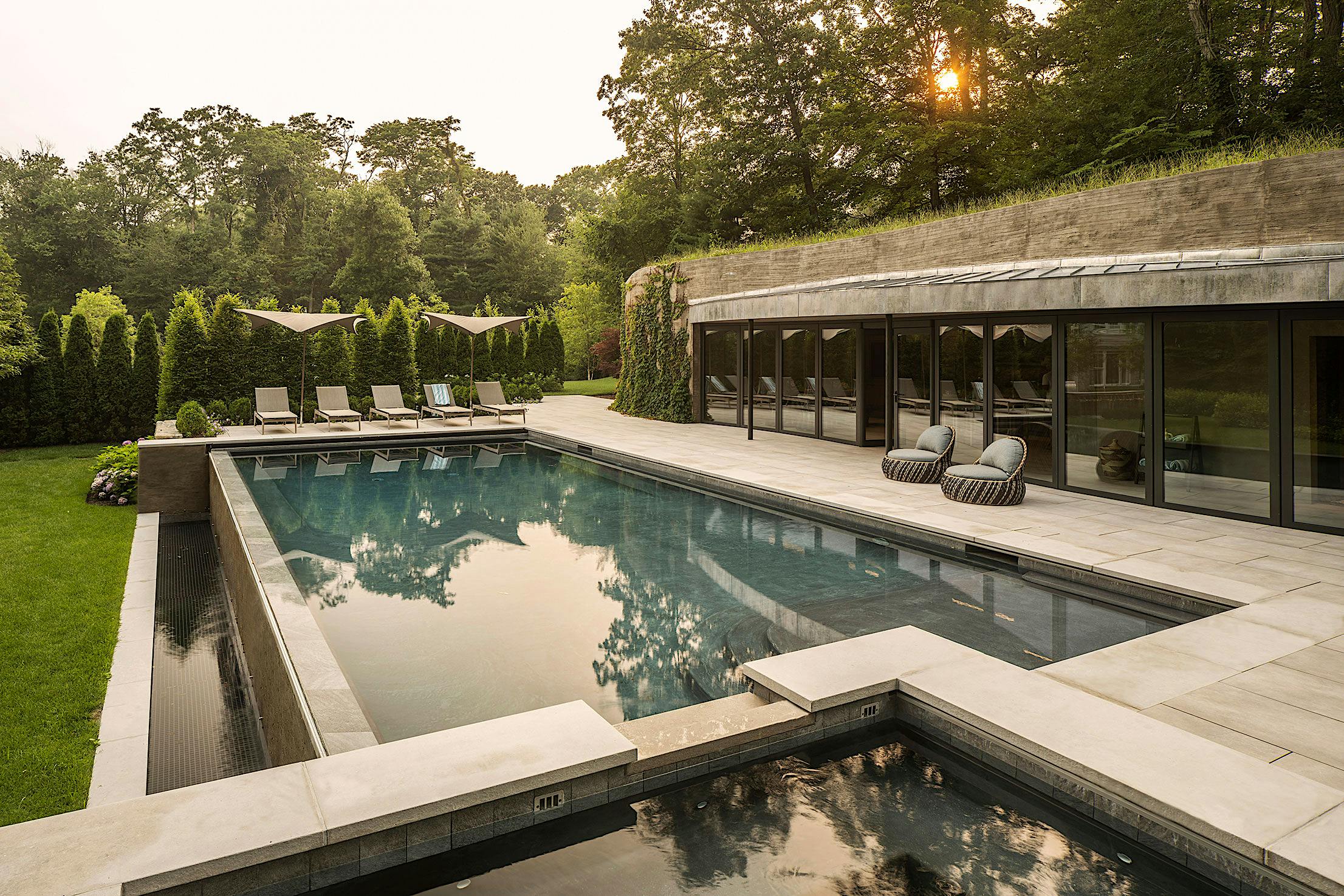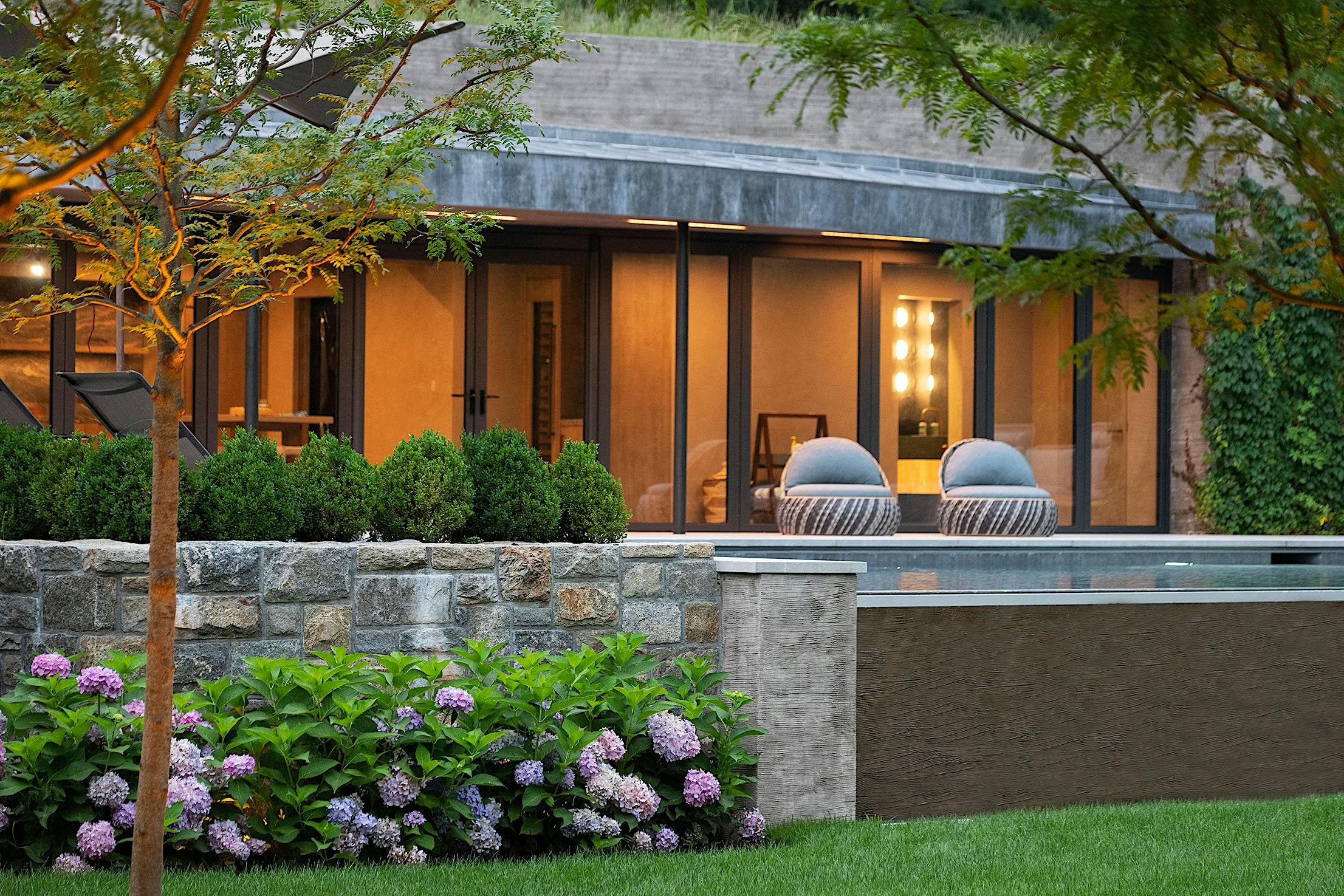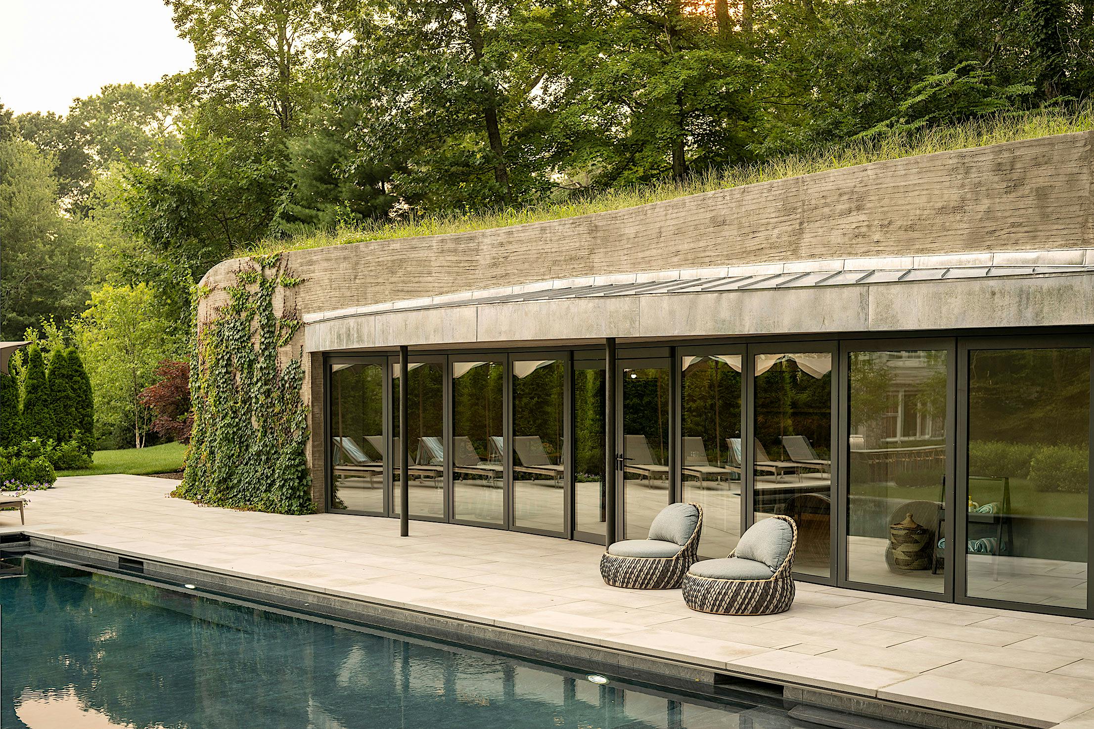 This unique Greenwich, CT project represents a harmonious integration of architecture and nature, with a NanaWall single track sliding system as an essential piece of the pool house design. The moving glass wall system seamlessly connects the comforts of the pool house with the surrounding natural beauty. This innovative feature blurs the boundaries between indoor and outdoor spaces, creating an immersive and refreshing environment.