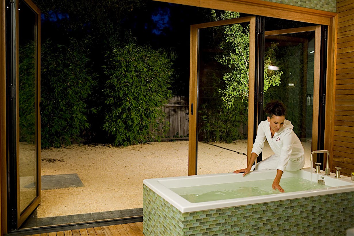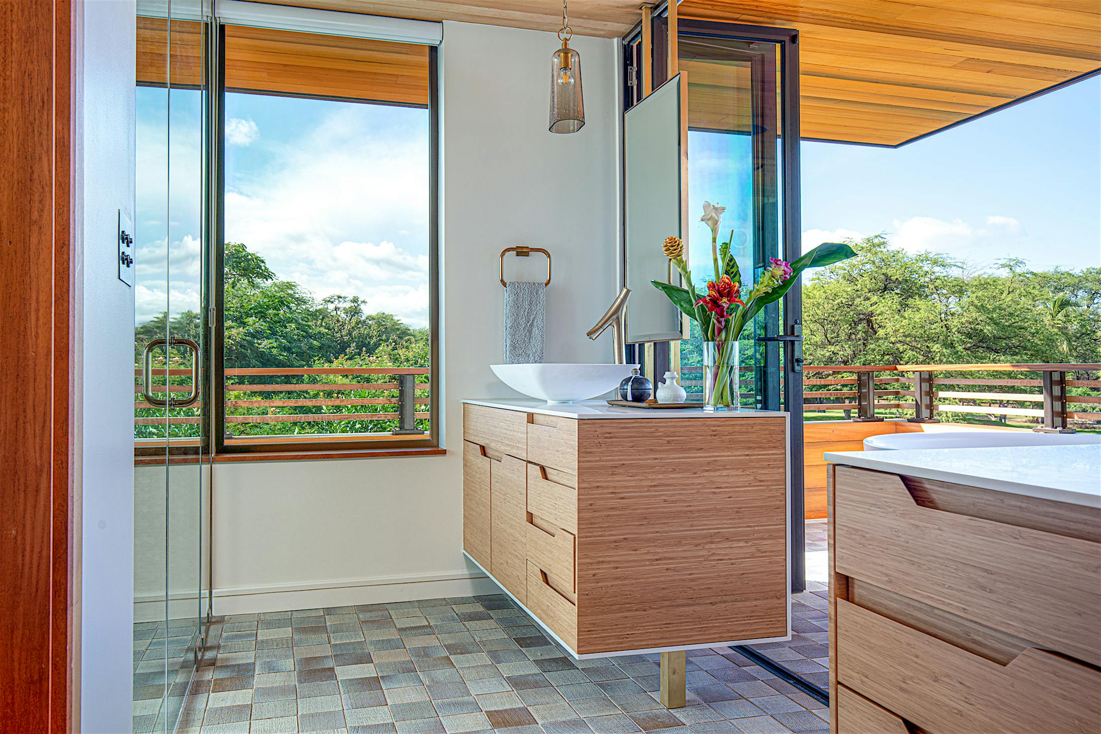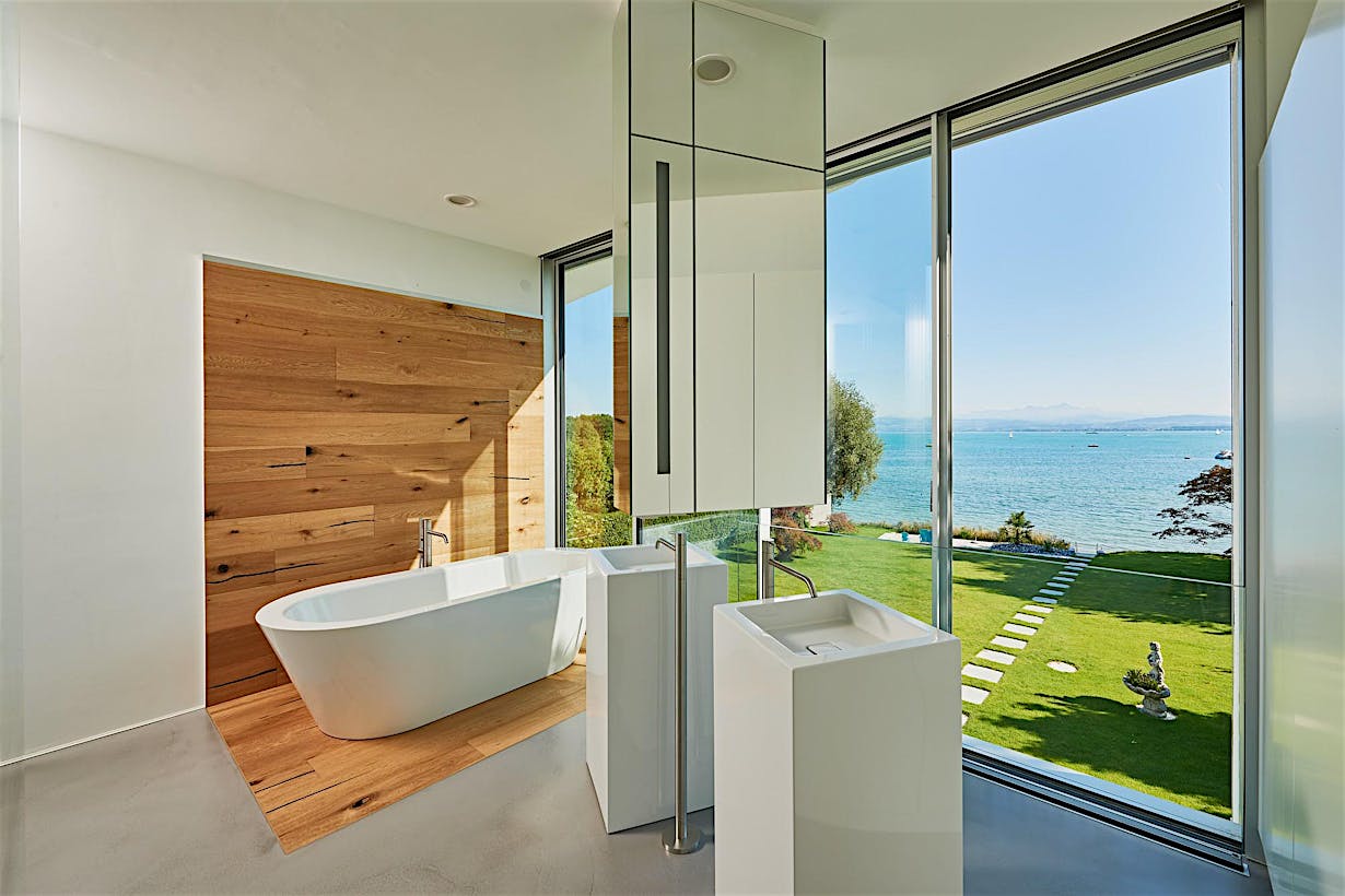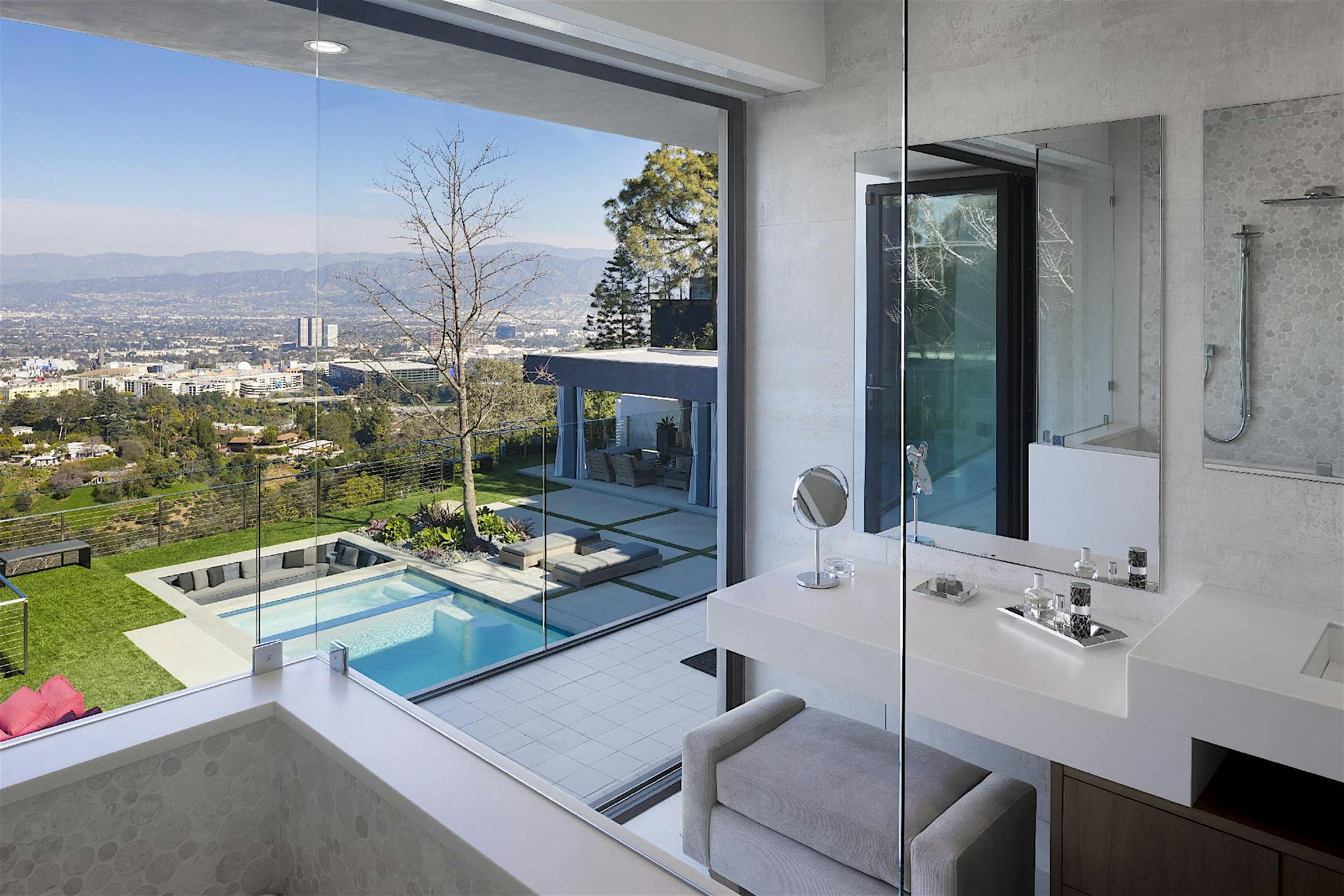 Connect the bathroom to the outdoors for a serene bath experience enhanced by tree canopies and awestriking sightlines.