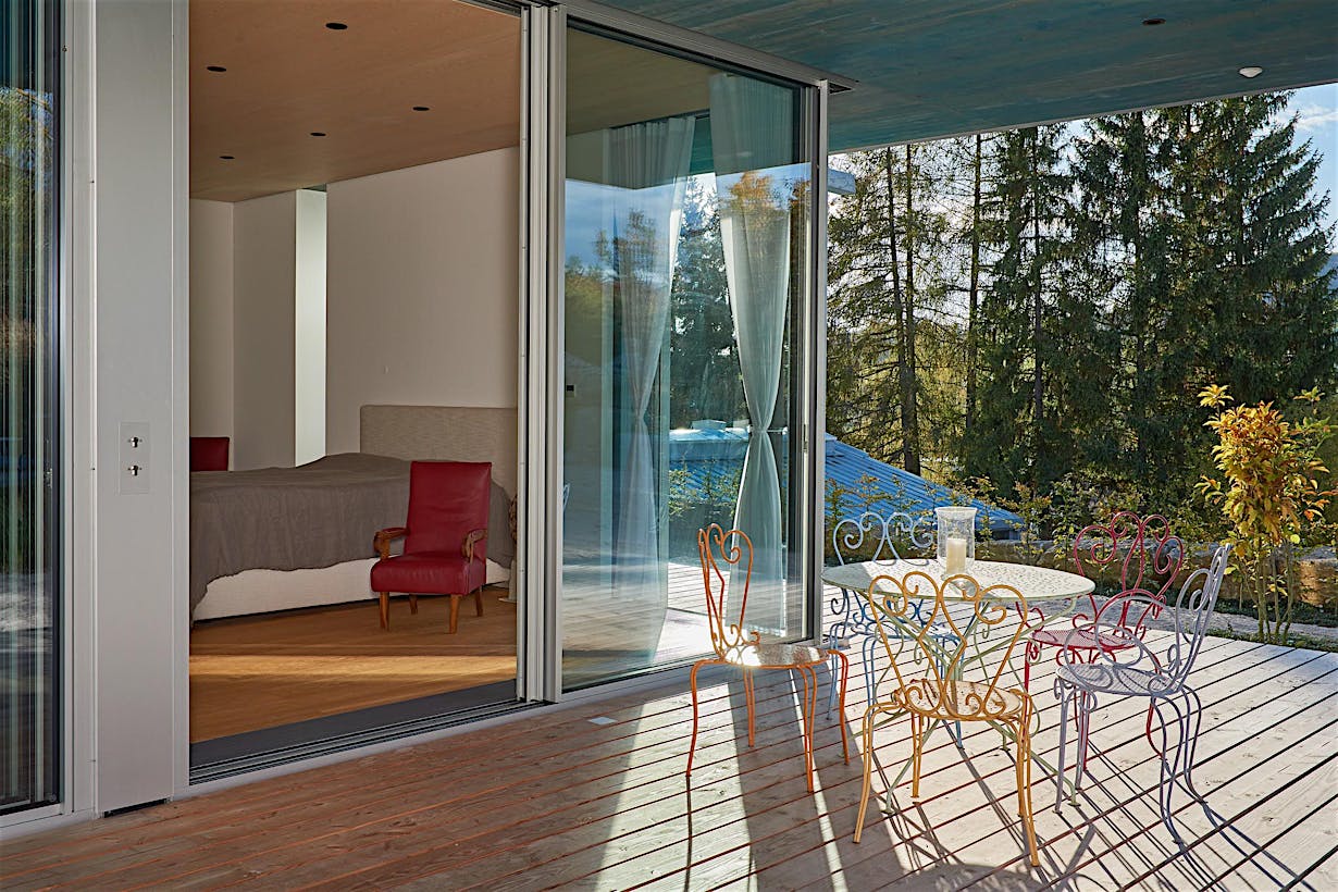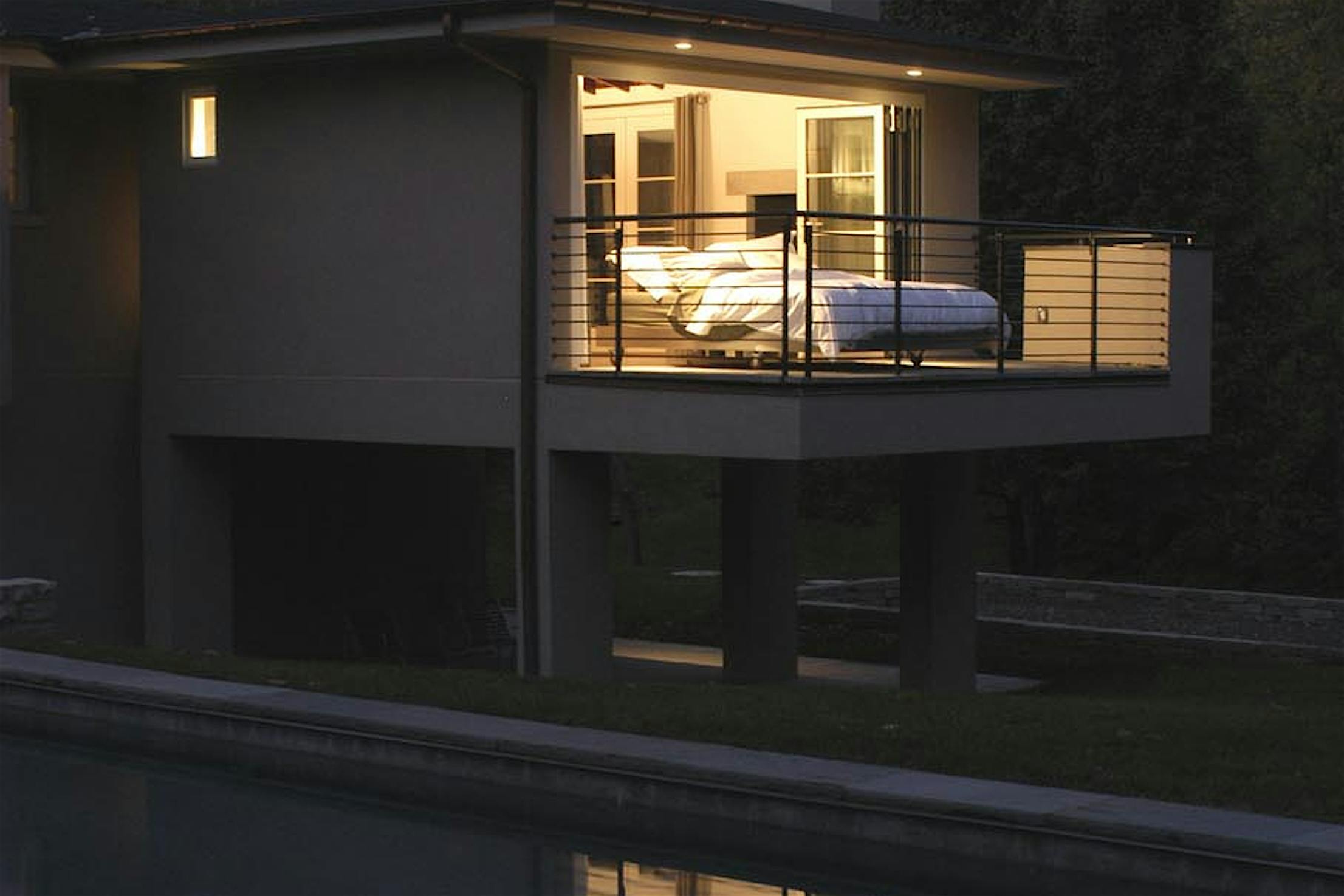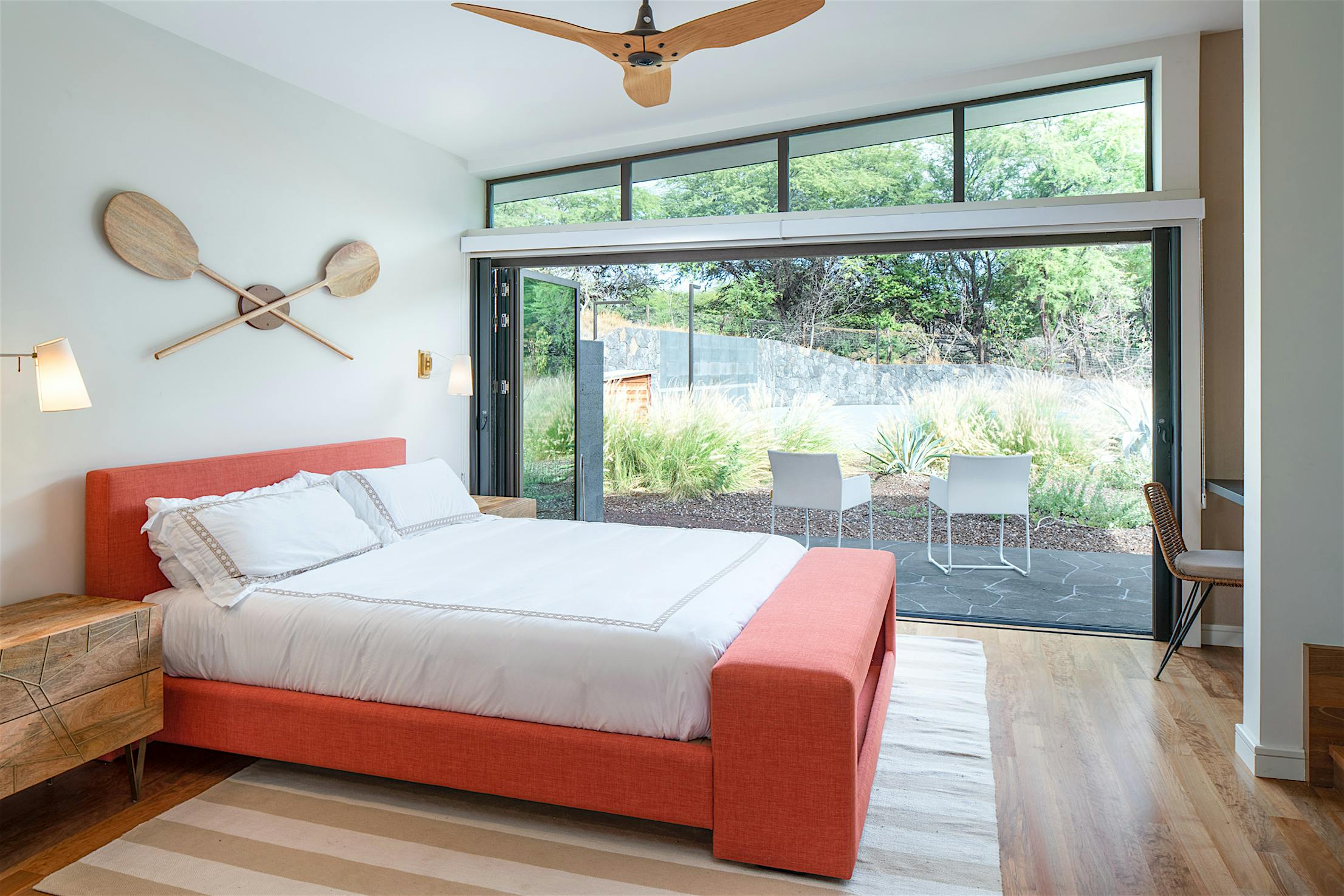 Operable glass walls can help create the resort-like feel in bedrooms and bathrooms in residential applications.