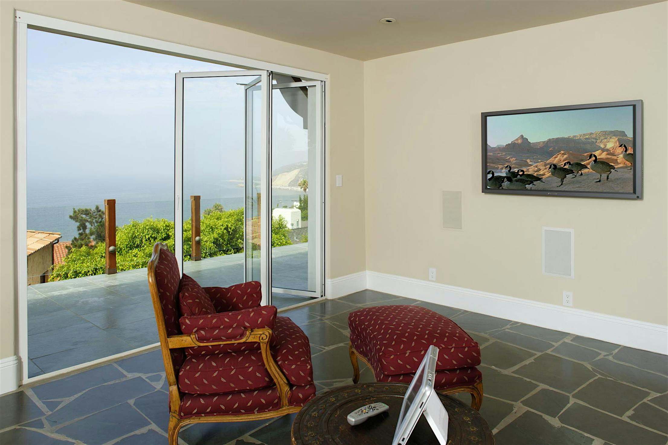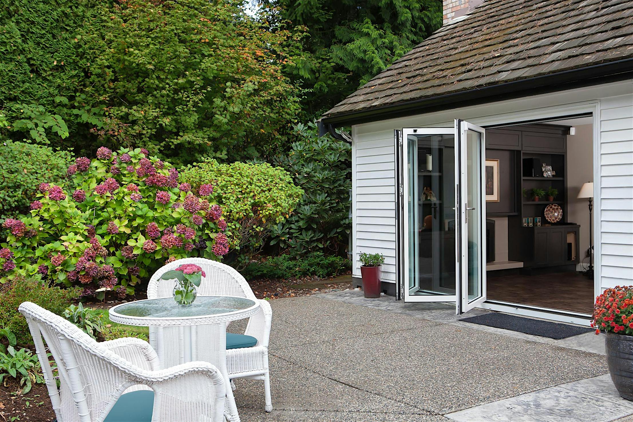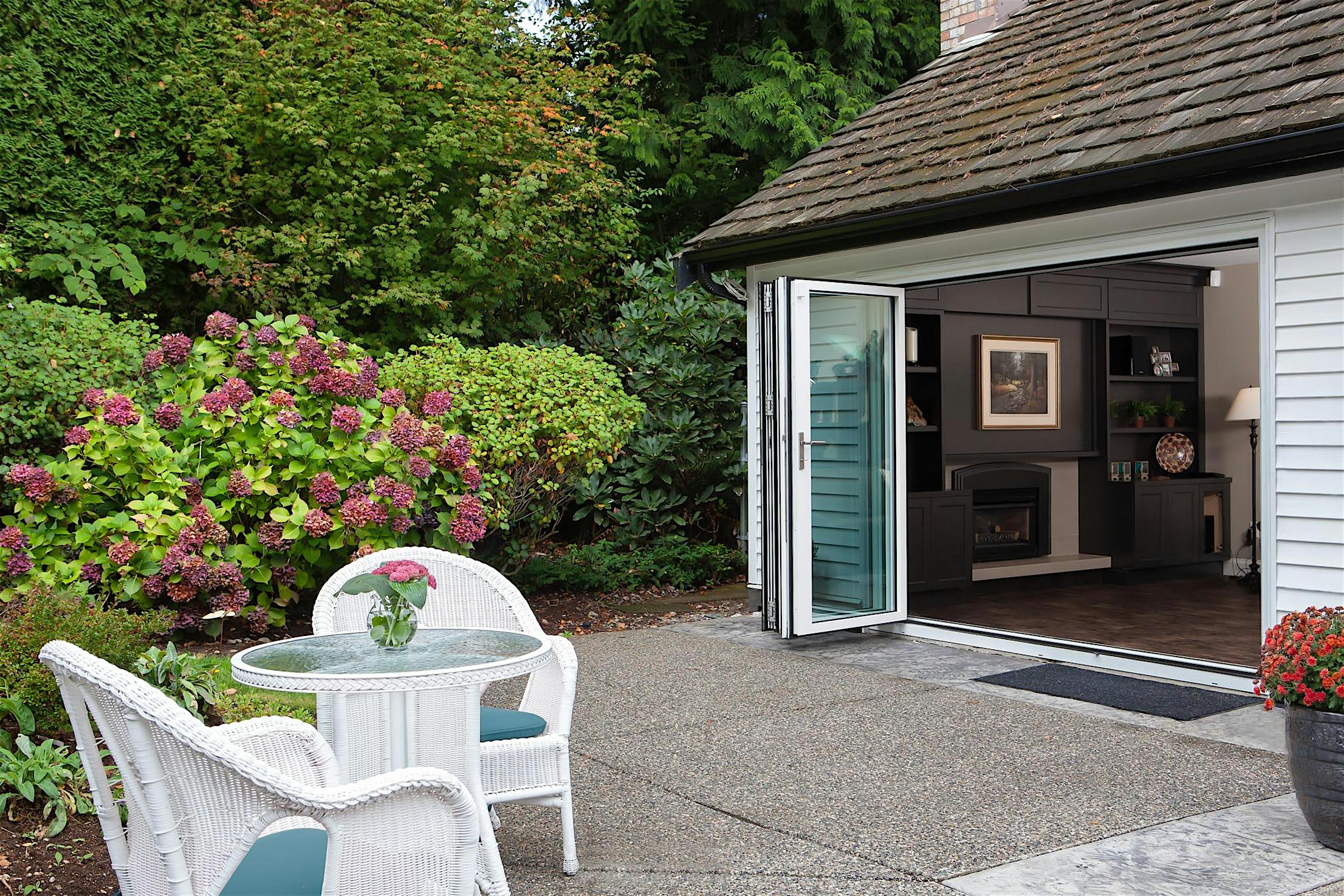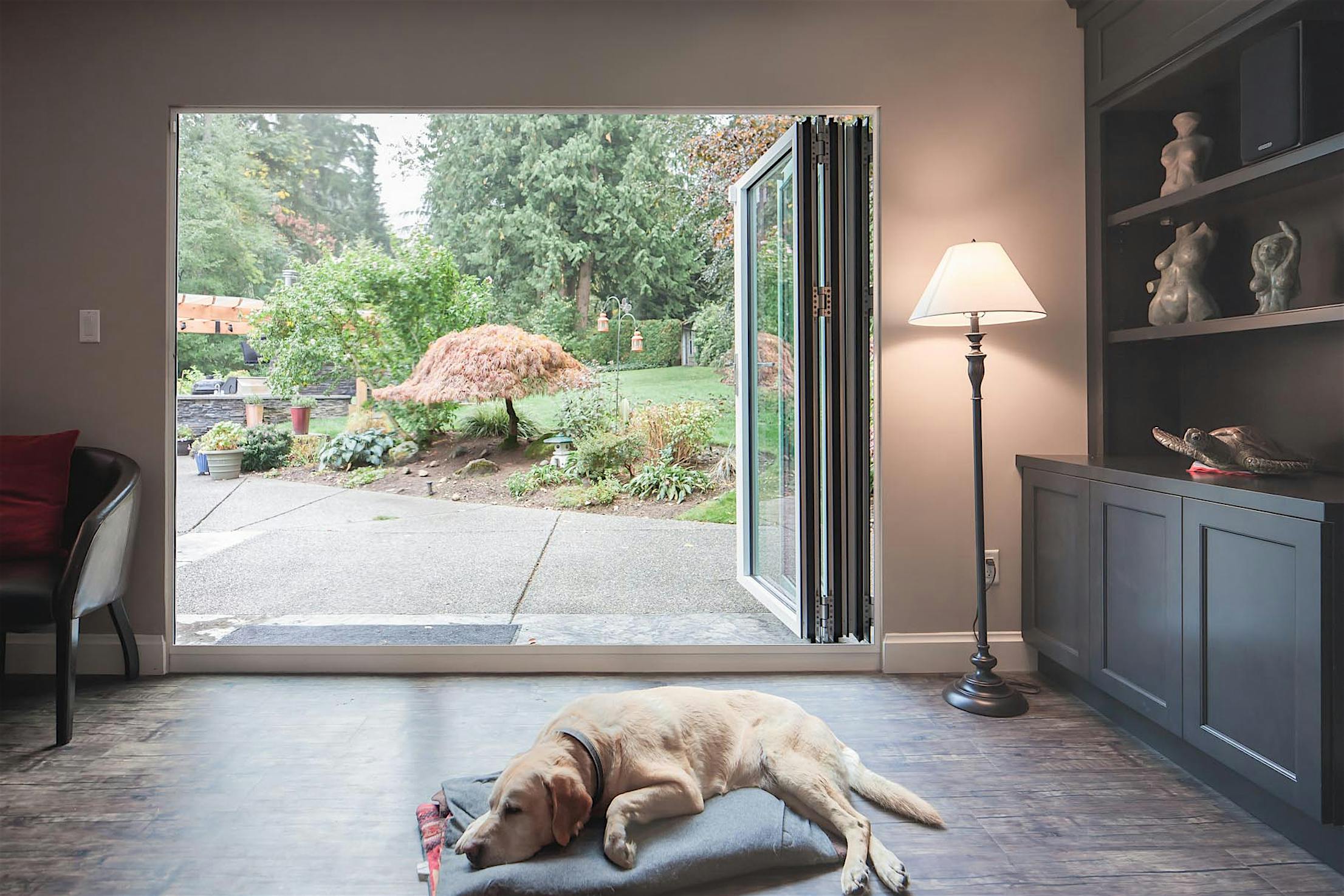 Opening your NanaWall spreads fresh air throughout the home, and on warmer days you can sit in comfort indoors with views , fresh air, and sunlight of the outdoors pouring in.