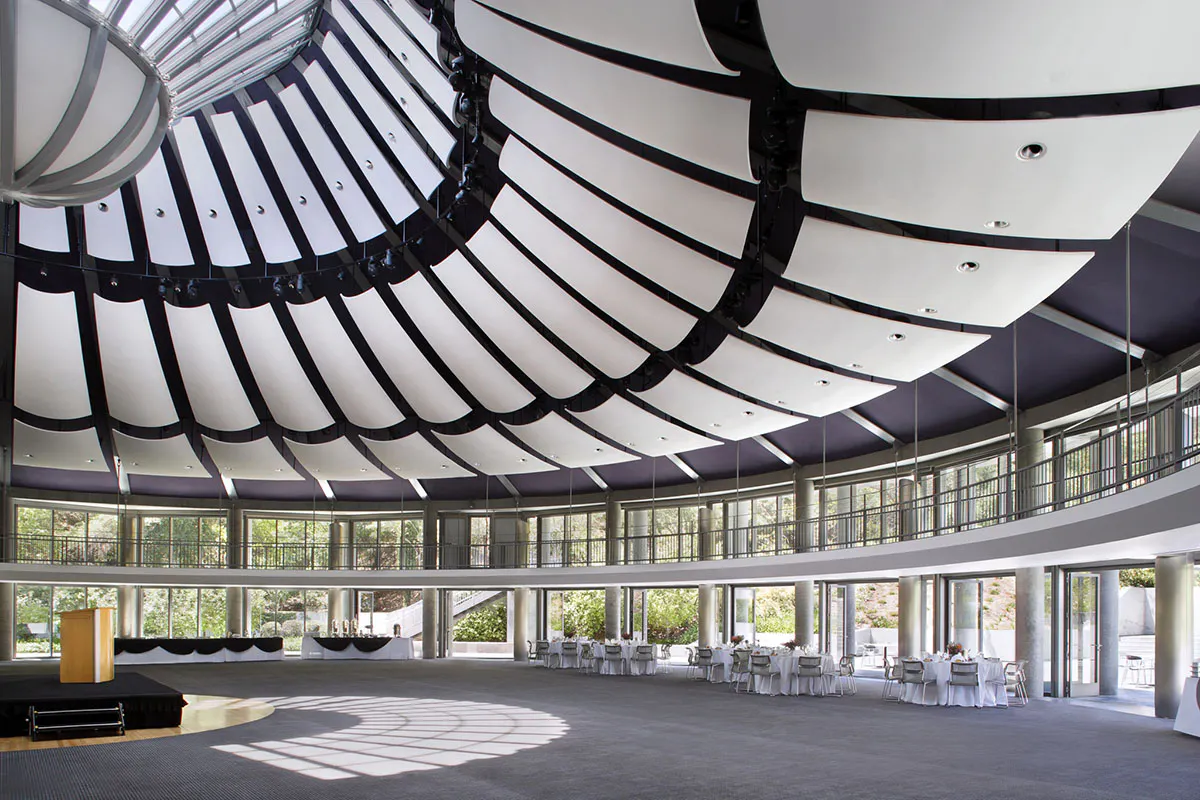 Our flexible commercial glass door solutions go where no other operable commercial glass wall panels have gone before. Take them around multiple corners, through wide segmented curves, bypass columns, or circumvent structural obstacles. You can specify top-hung or floor supported commercial glass doors across expansive openings, with doors that swing outward or inward. Plus we offer commercial wall systems with frame materials, finishes, glass, and divided lites to complement any architectural style.