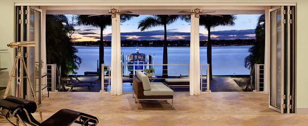 The NanaWall SL73, our tested hurricane glass wall, eliminates the need for hurricane shutters and is rated to prevent water, wind and debris from entering the building up to 15 stories. Exactly what you want from your exterior residential glass walls.