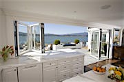 Knowing that his client wanted a classic kitchen and great room area that allowed for easy entertaining both inside and out, builder C.K. Dluzak of ZAK Enterprises in Santa Rosa, California, developed a second-to-none kitchen solution that has matched the owners’ easy, laid-back California lifestyle. It also opens their house so that it feels like you’re out on the open waters of Belvedere Cove, not far from San Francisco.