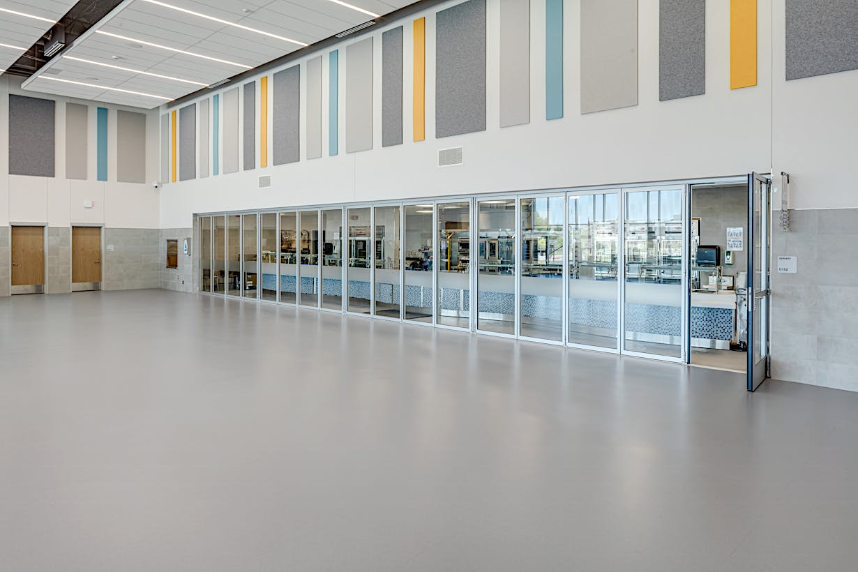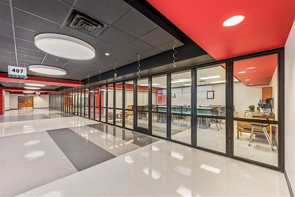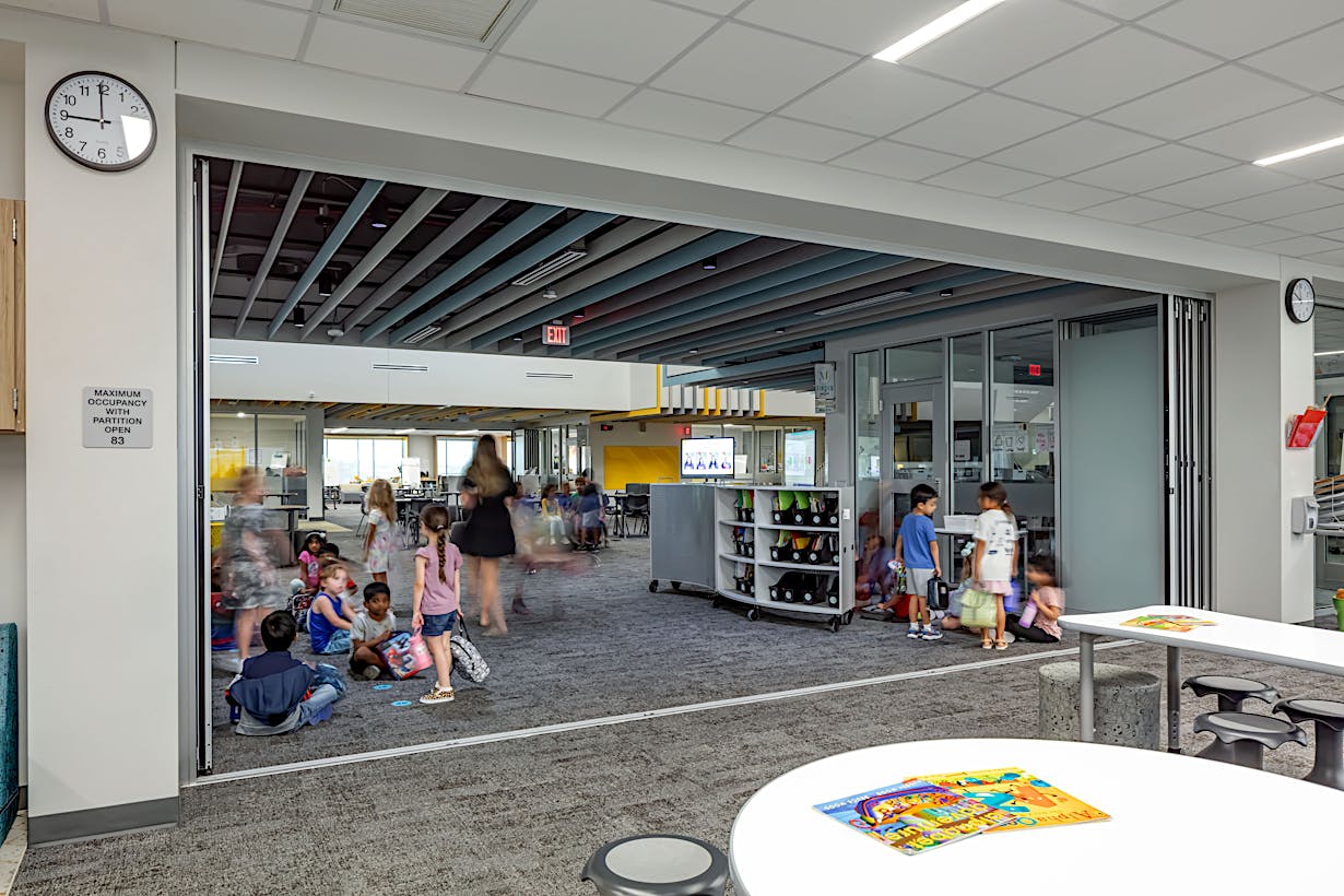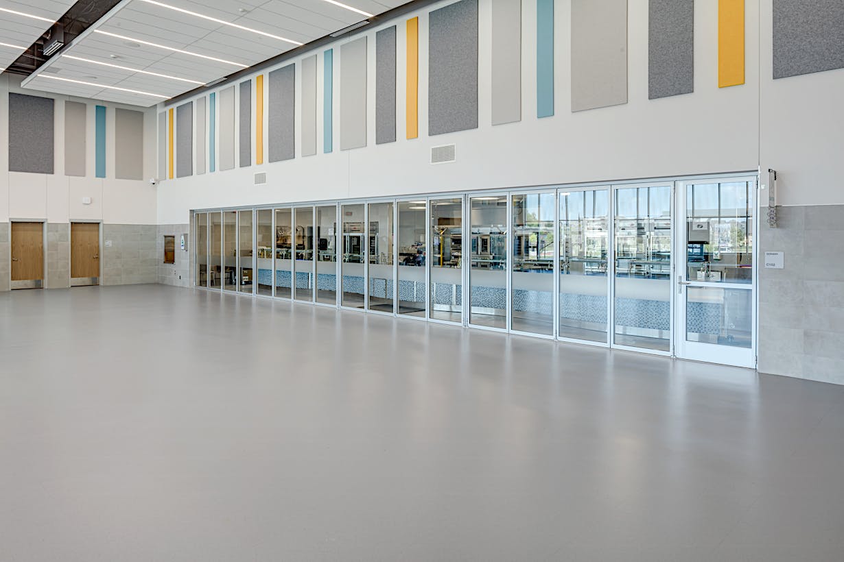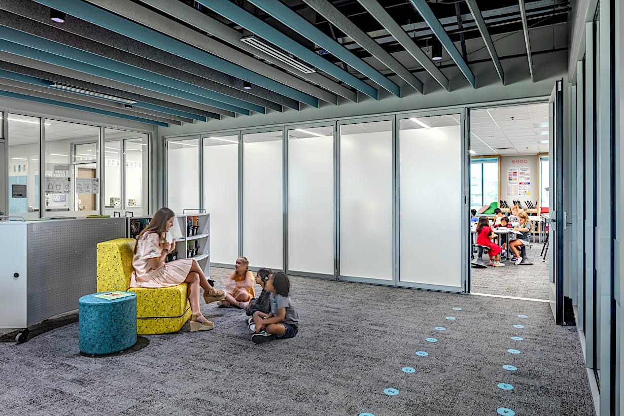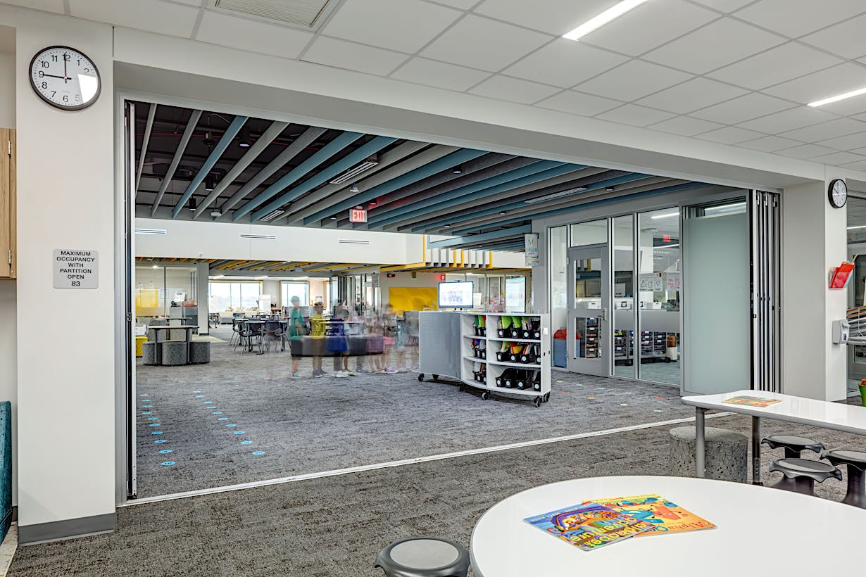 Seamlessly integrated opening glass wall dividers give teachers the ability to extend their classrooms into collaborative learning spaces where students can explore their curiosity.