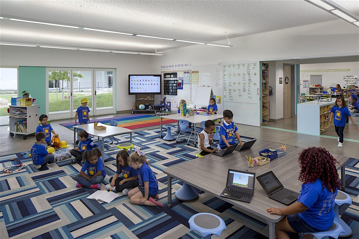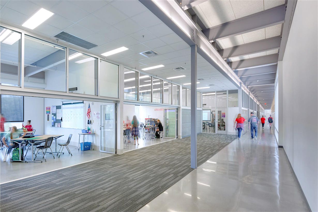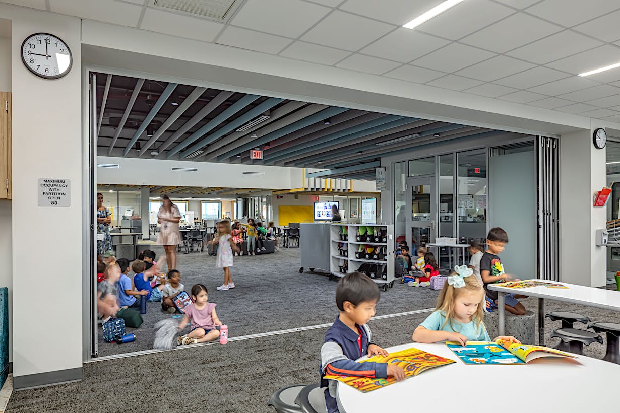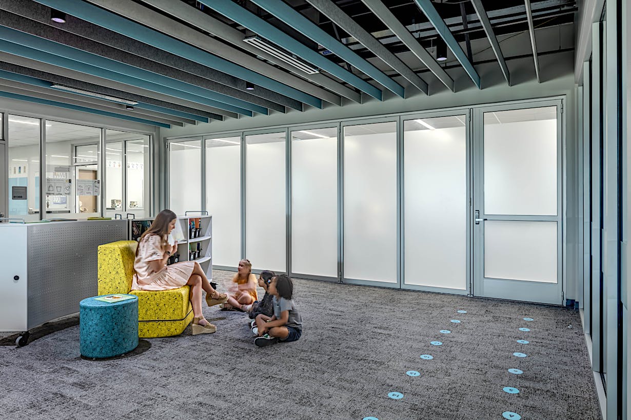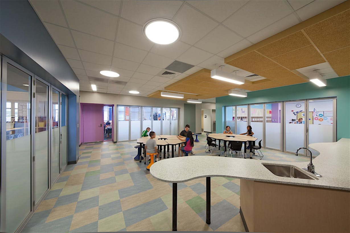 Seamlessly integrated opening glass wall dividers give teachers the ability to extend their classrooms into collaborative learning spaces where students can explore their curiosity.