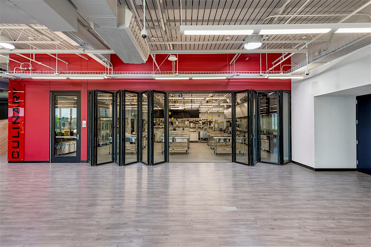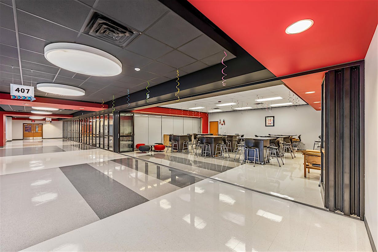 Create flexible common areas throughout a college, helping manage traffic and flow.