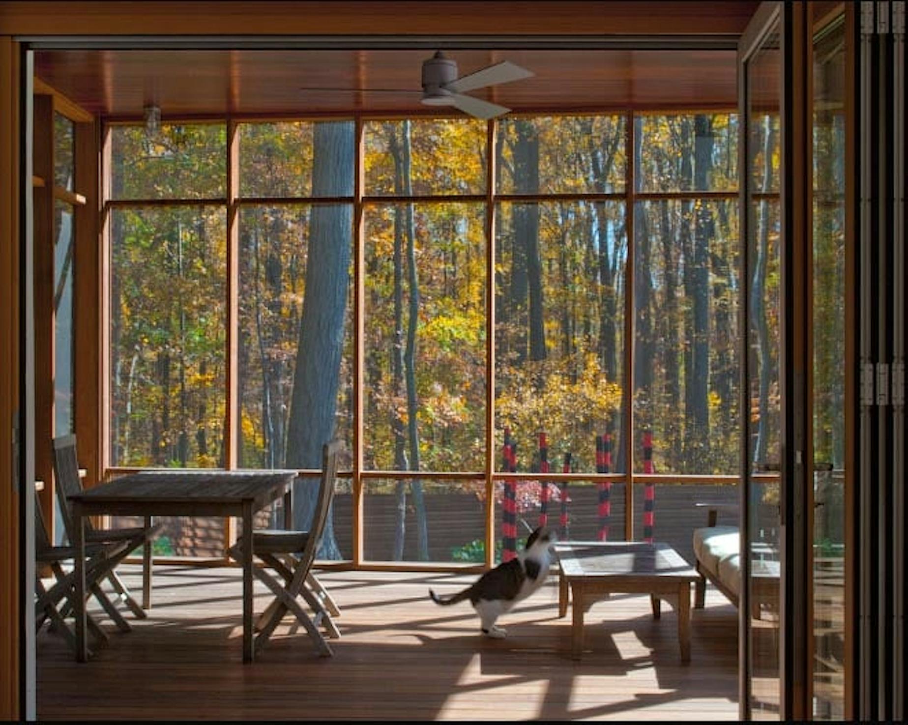 When open, the tables in the dining room and the screened porch connect end-to-end to accommodate additional seating for guests. “I was just there for a get-together a week before Christmas and guest went from the porch to the dining room as if it was one room” explains Peter. Additional features of the home include a master suite, guest room, office, art studio and a loft. For more information and images of the home, visit McInturff Architect’s Houzz page by clicking here: http://www.houzz.com/projects/365162/Gresser-Johnson-House and be sure to follow us on Houzz.com under NanaWall. Photo Credit: J. Heine, McInturff Architects