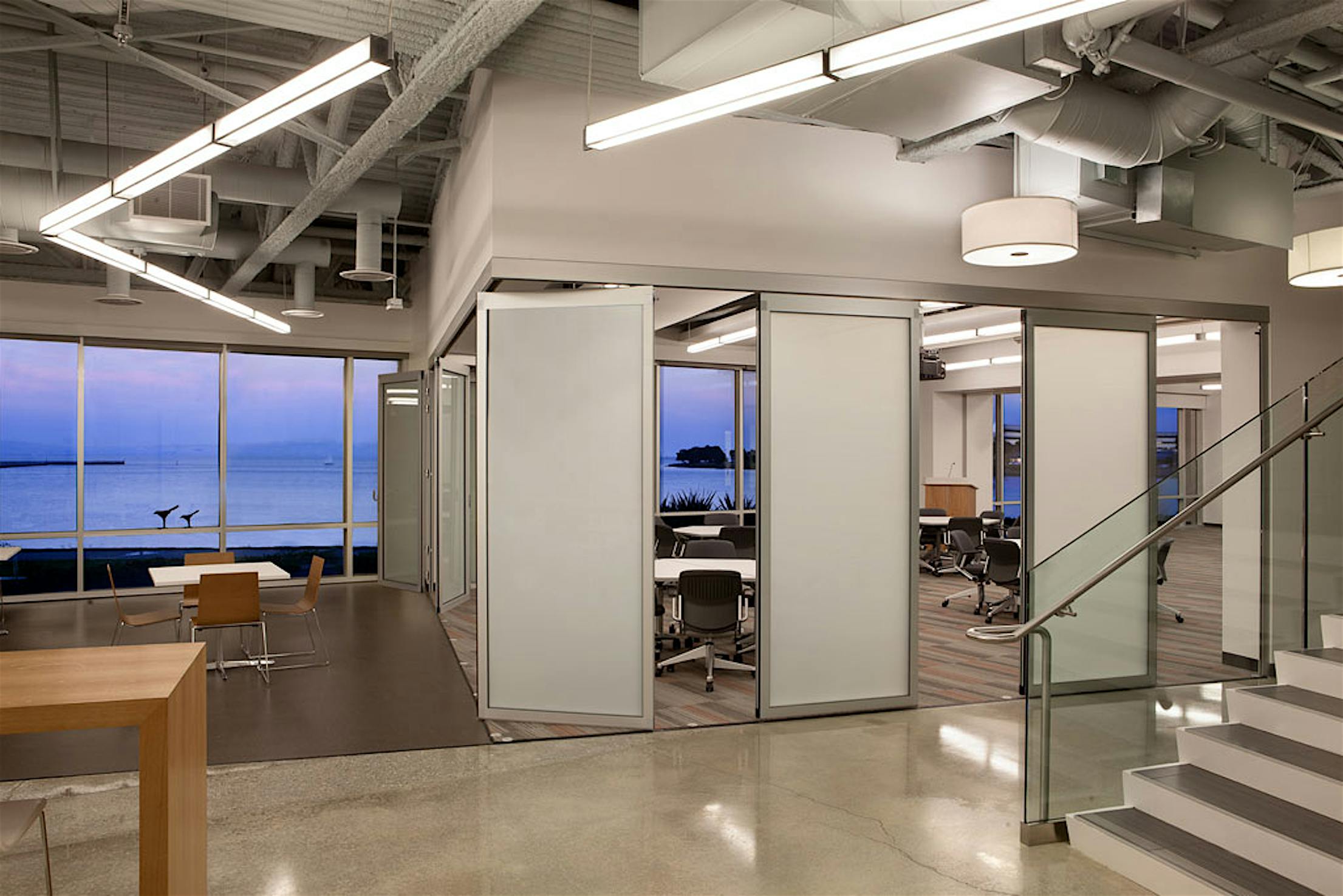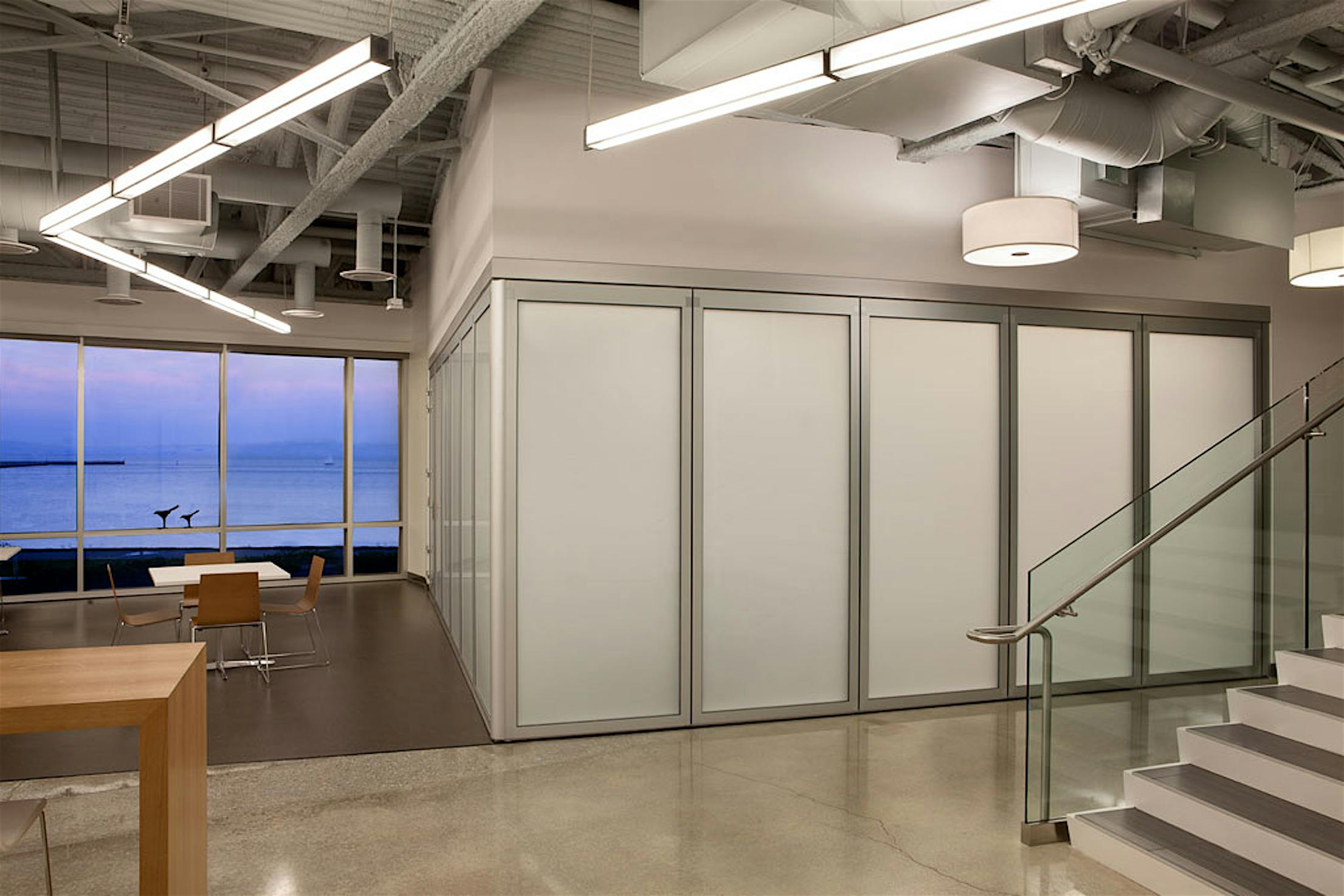It’s been just around 7 months since we relocated our offices from Mill Valley to Corte Madera. A huge shift for NanaWall – something we are quite proud of. Now I’m not complaining at all, but check out the photos below of the Actelion offices in San Francisco! I mean, our office here in Corte Madera did win an award in 1990 for design – Gold Nugget Award, but just look at Actelion’s offices. They’d make anyone jealous! They have an incredible view of the San Francisco Bay area and a NanaWall system – a great combination, helping it be chosen as one of NanaWall’s featured project of 2012. Guess what? The NanaWall system, in this case, doesn’t open up to the outside; it provides a partition for their meeting areas. Again, the HSW60 single-track sliding system proves its design versatility and freedom. In this case, the panels are glazed with a translucent matte interlayer, providing privacy between working areas. Now who wouldn’t want to work there?