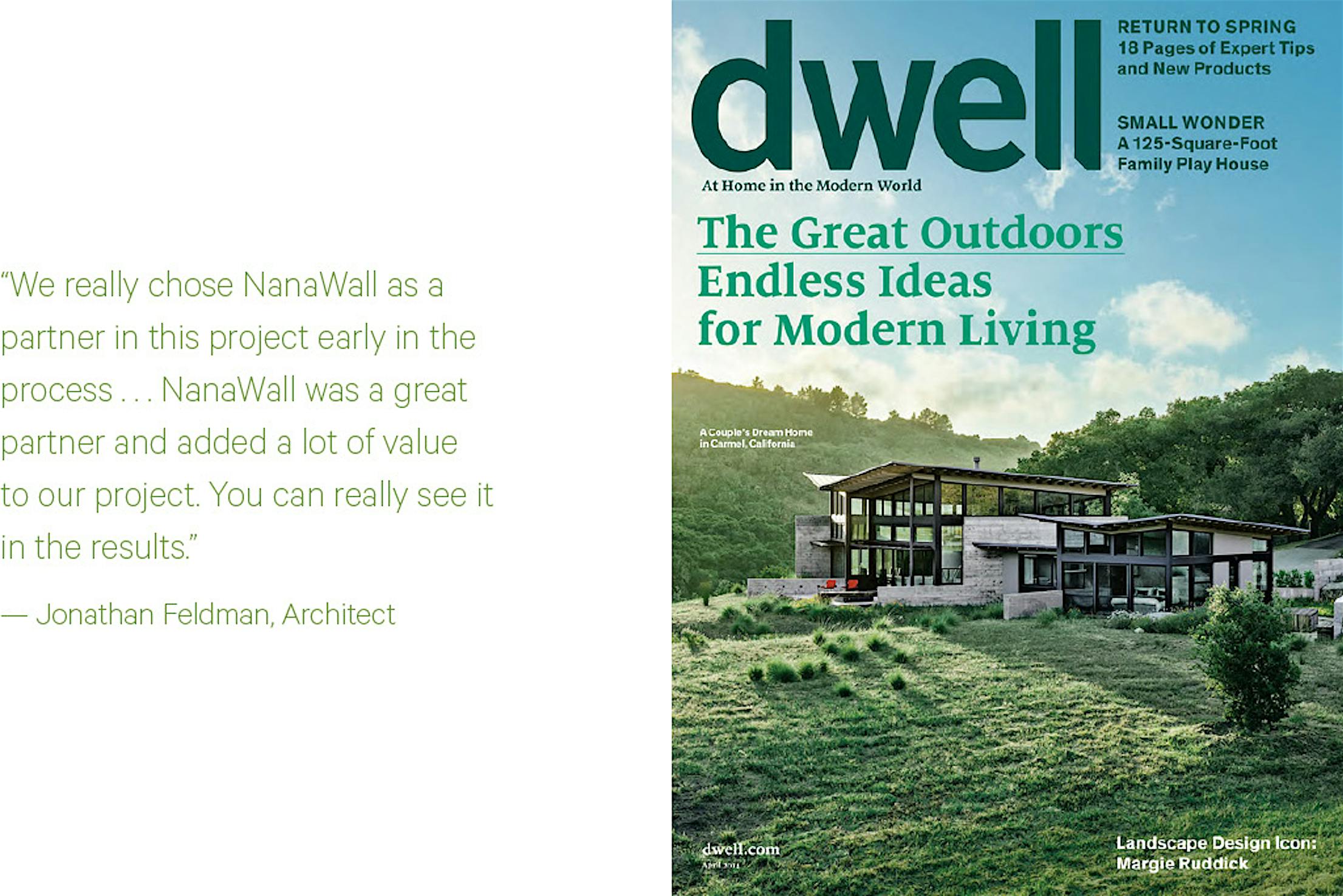 This home, located in Monterey County California, illustrates perfectly how homeowners are able to embrace the indoor/outdoor lifestyle by incorporating the use of NanaWall opening glass walls. As stated by homeowner David, “you can be here inside but also feel as if you are outside” whether the walls are opened or closed―the NanaWalls integrate the two spaces.
