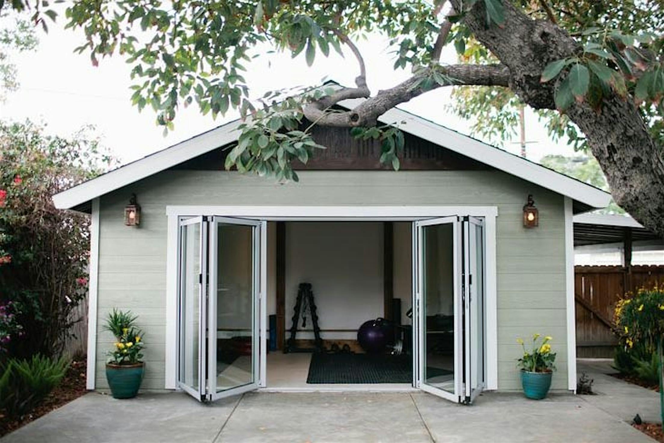 The last NanaWall folding door system made an appearance in a garage conversion that became an indoor/outdoor gym.