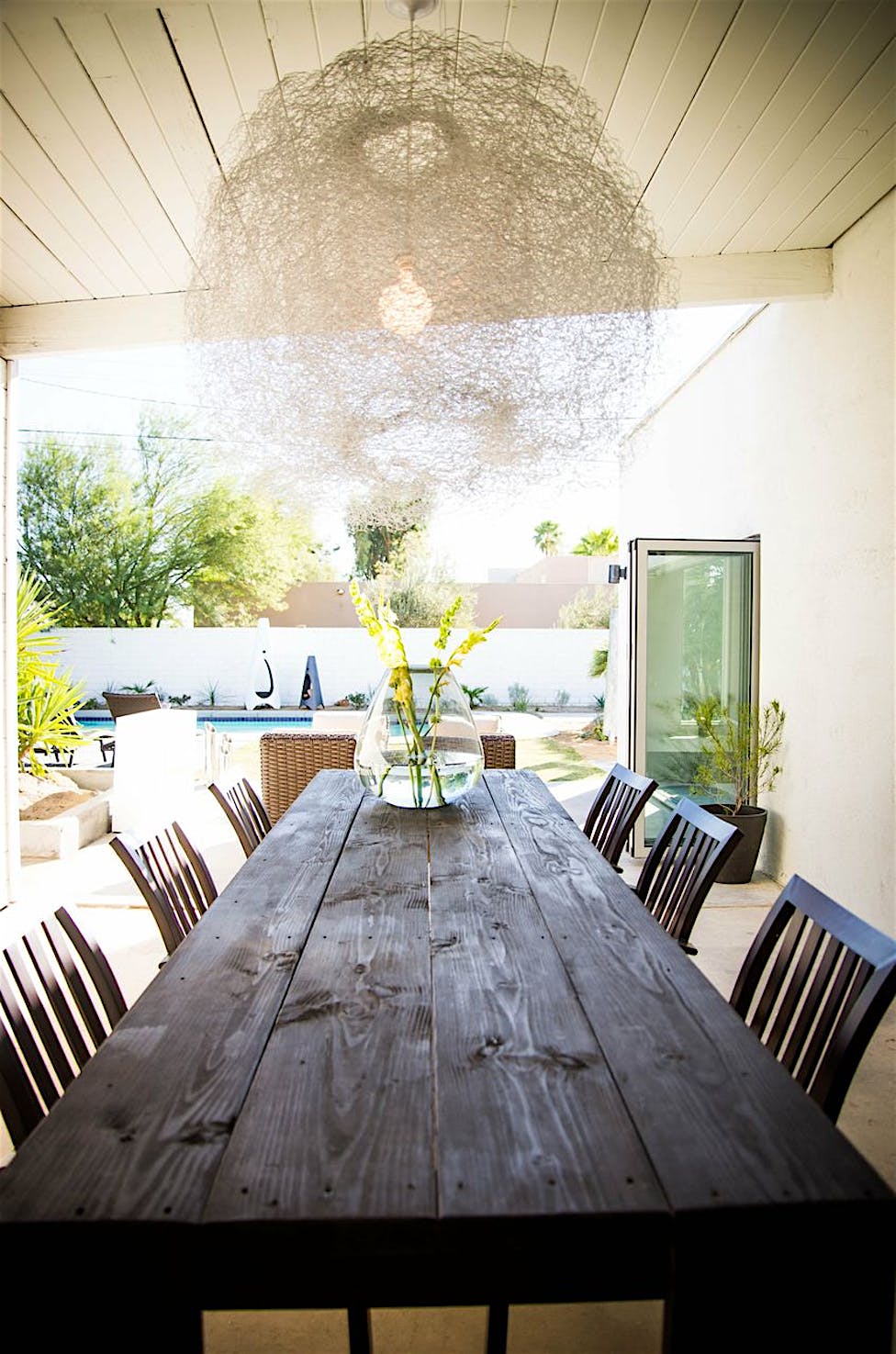 Team Red used a NanaWall system to connect the living room to an outdoor seating area, pool and dining table.