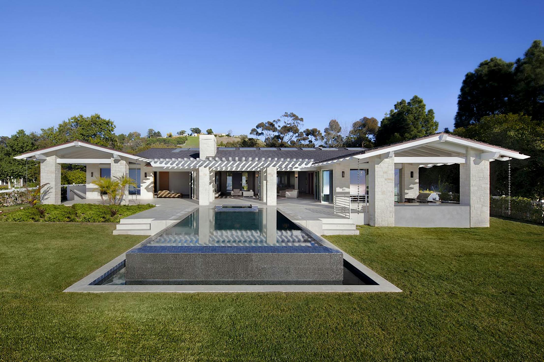 Located on a private hillside and surrounded by nature, the Rolling Hills Residence overlooks ocean views that can be enjoyed from the residence or nearby hiking trails.