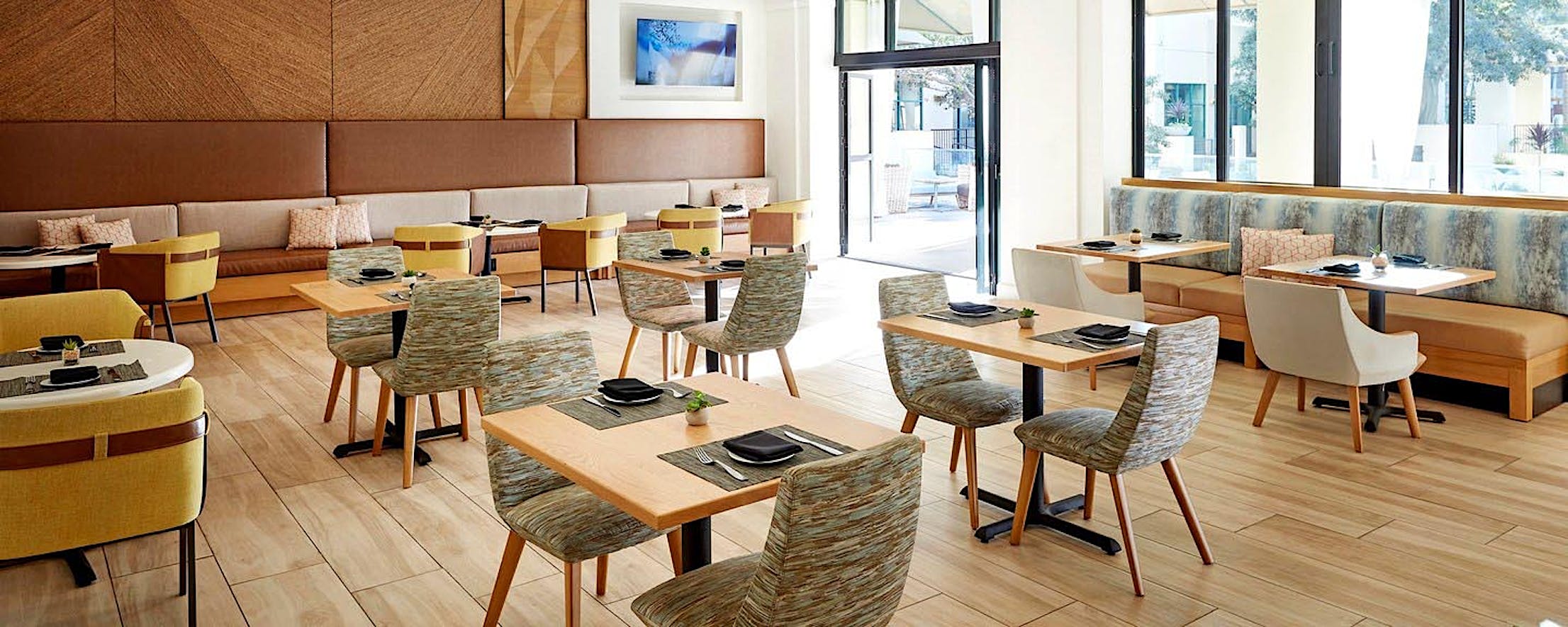 “Taking down the fixed wall that separated the indoors from the outdoors, we put into place an operable NanaWall, which allows the hotel to open the entire wall, creating a flexible indoor/outdoor seating option. The food and beverage menu extends into the space, allowing guests to sip a craft cocktail and enjoy the resort-quality pool,” as stated in Hotel Business.