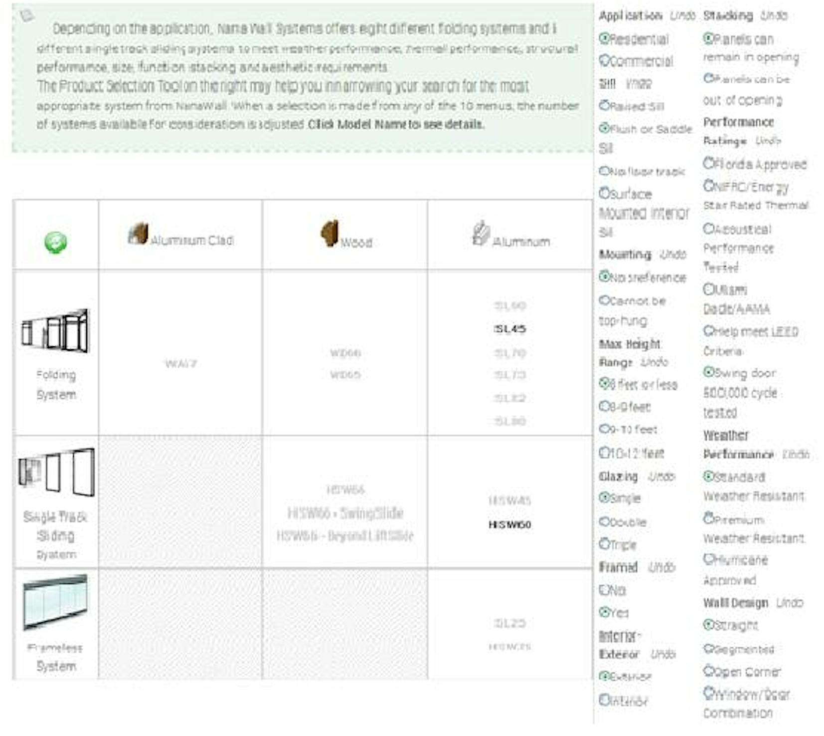11. Wall Design: Straight Segmented Open Corner: your NanaWall system will be configured to meet or work around a corner to achieve a corner-less opening Window/Door Combination: an opening consists of both shorter and taller panels. Both meet within the same opening. Note: Screening solutions are available as an accessory for all of our products to help prevent bugs and small insects from entering your home. After making all of your selections, glance at the chart on the left hand side and explore the products names in bold.