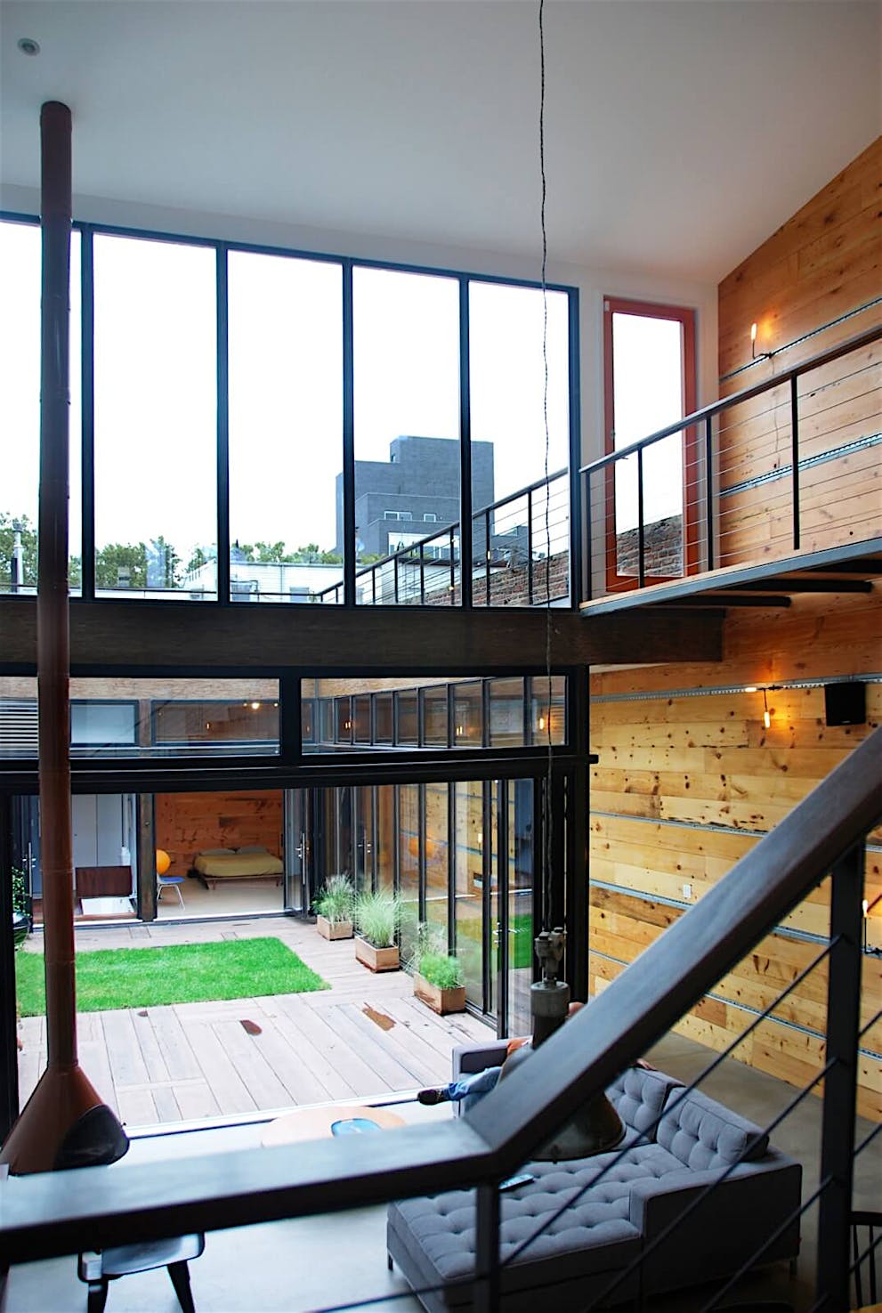 In the end, once the idea arose for a central courtyard in lieu of a backyard, all they kept of the original structure were the brick side walls and the foundation. “Normally, you would create a rear yard, but the building already covered the full 100-foot-long lot, and that was an existing condition we were allowed to keep,” Liftin said. Instead of taking out the rear 30 feet or so, “We took it out of the middle. That lent itself to creating a whole wonderland inside, with circulation going all around the place.”
