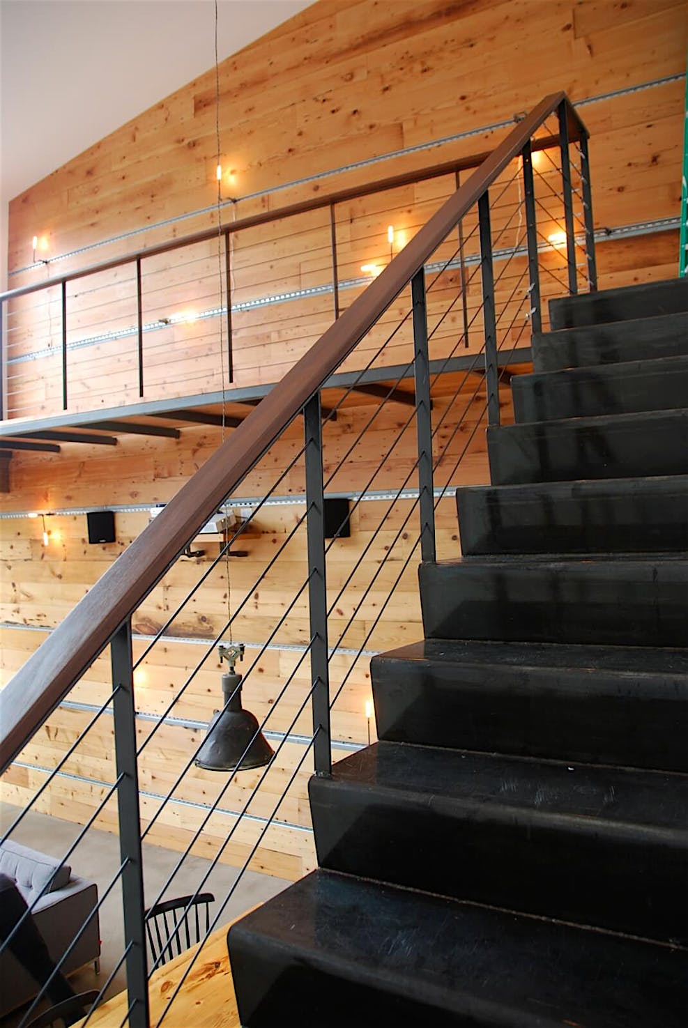 Pipe Lights along the wood walls are made by MESH Architectures.