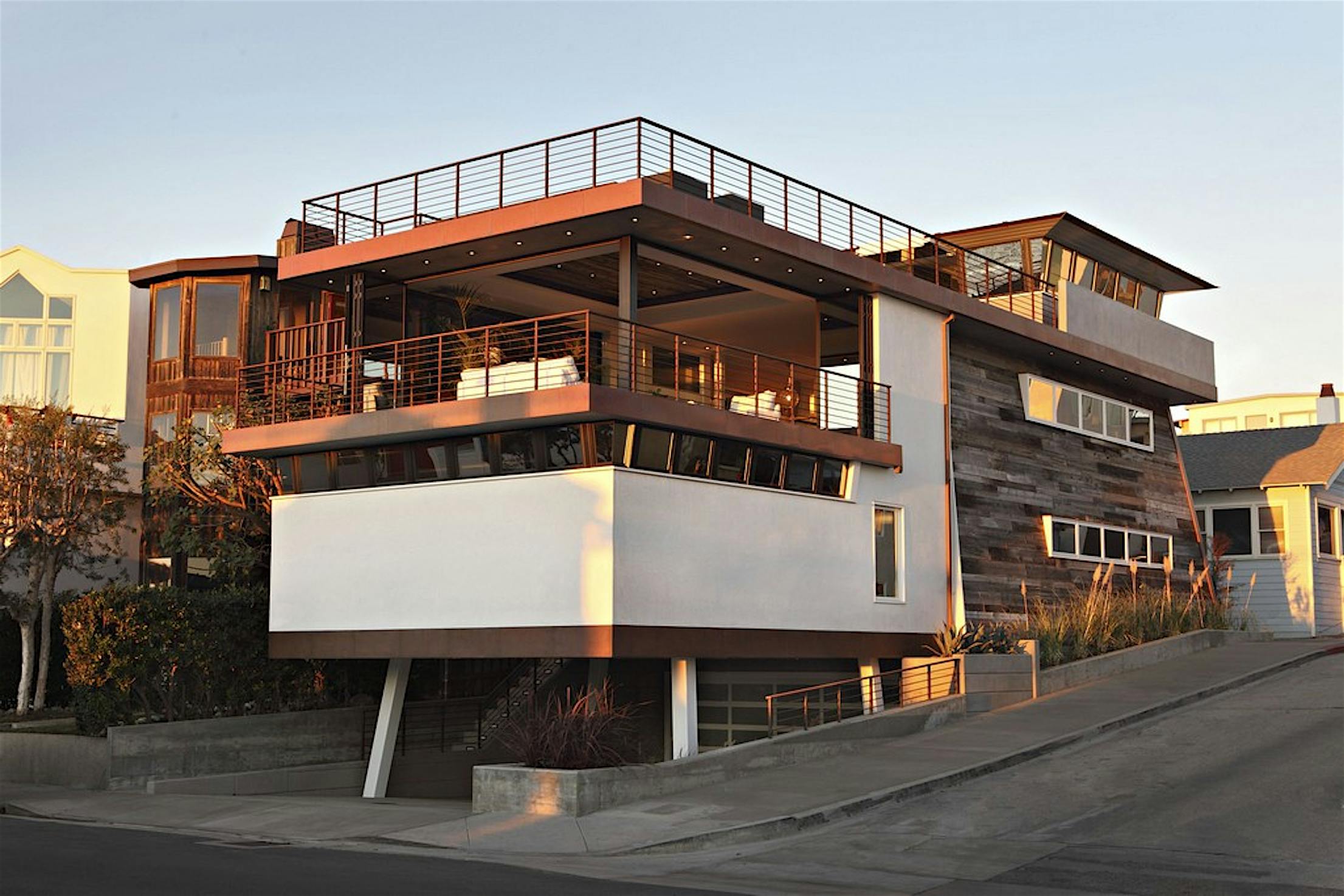 Also located in Hermosa Beach, the Lifeguard Tower was inspired by seaside architecture (like lifeguard towers) recalled from his childhood. Inside the home, the ocean is never far. It’s present in every aspect of the design, from the décor colors to the views in every room of the house.