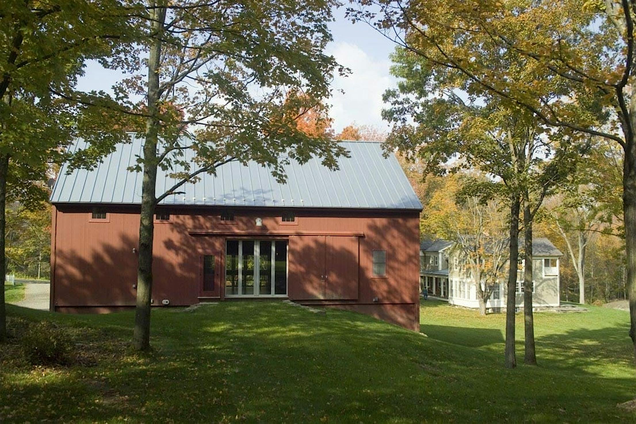 James replaced the traditional barn sliders with a NanaWall folding glass wall system (SL70) to seamlessly connect the barn to the outdoors, which brings in additional lighting and fresh air. Far from a standard barn, this structure includes two full baths, a bedroom, kitchen, recreation space and a multi-car garage, allowing it to be used as a private guest house when needed.