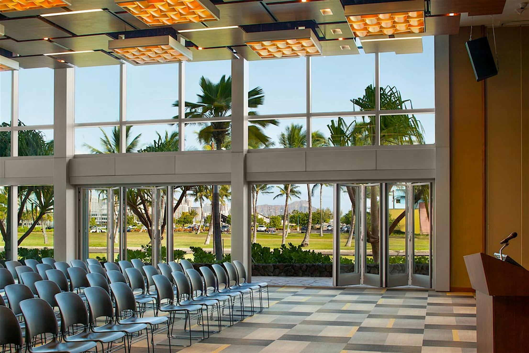 2. A floor supported system: Many glass wall systems are top-hung and use the floor rail solely to guide the panel’s path. Heavy, moveable panels require an incredibly strong header to avoid making the glass walls susceptible to high winds. Floor supported systems, on the other hand, use gravity to their advantage by letting the floor support the weight. This additional reinforcement instability further enables the glass wall system to withstand hurricane force winds.