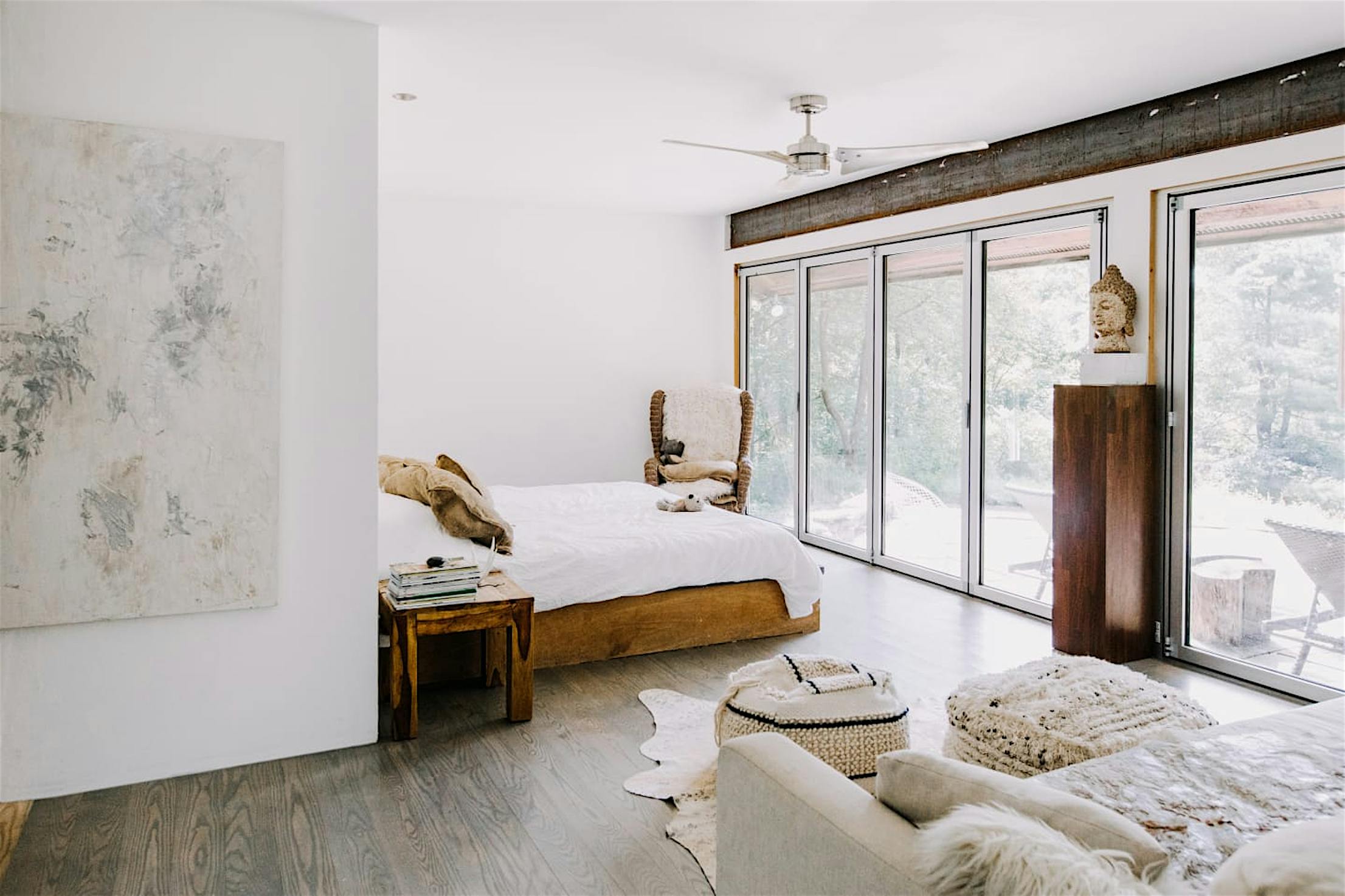 Figure 4: Having a NanaWall system in her bedroom allows the homeowner to sleep under the stars and wake up to morning light. All Photography Credit goes to Carina Romano/Apartment Therapy.