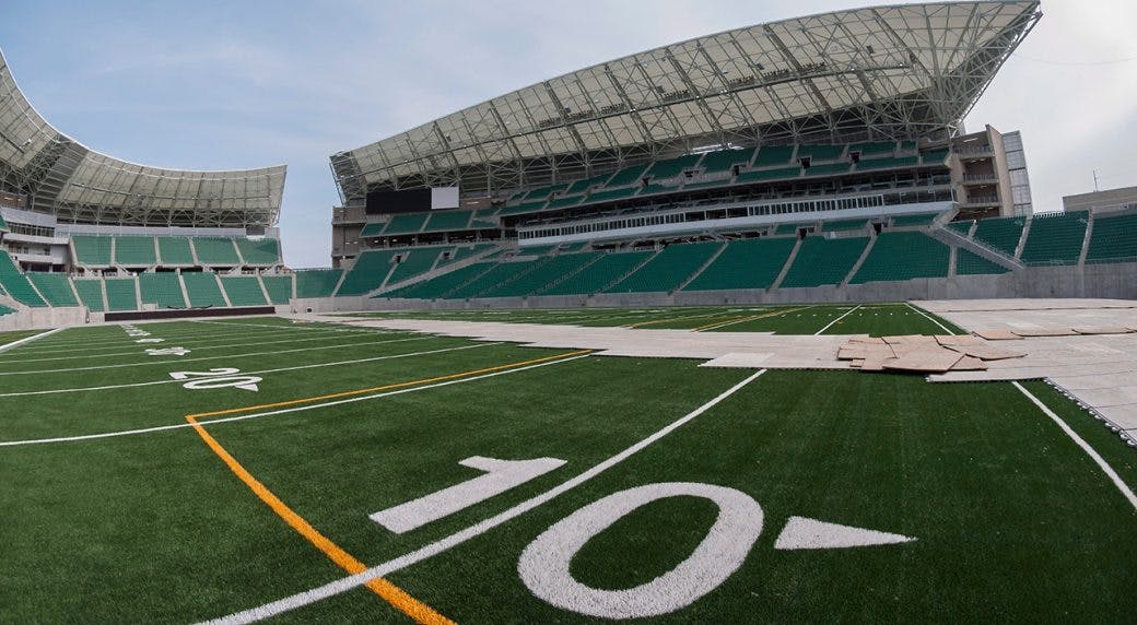 Owned by the City of Regina and operated by Evraz Place, officials declared Mosaic Stadium to be “substantially complete” on August 31, 2016. One month later, on October 1, the first of two test events took place at new Mosaic Stadium when the hometown University of Regina Rams played host to their provincial rivals the University of Saskatchewan Huskies in a match designed to put the facility through its paces.