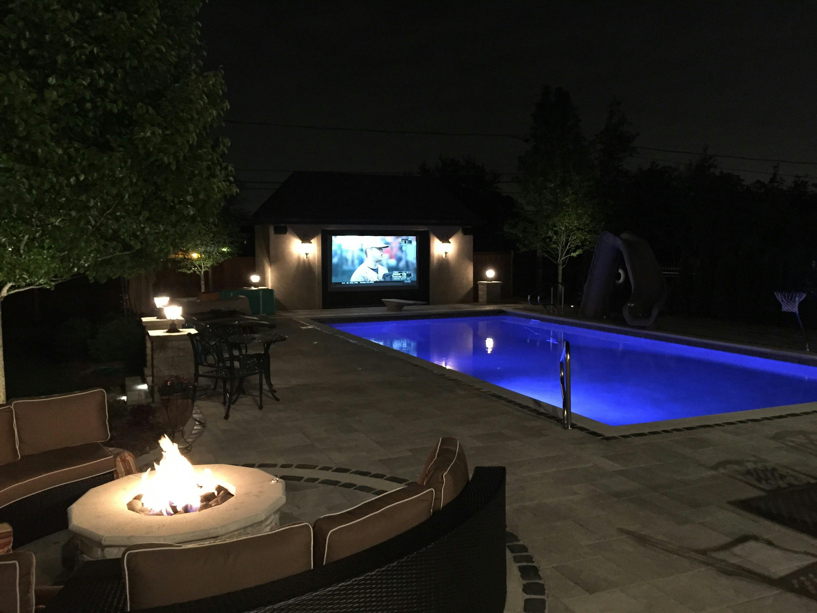 TV is a welcome addition to any room. With lounging furniture already in the pool house, a television can give people entertainment. Whether its sports, a television show, or the weather report, a TV is the usual suspect to gather around; even in a pool house. If you have a gigantic TV, orient it properly in the pool house, and open a NanaWall system, the pool house transforms into an outdoor theatre.