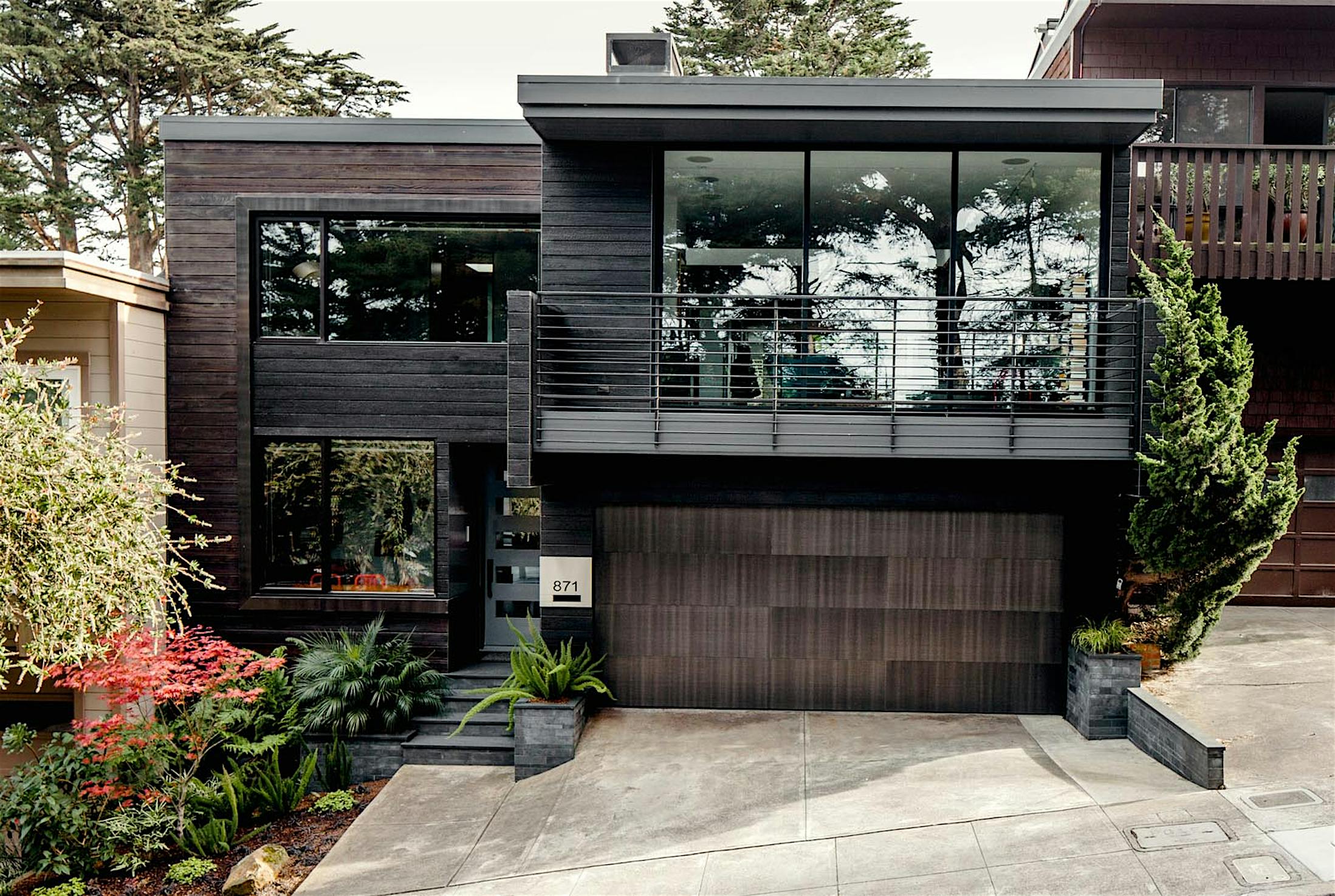 Scott MacFiggen and Regina Bustamante, tech industry veterans from Silicon Valley, called on architect Christi Azevedo to rebrand a fusty house in San Francisco’s Noe Valley, starting with the street view. Cedar boards, charred using the Japanese technique shou sugi ban, replaced plywood siding.